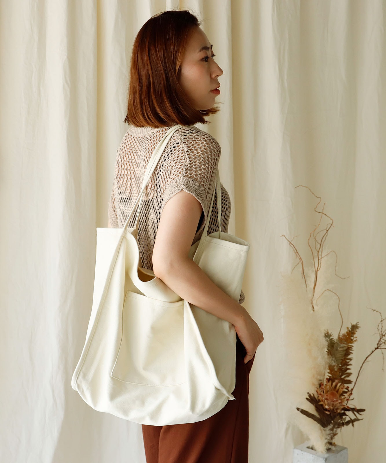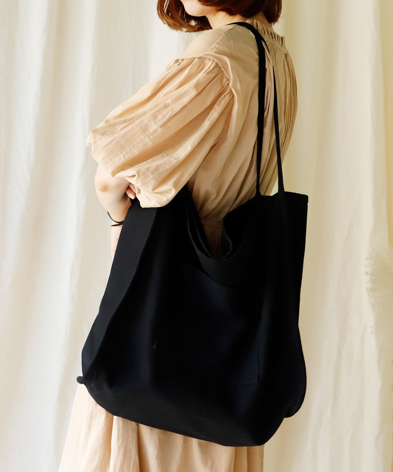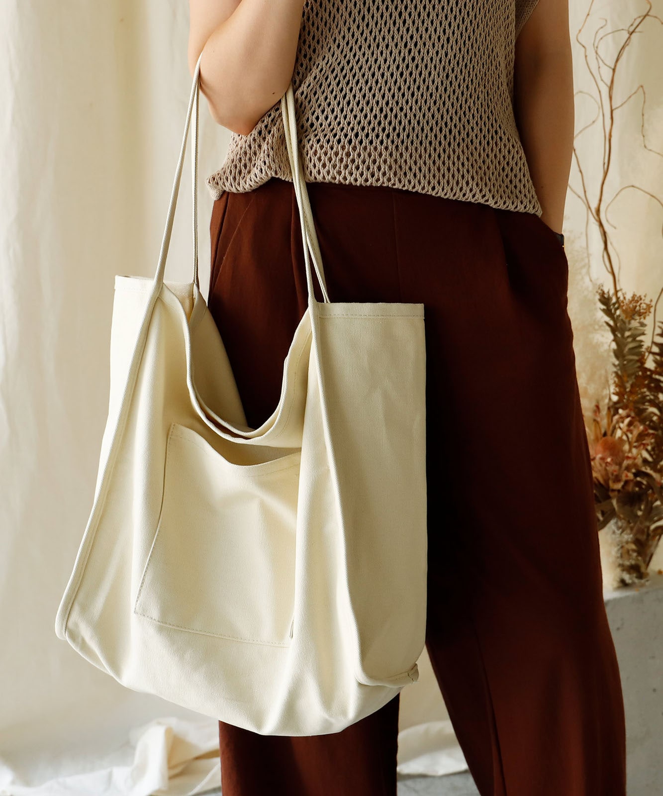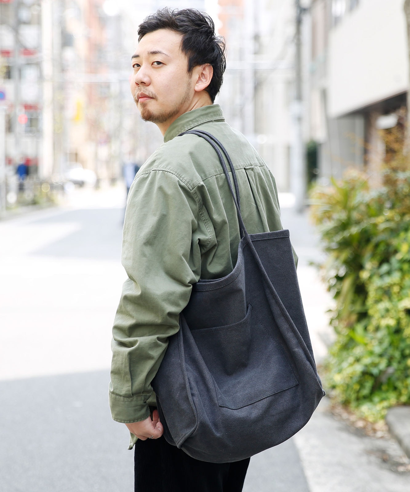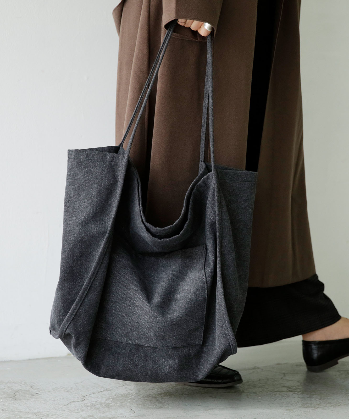 たっぷり入る大容量のくったりフォルムのキャンバストートバッグ。