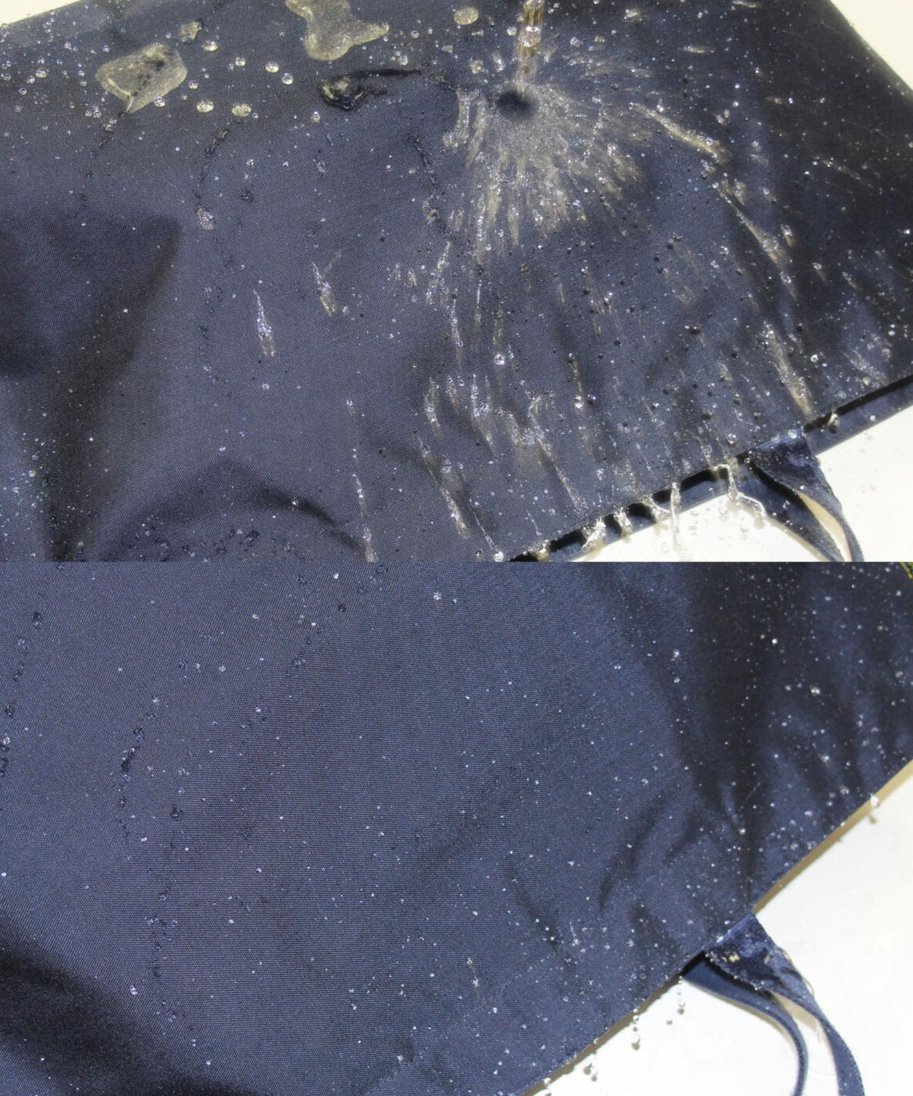 防水のみならず、油からの防汚効果が高く、生地の柔軟性・通気性を損なうことなく 繊維1つ1つがコーティングされ、雨や雪、ホコリなどの汚れを防ぎます。