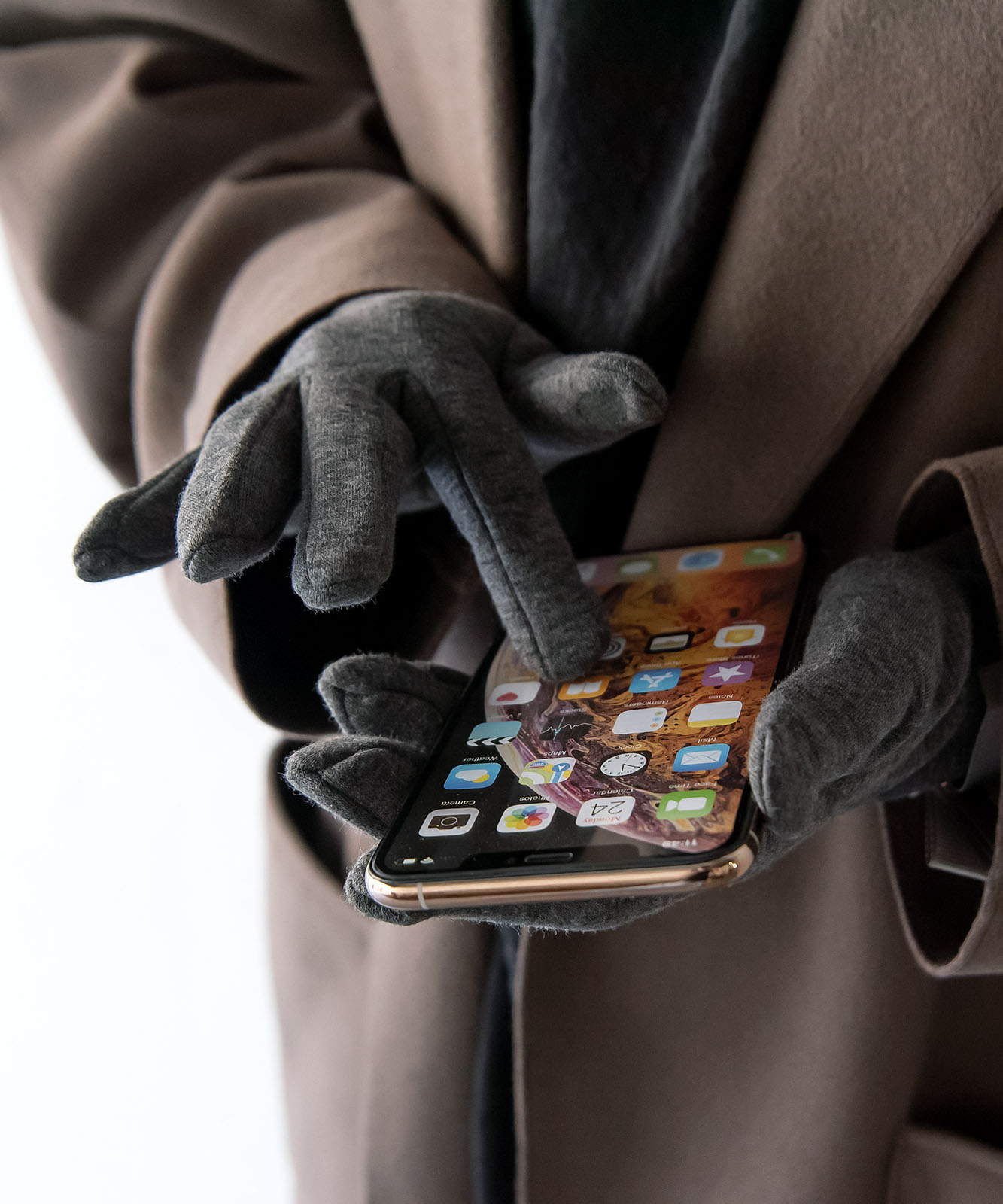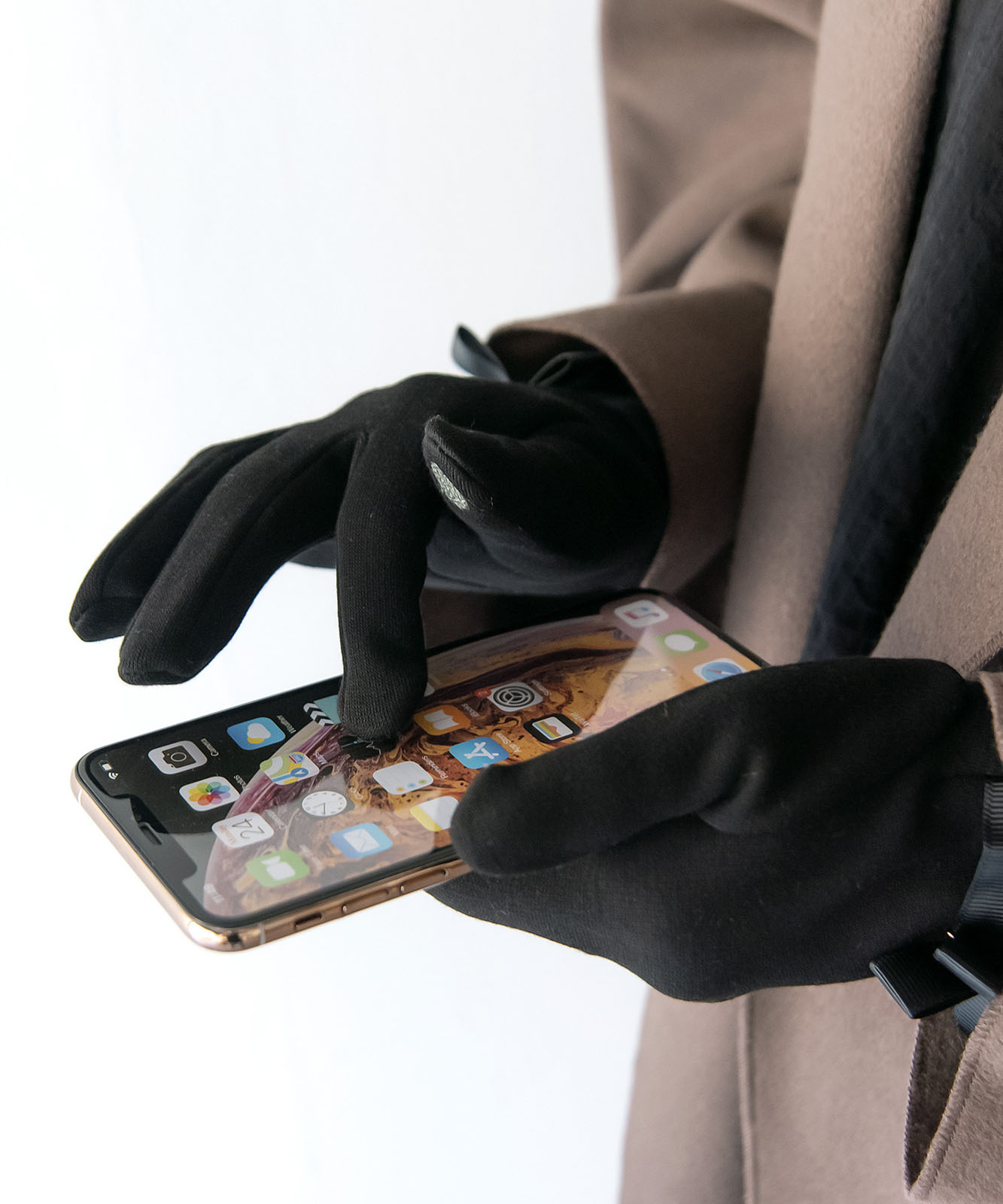 また、両手親指・人差し指に導電糸で刺繍しているので 手袋をつけたままスマートフォンやタブレットの操作が可能。