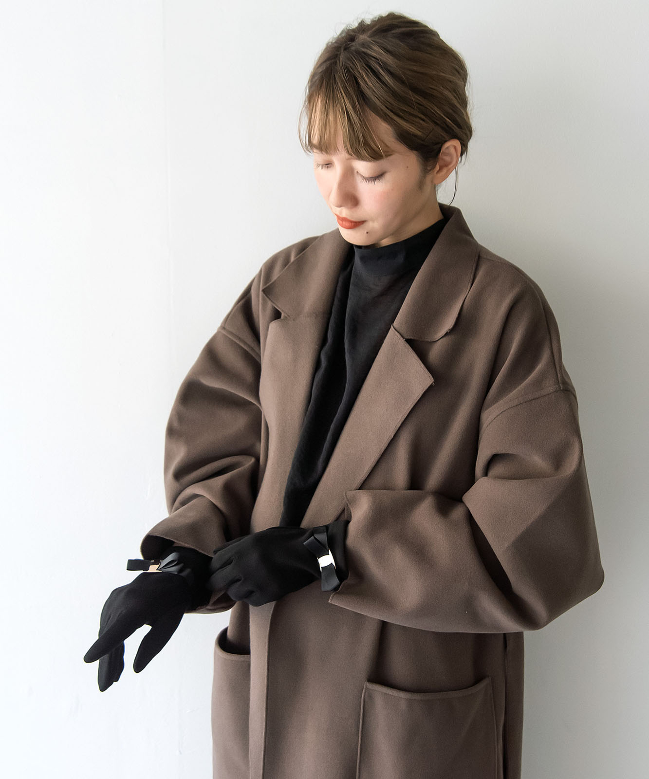 リボンベルトがデザインされたシンプルな手袋。