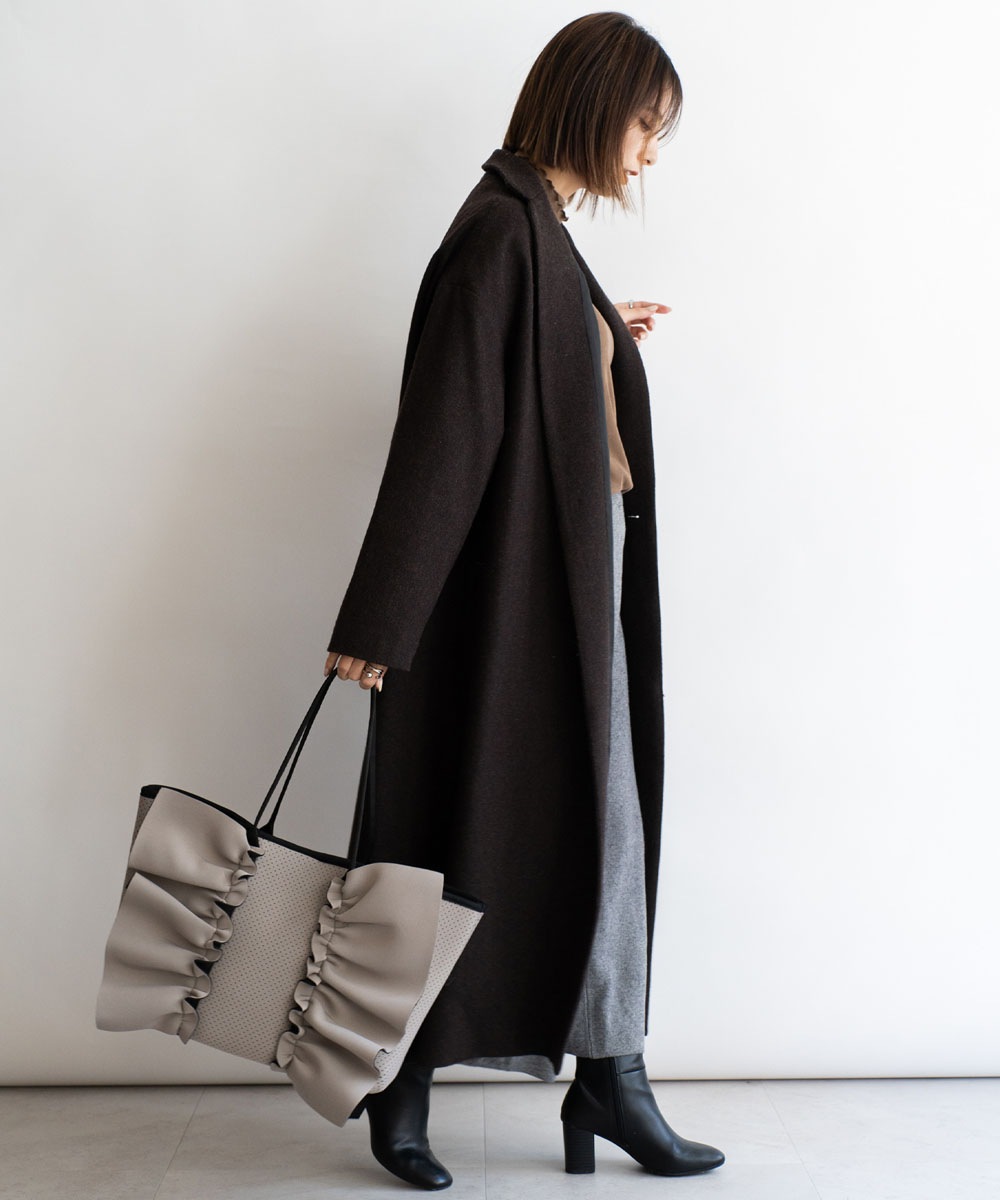 長めのハンドルで、アウターの上からでも肩掛けが可能。