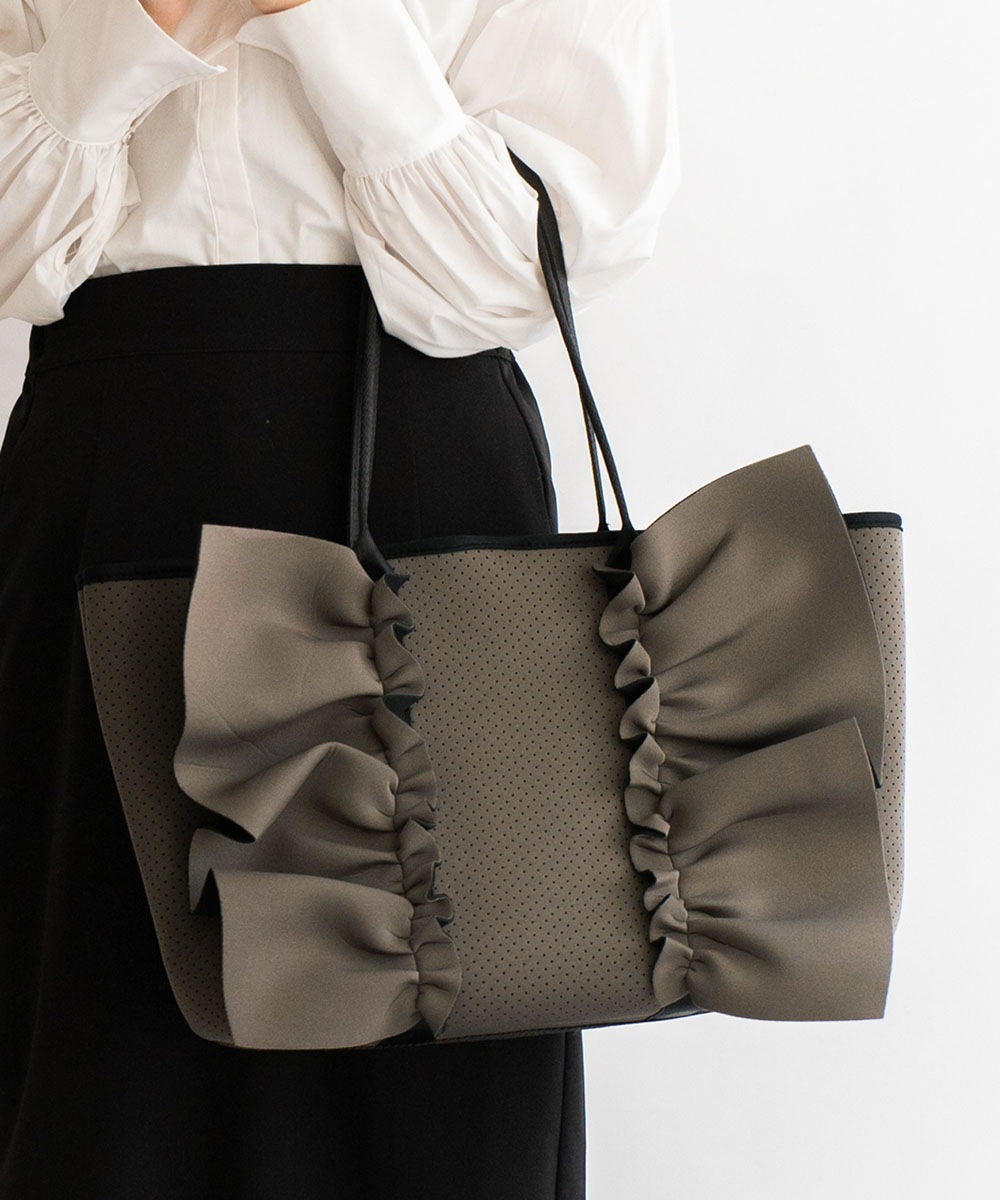 | サイズ | 高さ:約29cm、幅:(上辺)約50cm(下辺)約35cm マチ:約14cm |