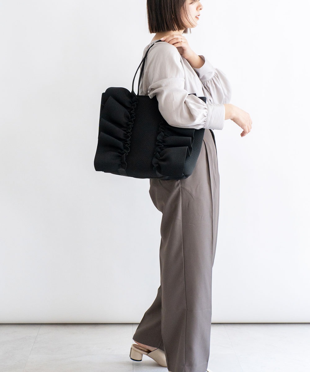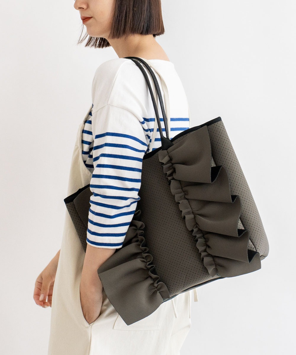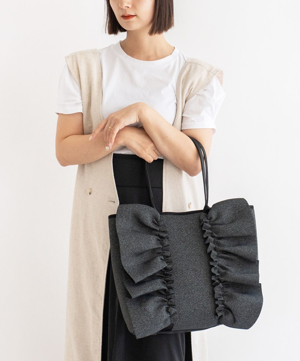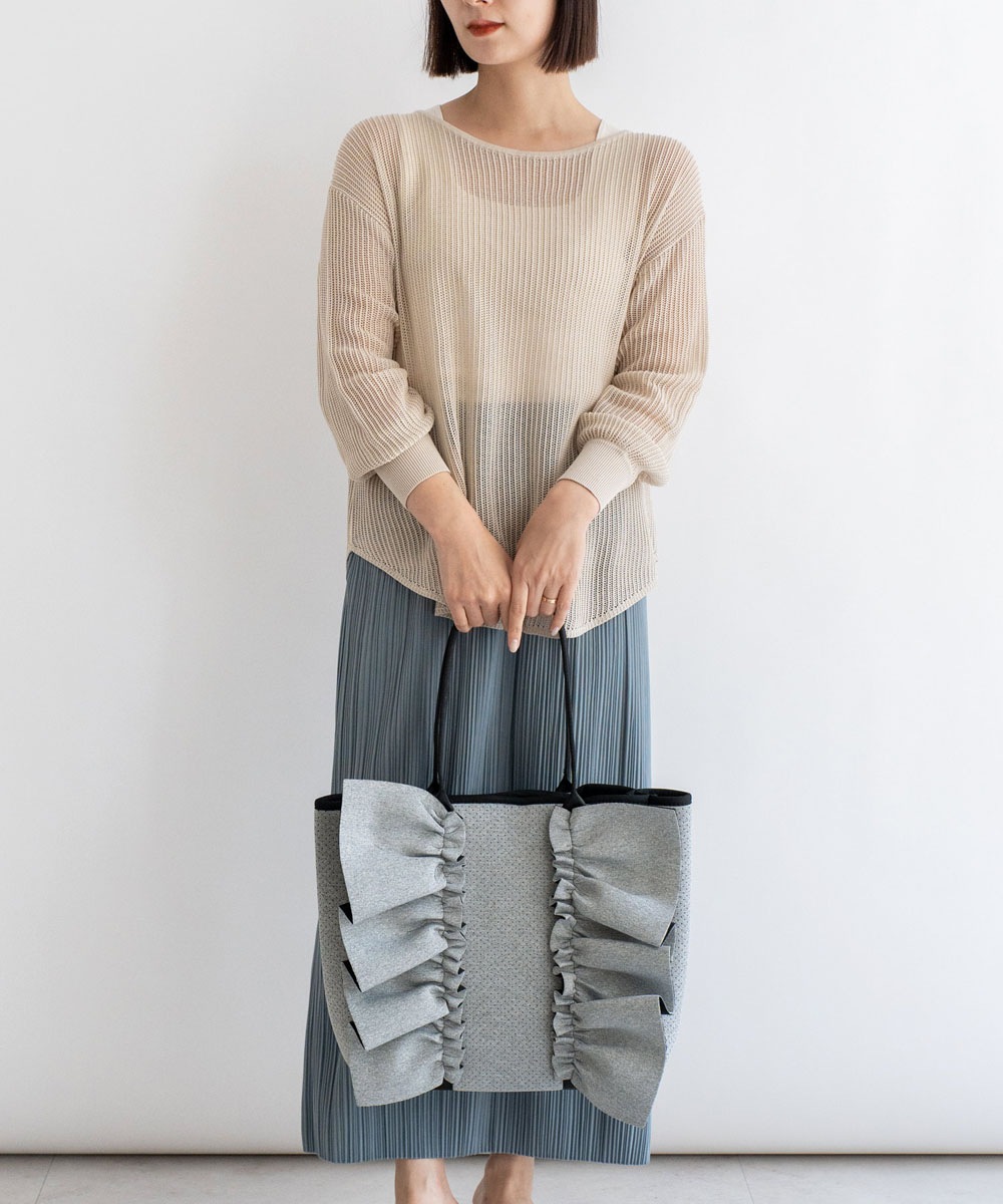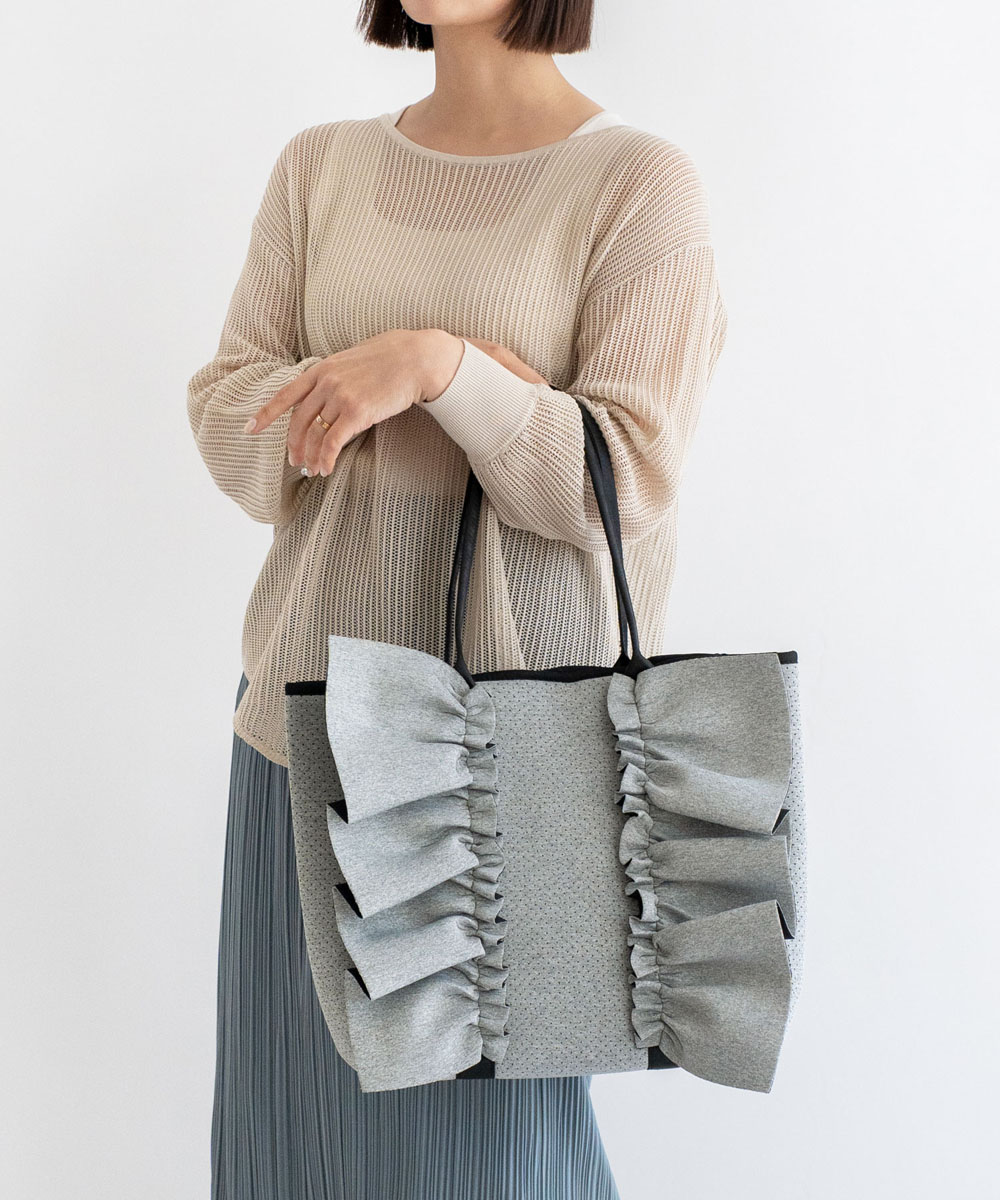 | サイズ | 高さ:約33cm、幅:(上辺)約42cm(下辺)約32cm マチ:約14cm |