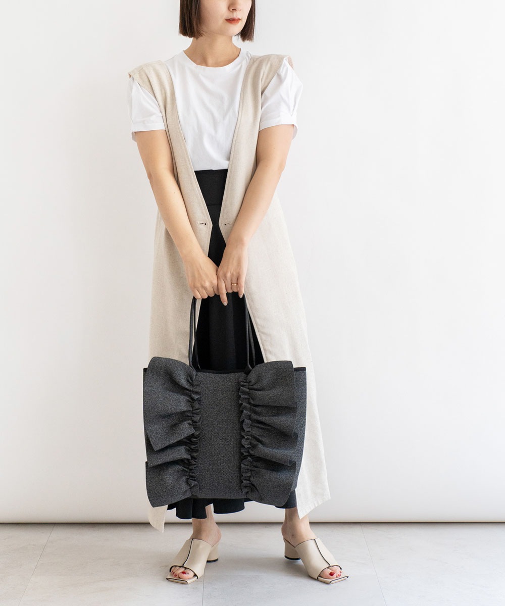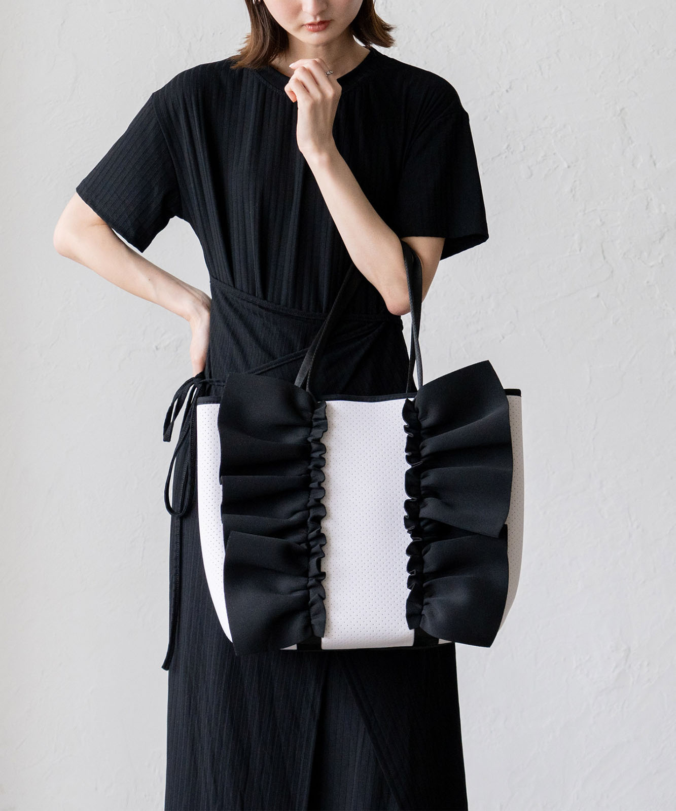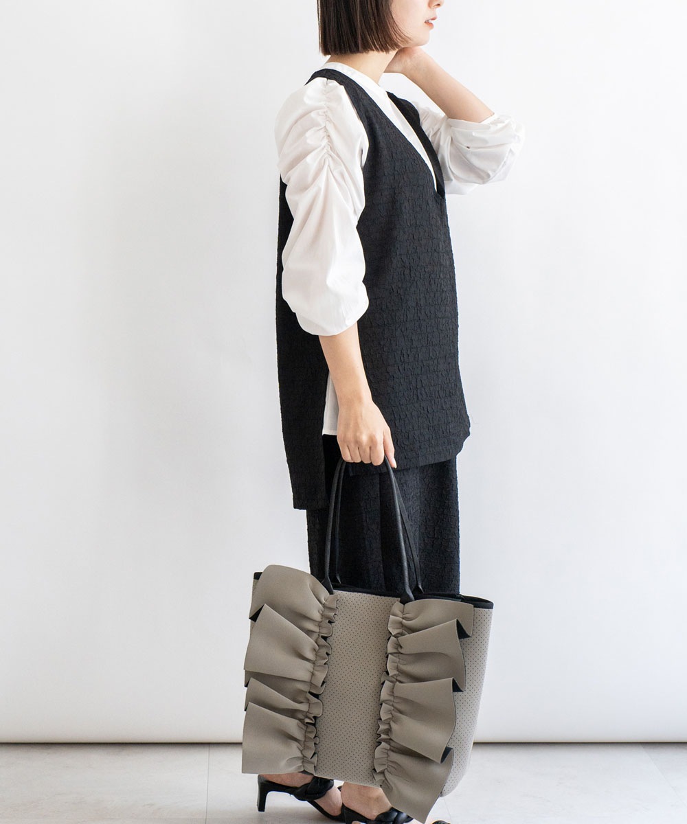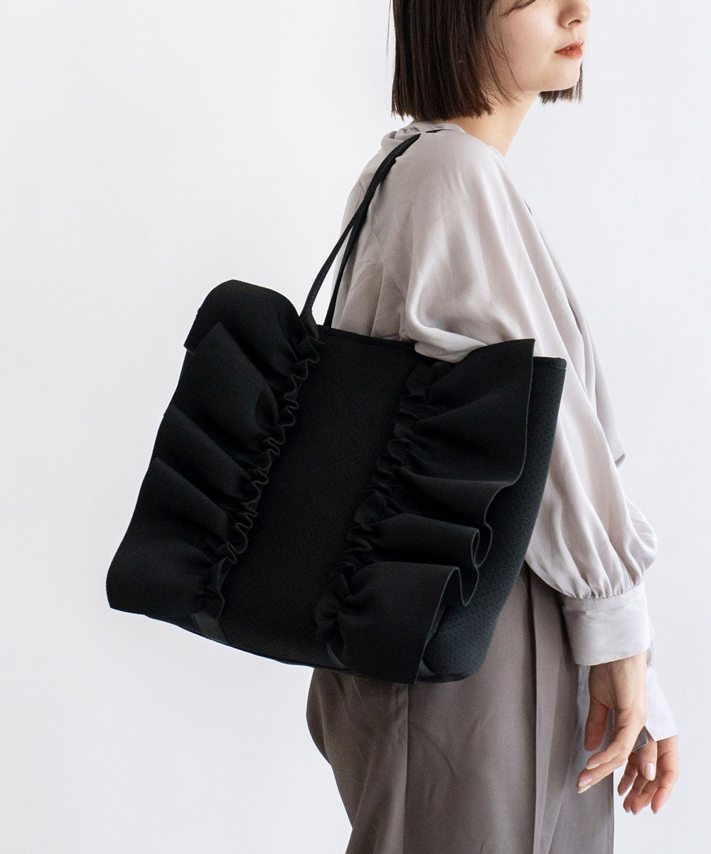 | サイズ | 高さ:約33cm、幅:(上辺)約42cm(下辺)約32cm マチ:約14cm |