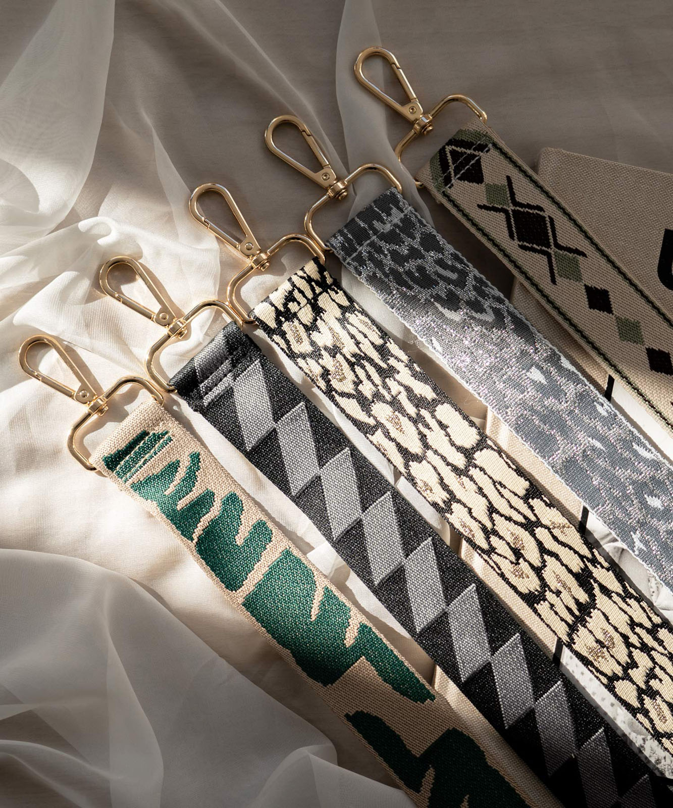 繊細な刺繍と、絶妙な色使いが目を引くデザインストラップ。