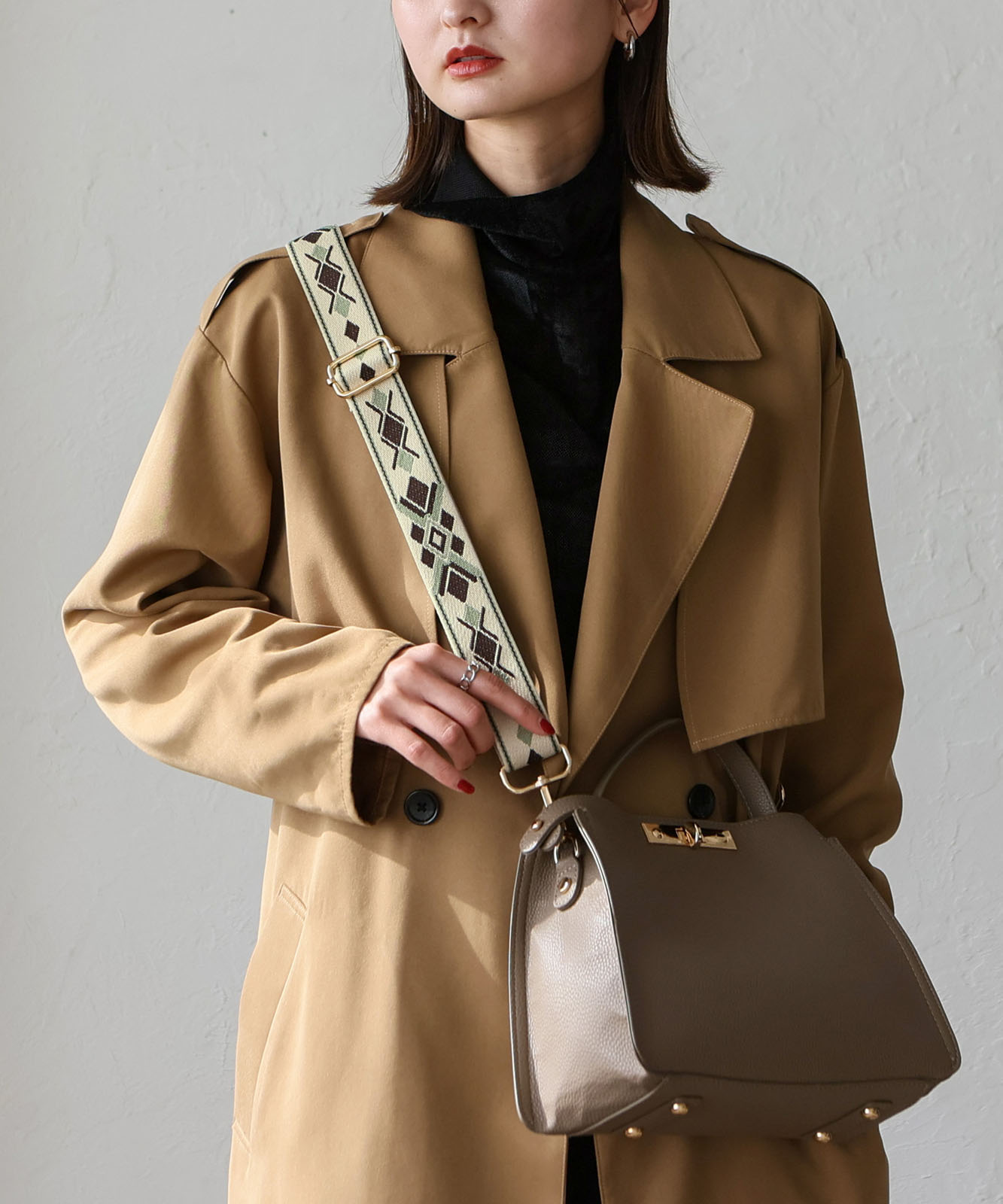 シンプルなバッグもショルダーベルトを変えるだけで