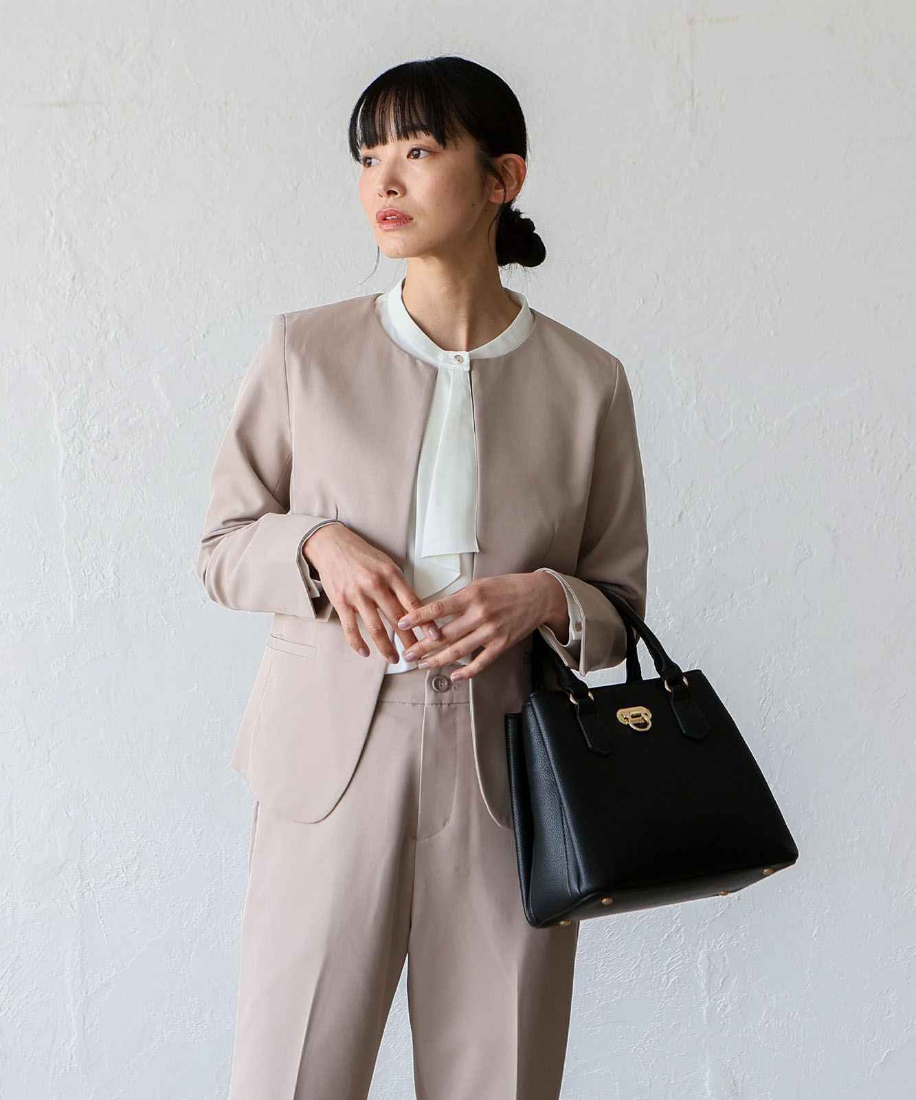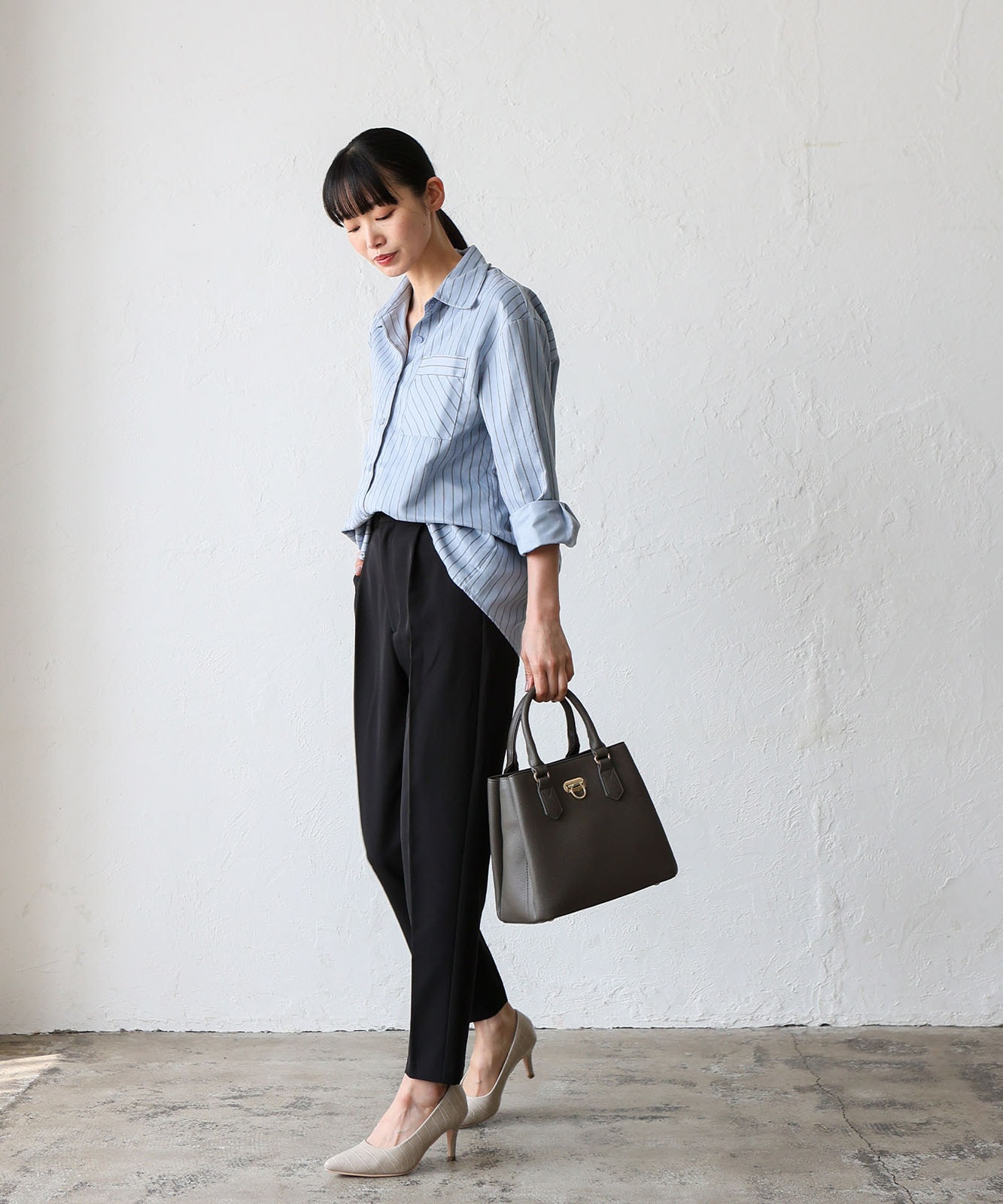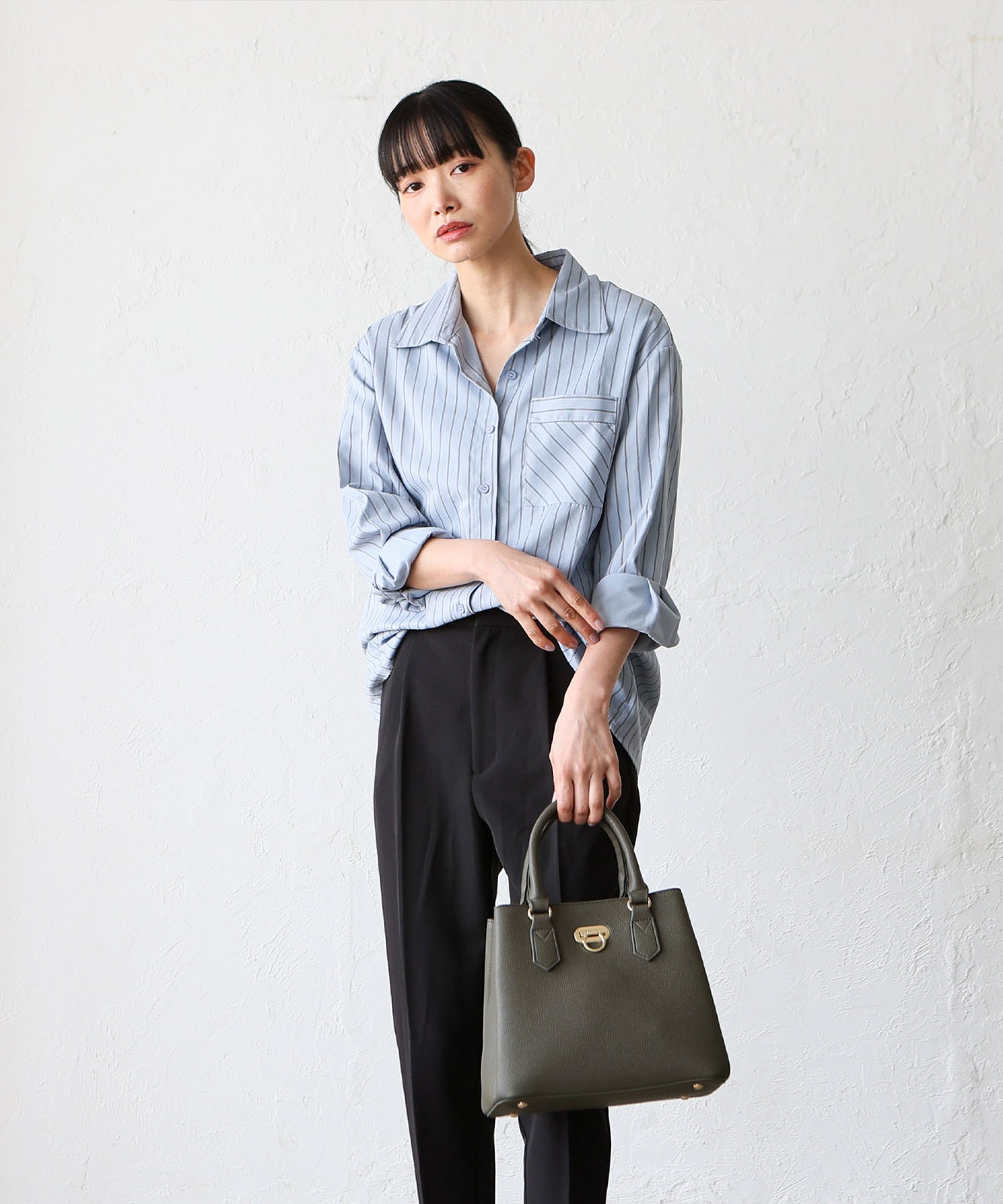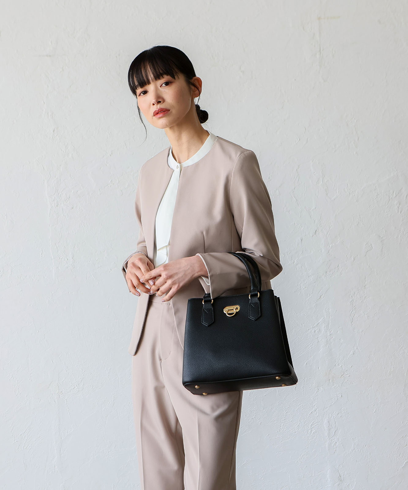 前面のリング型オコシ金具が上品なアクセントに。キレイめコーデにもカジュアルスタイルにも馴染み、幅広いシーンで活躍します。