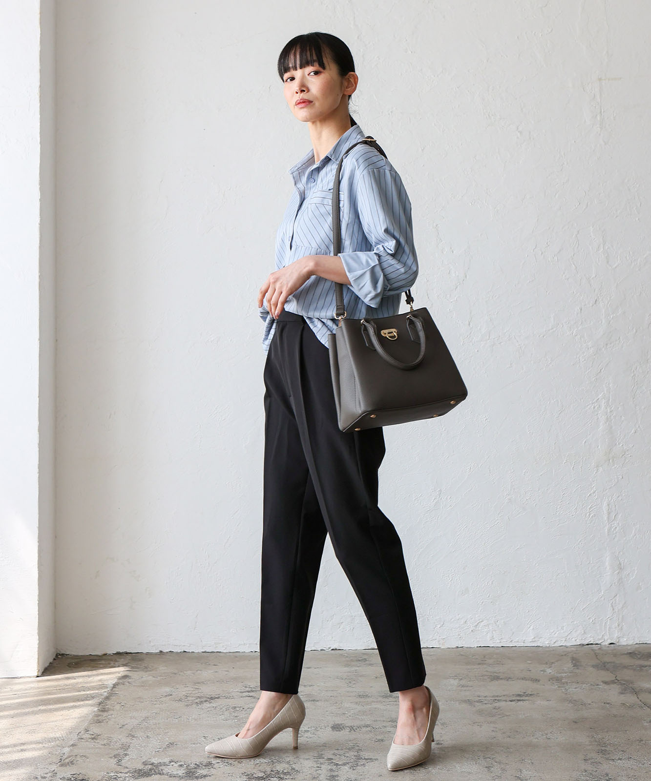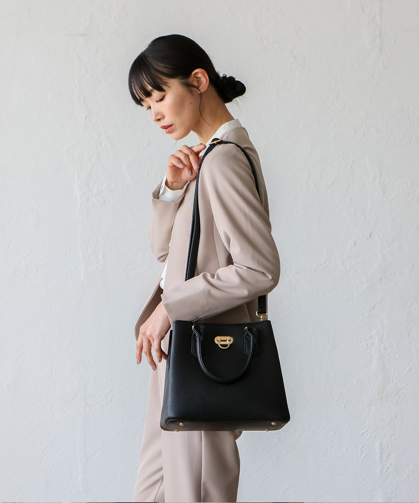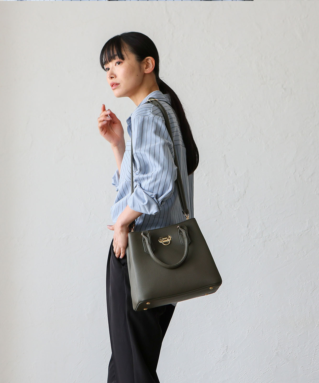 ハンドル付きで手持ちはもちろん、ショルダーストラップを使えば肩掛けや斜め掛けにも対応可能。シーンやスタイルに合わせて使い分けられる便利な2WAY仕様です。