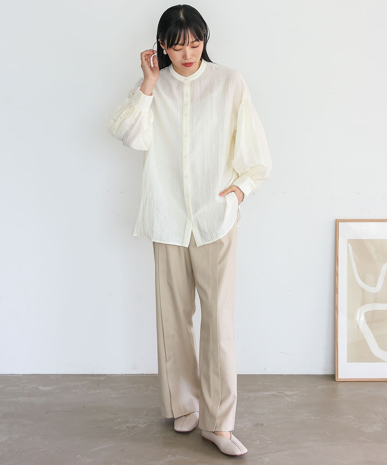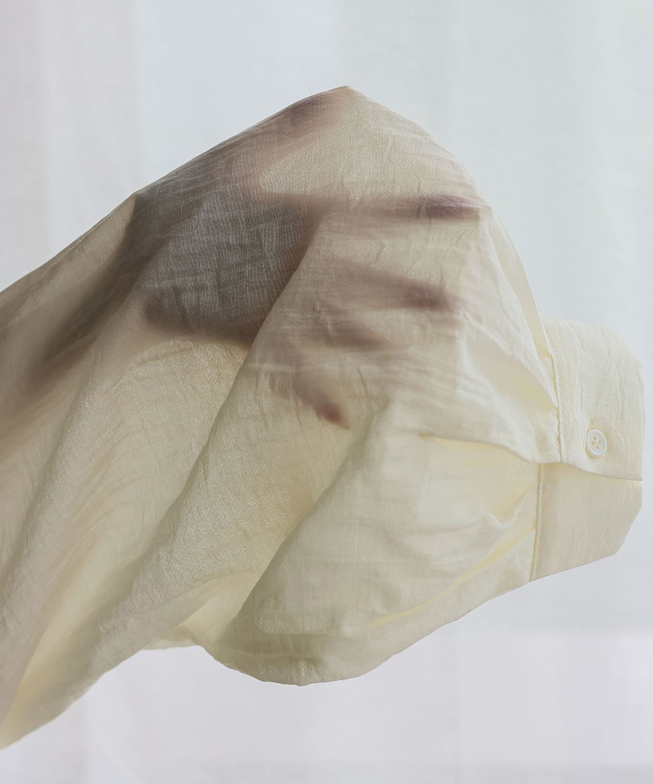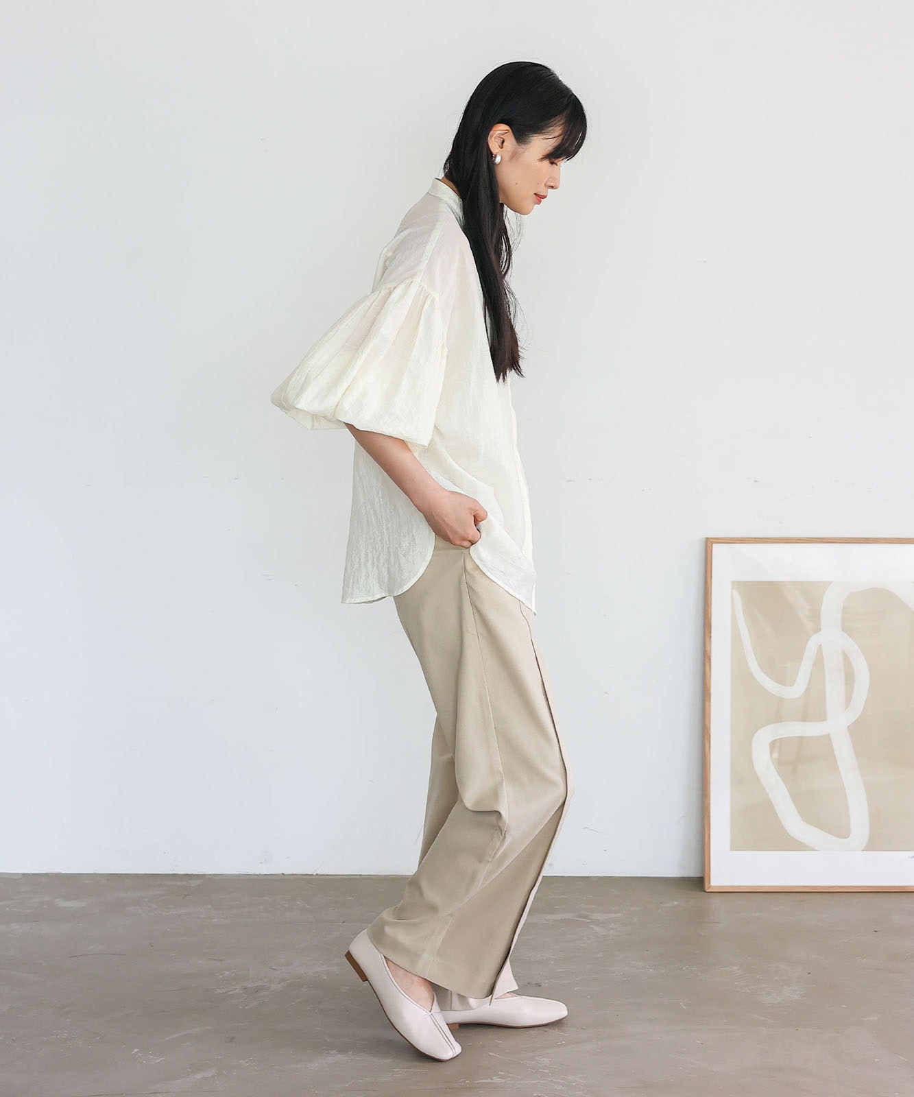 ナチュラルなシワ加工が施された、程よいシアー感のある素材が、軽やかで女性らしい印象に。