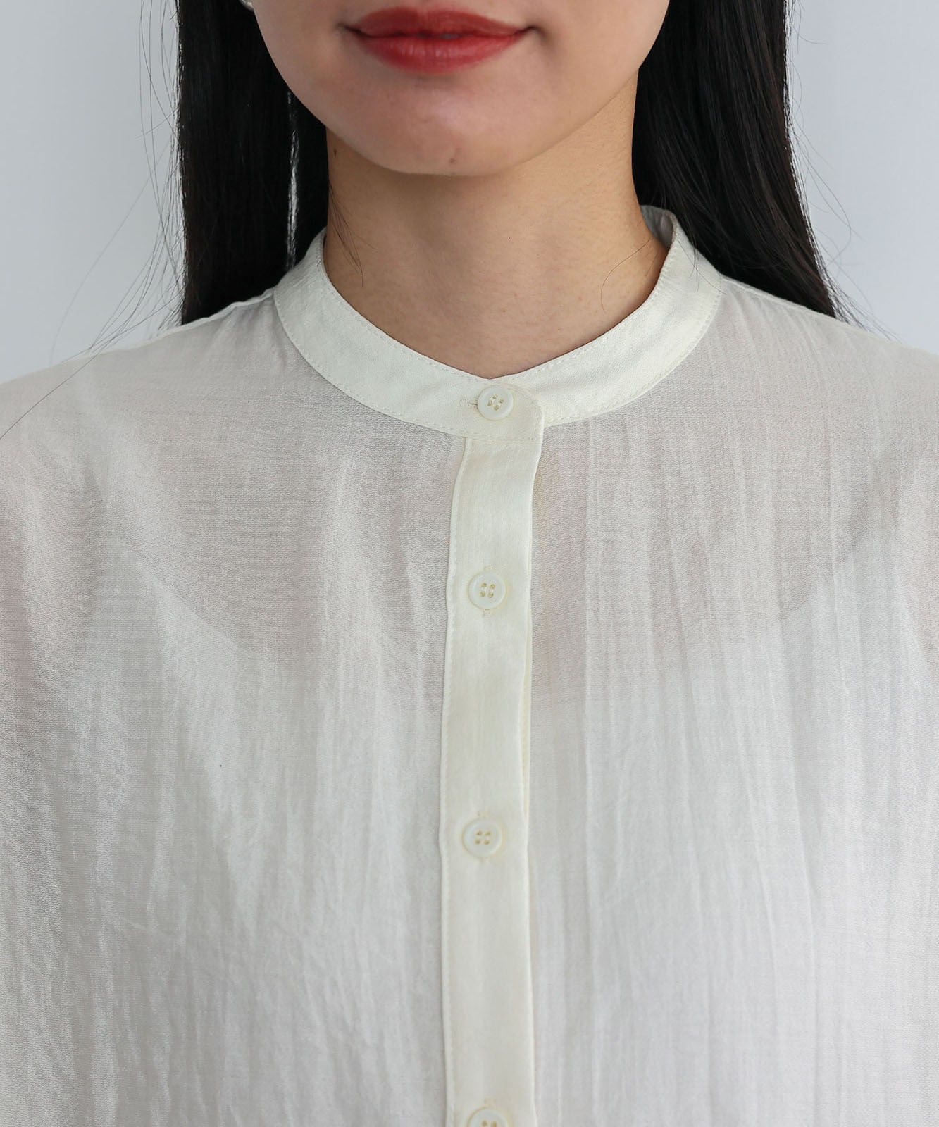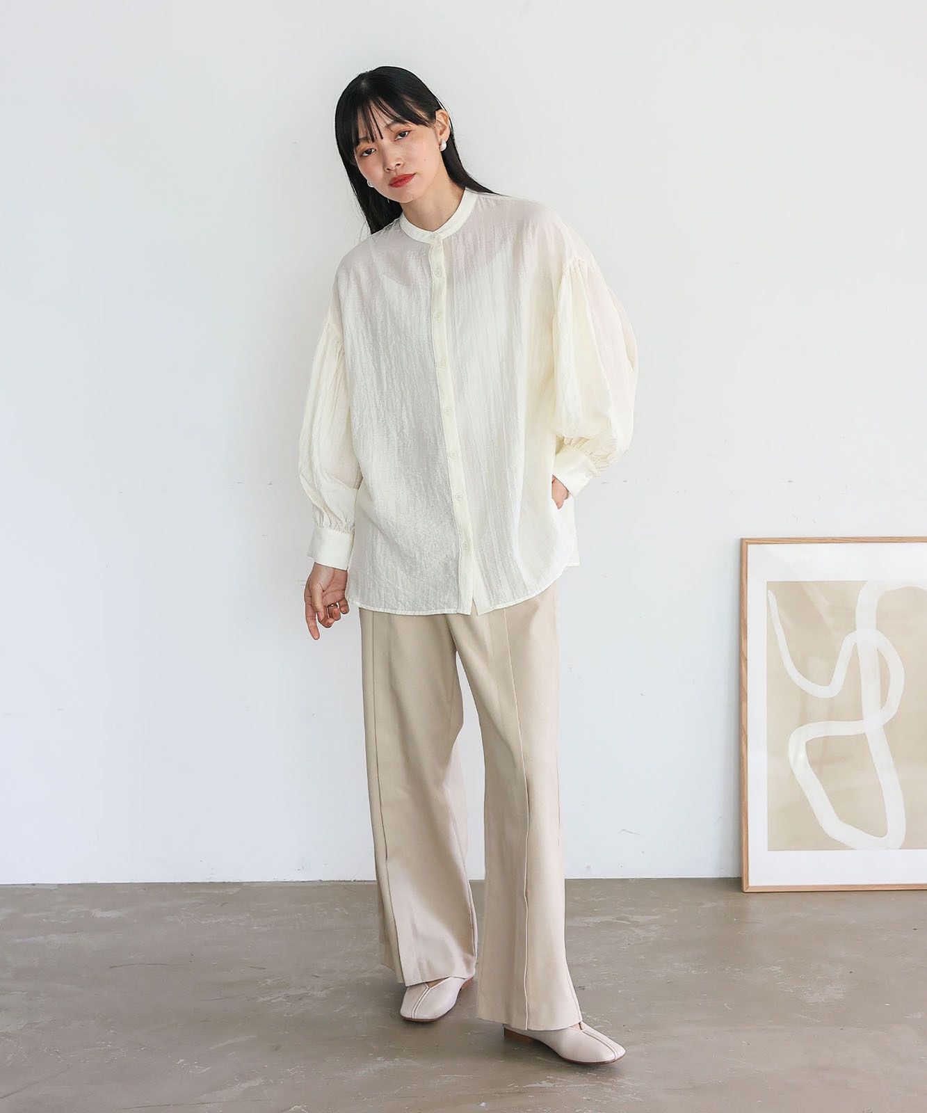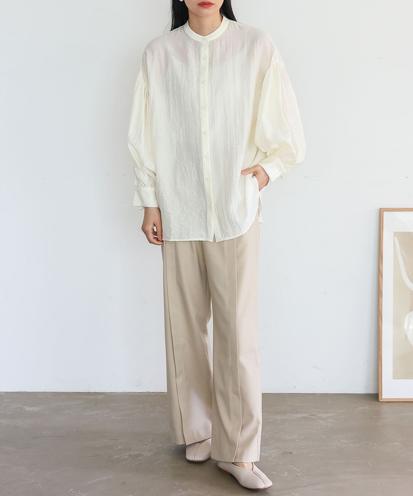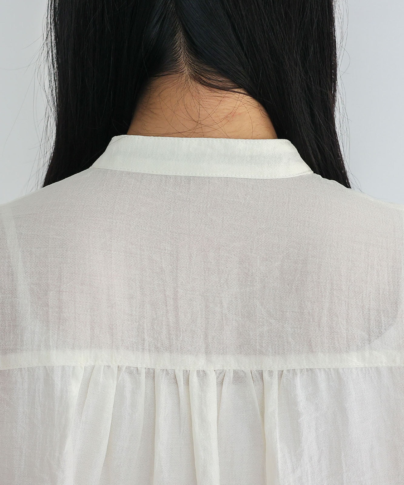 ナチュラルなシワ加工が施された、程よいシアー感のある素材が、軽やかで女性らしい印象に。