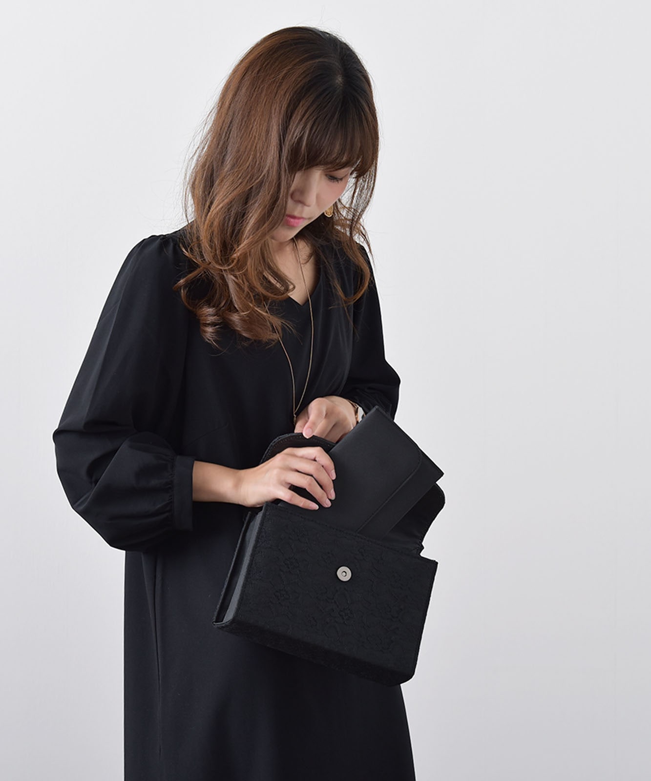 袱紗とサブバッグがセットになった便利なフォーマルバッグ。