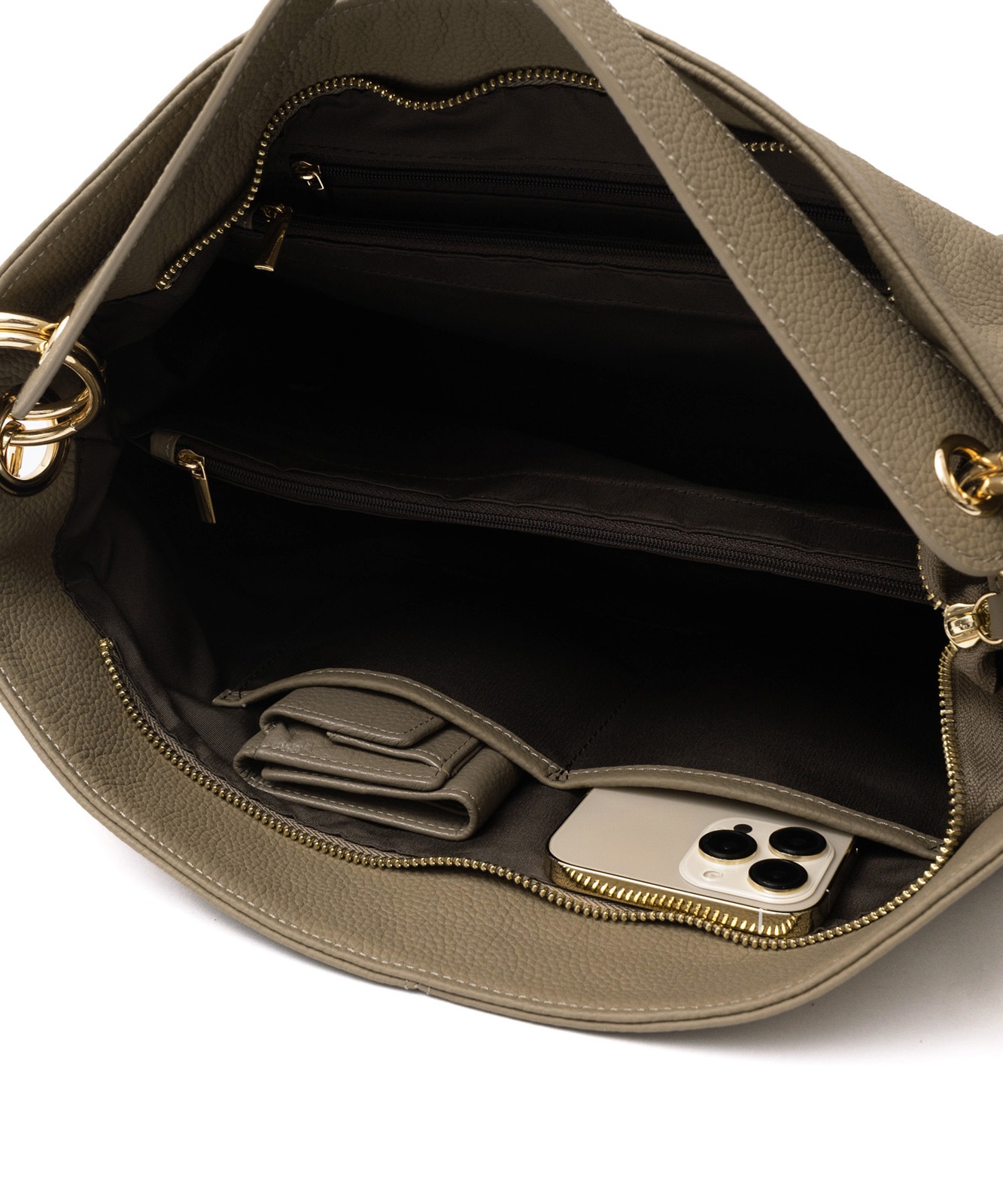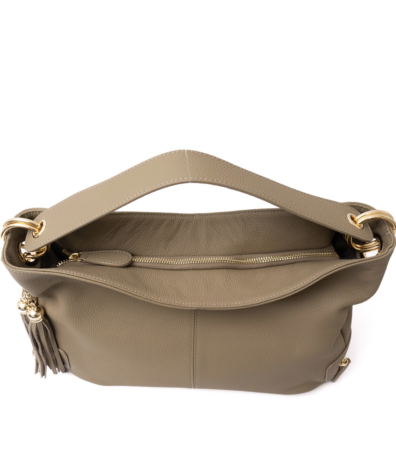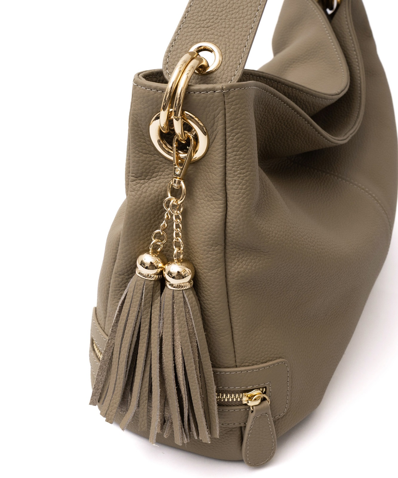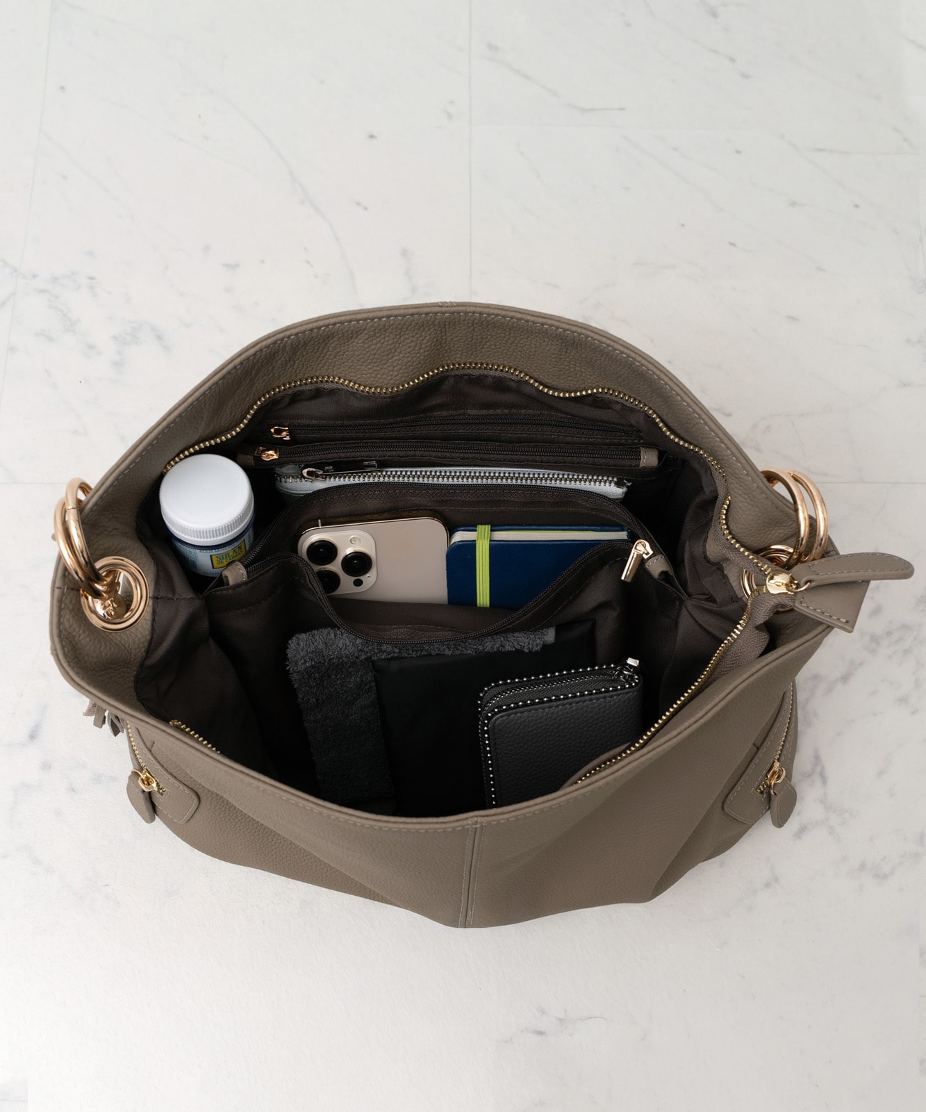 持ち手を持ち上げると、やわらかく丸みのあるシルエットに。大人の女性らしい抜け感をプラスします。