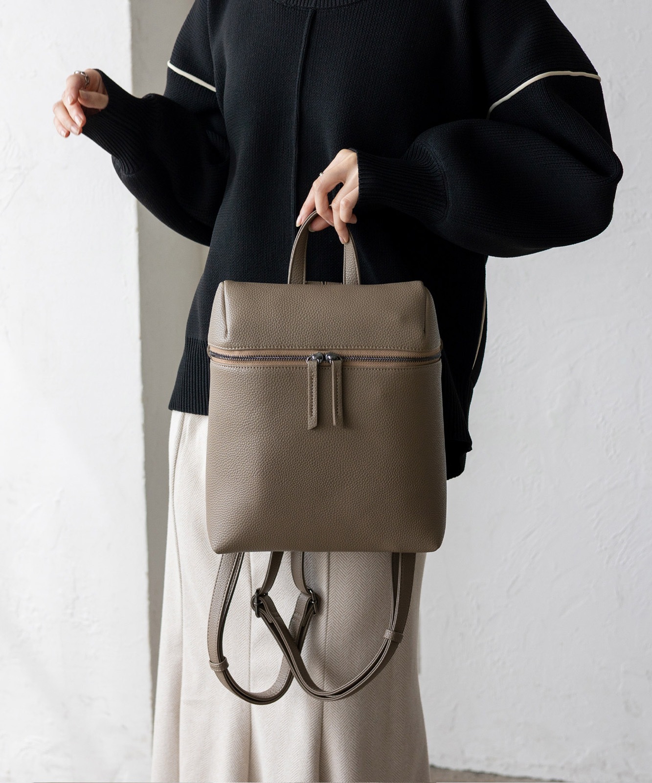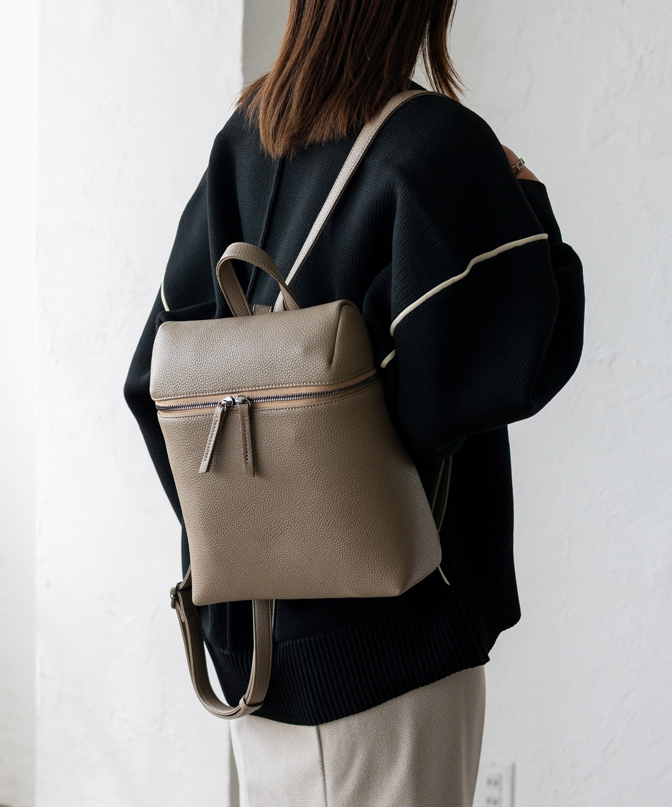 リュックに抵抗のある方でも持ちやすい、シンプルで洗練されたデザイン。どんなコーデにも自然にマッチします。