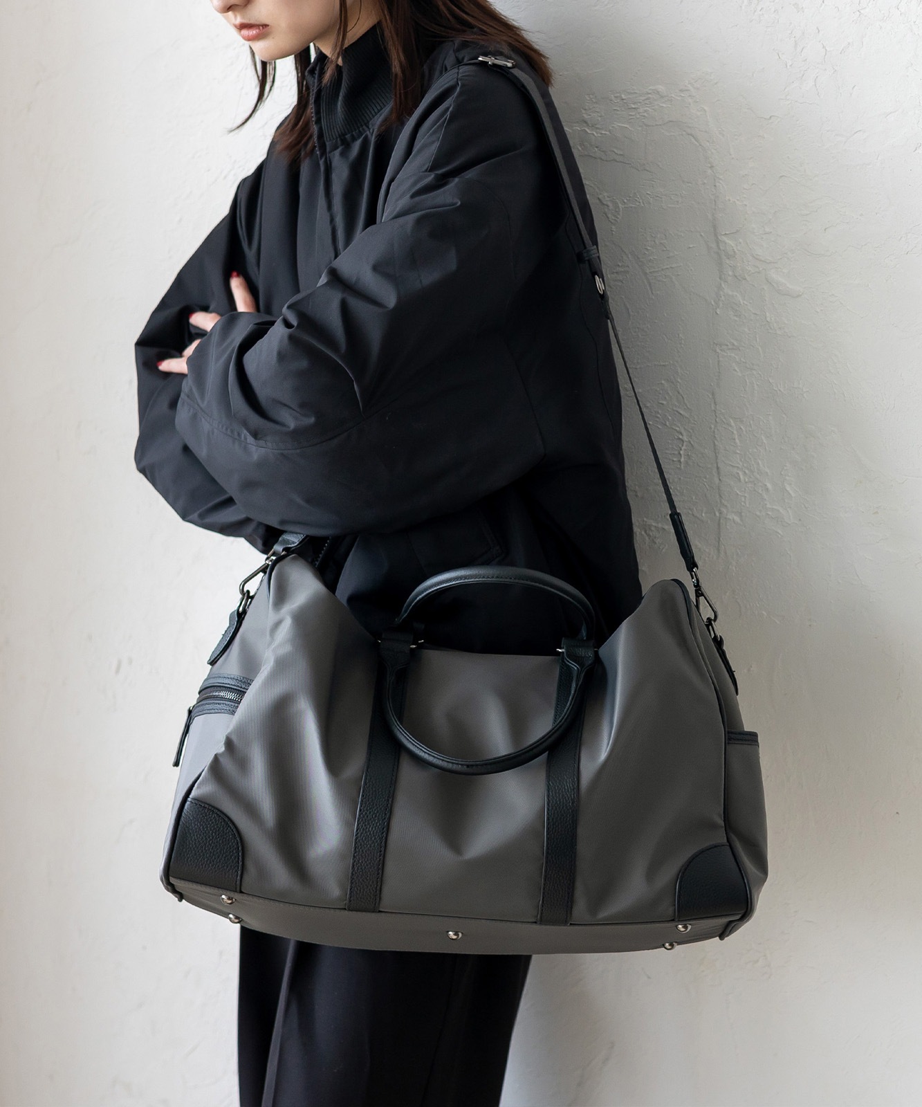 ユニセックスで使いやすいシンプルデザインのボストンバッグ。