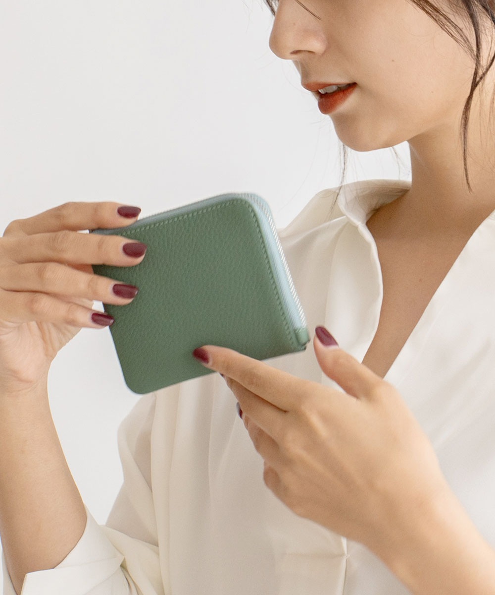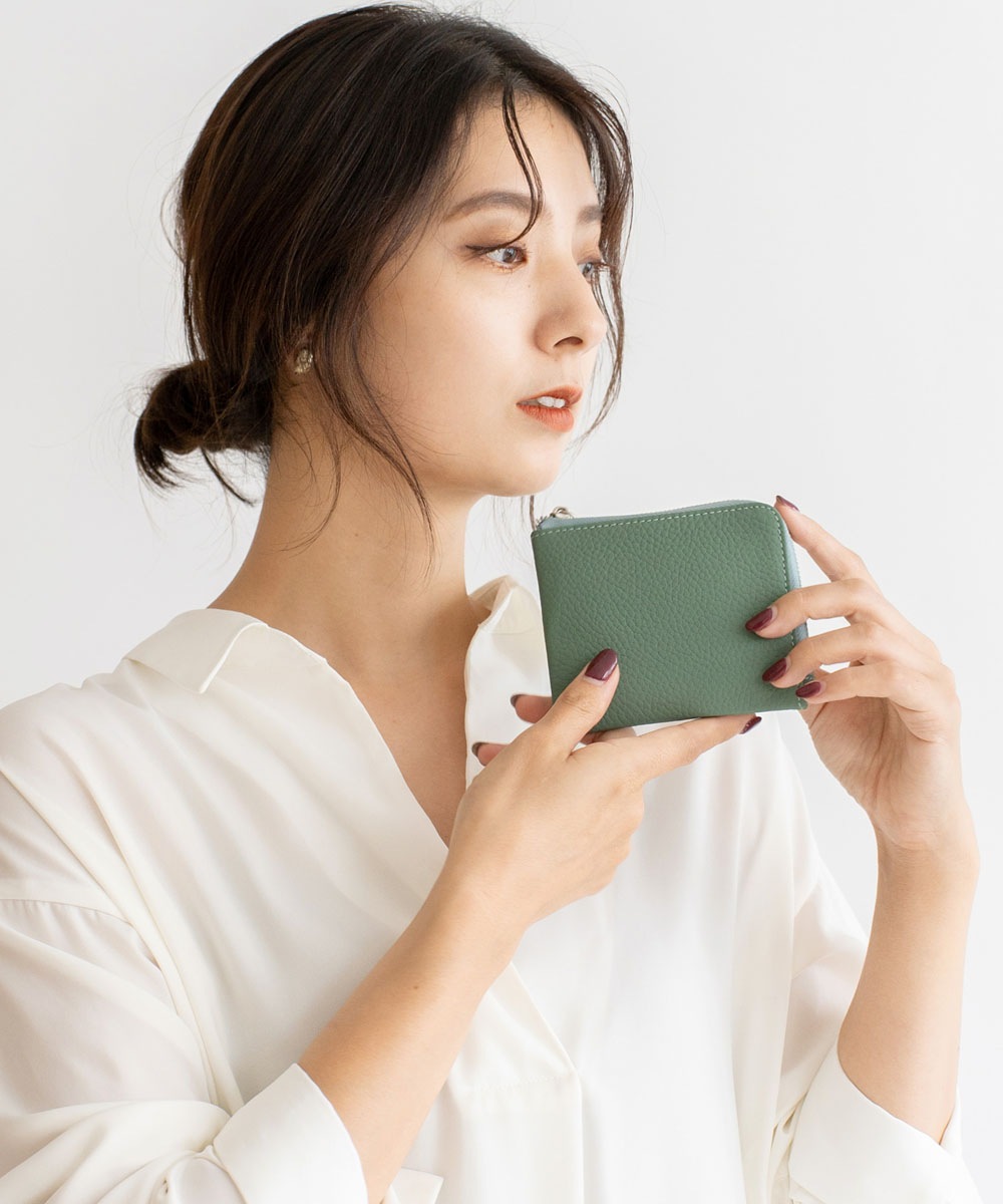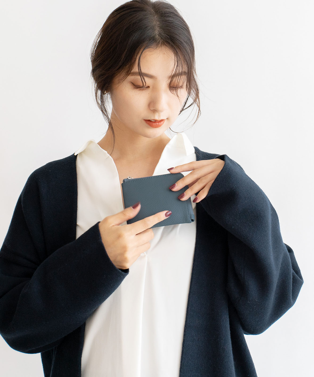 お札、小銭、カードもスッキリ入る スリムコンパクトな本革ミニウォレット。