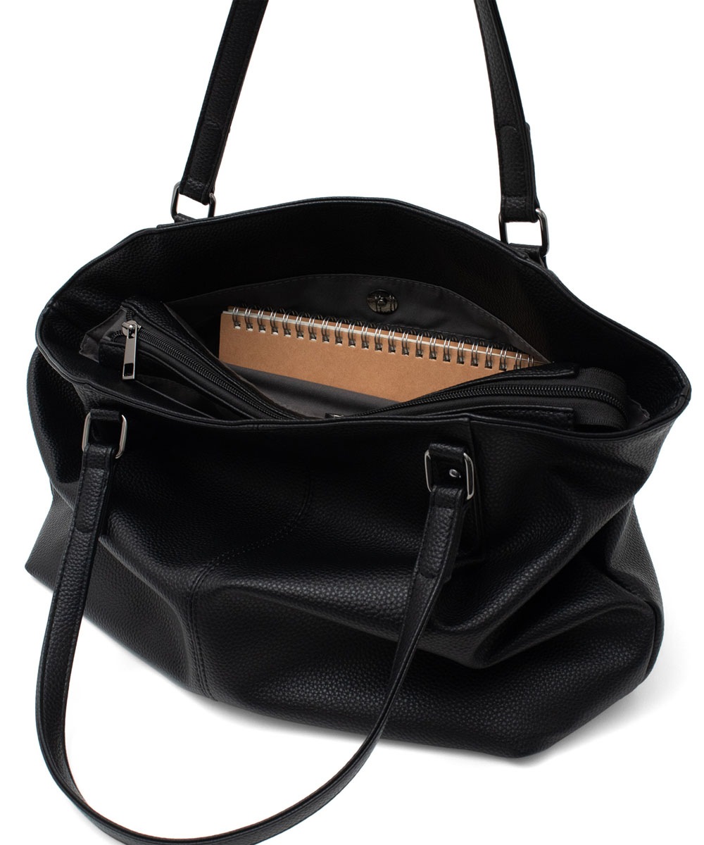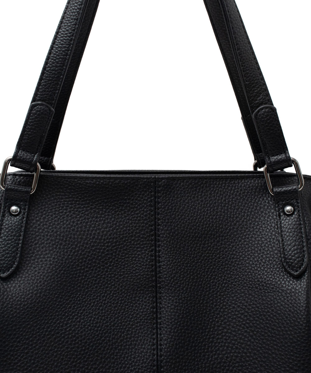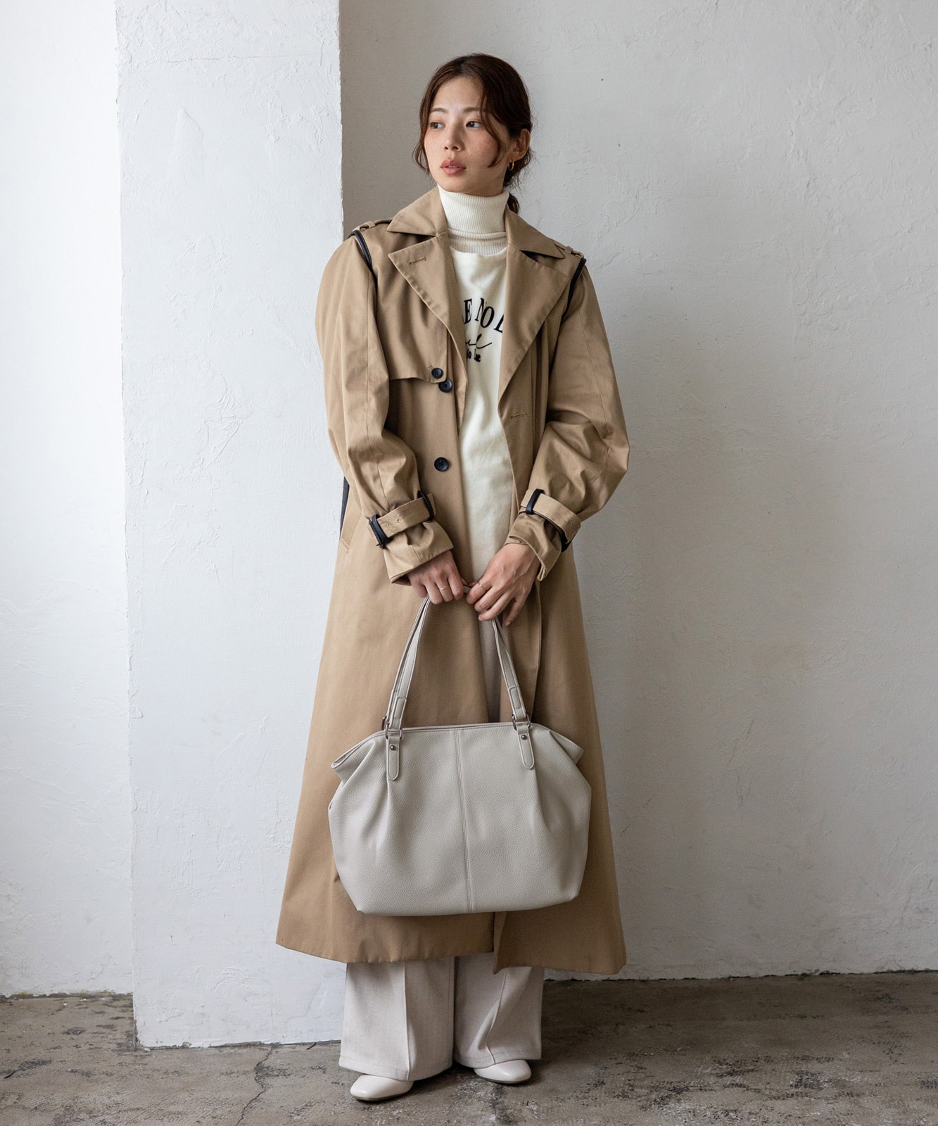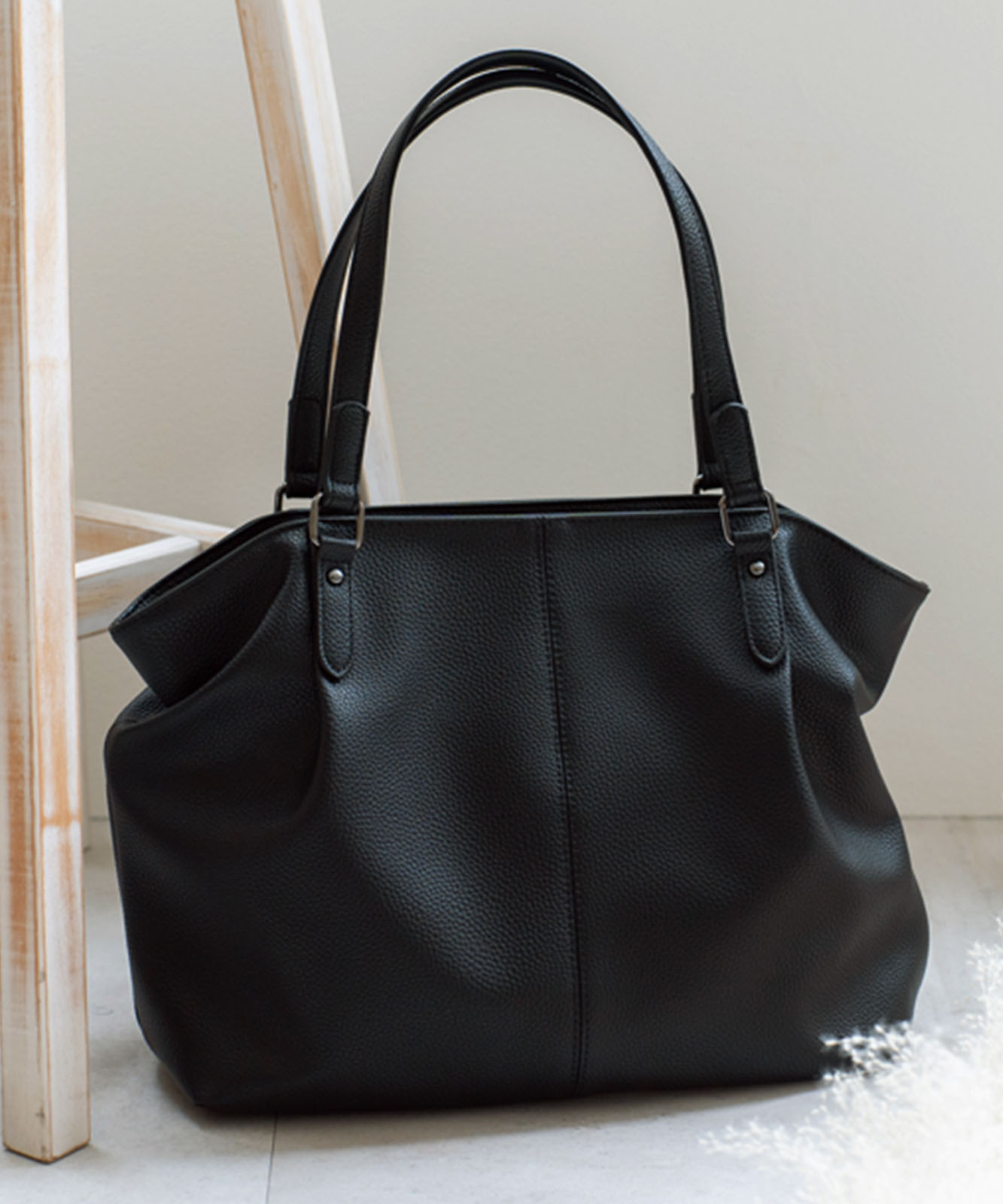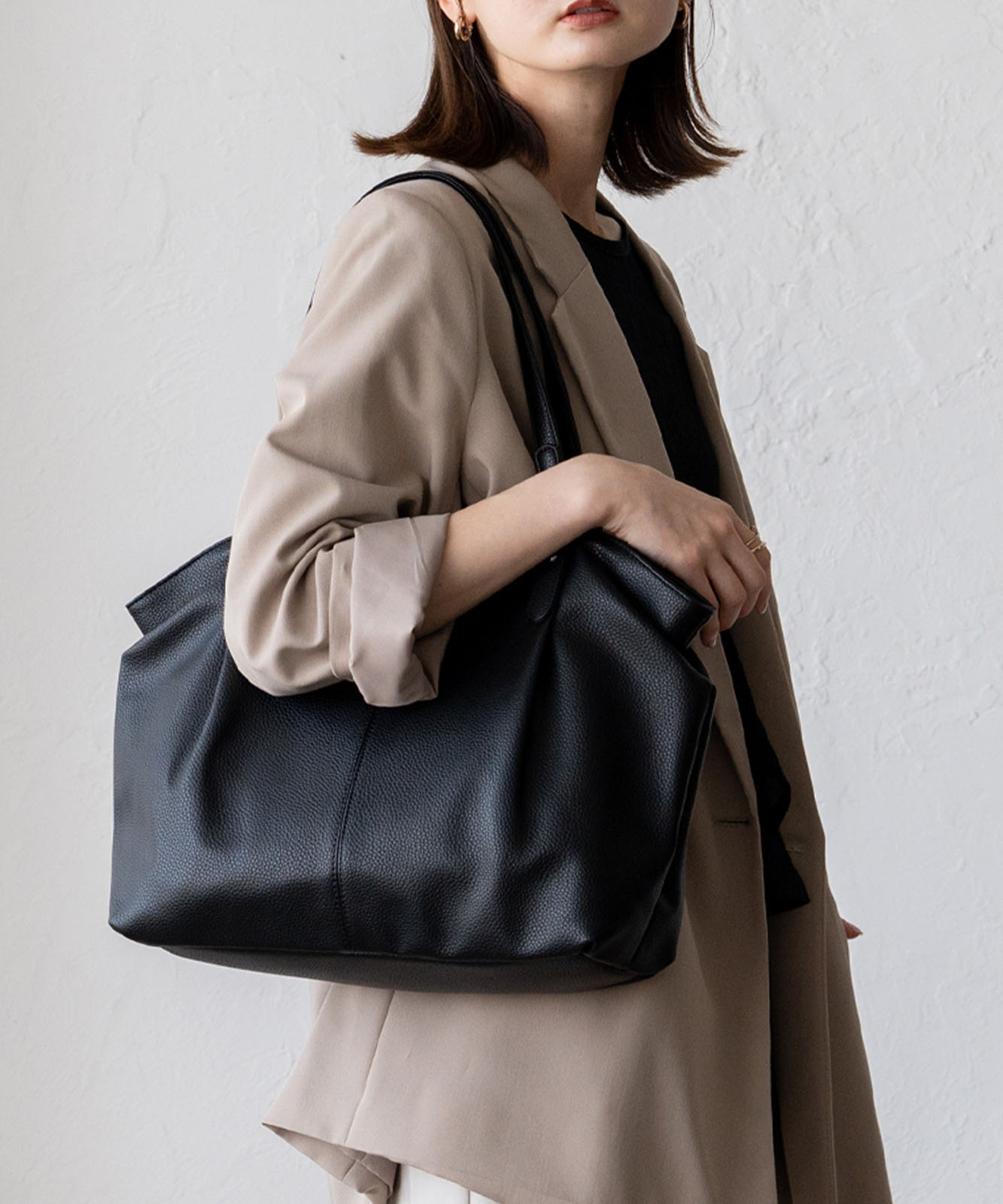 長めのハンドル設計で、厚手アウターの上からでも肩掛けしやすい仕様。デイリーに安心して使える実用的なデザインです。