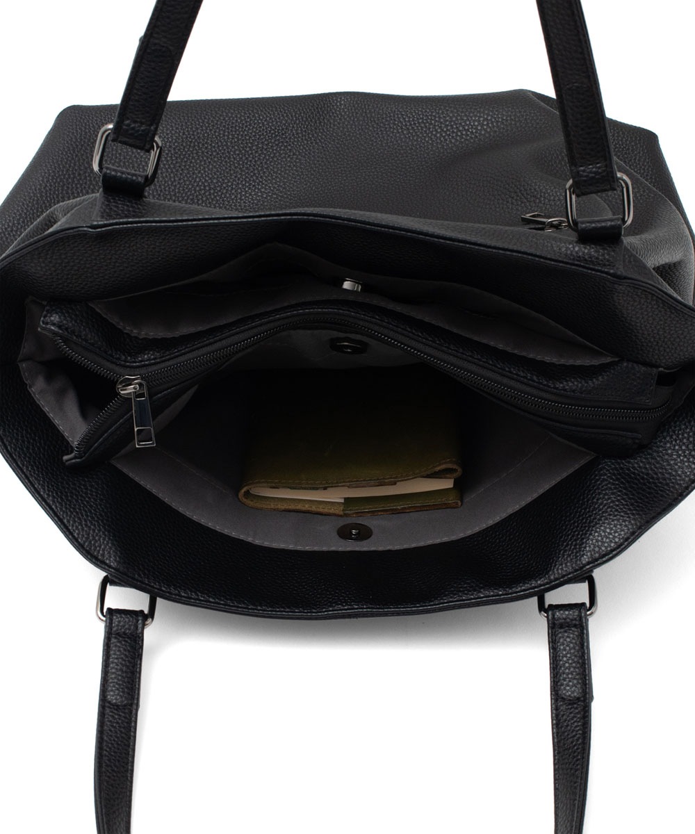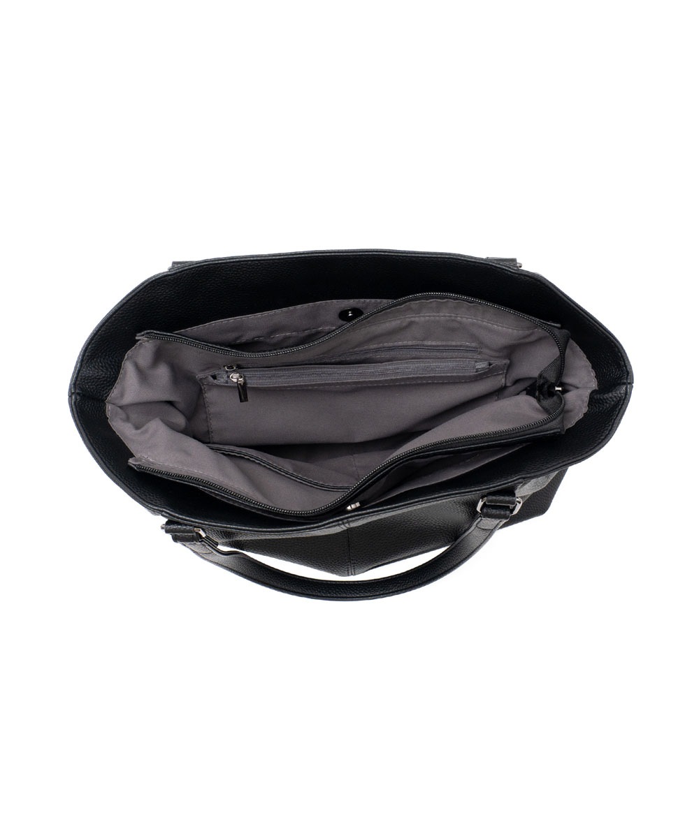 中央はファスナー開閉のメインルーム、前後にはマグネットポケットを配置。荷物をすっきり分けて収納でき、使い勝手抜群です。
