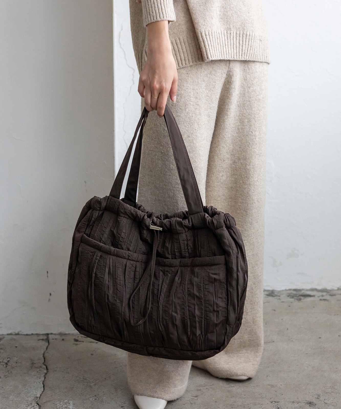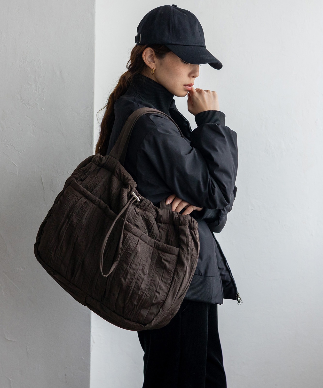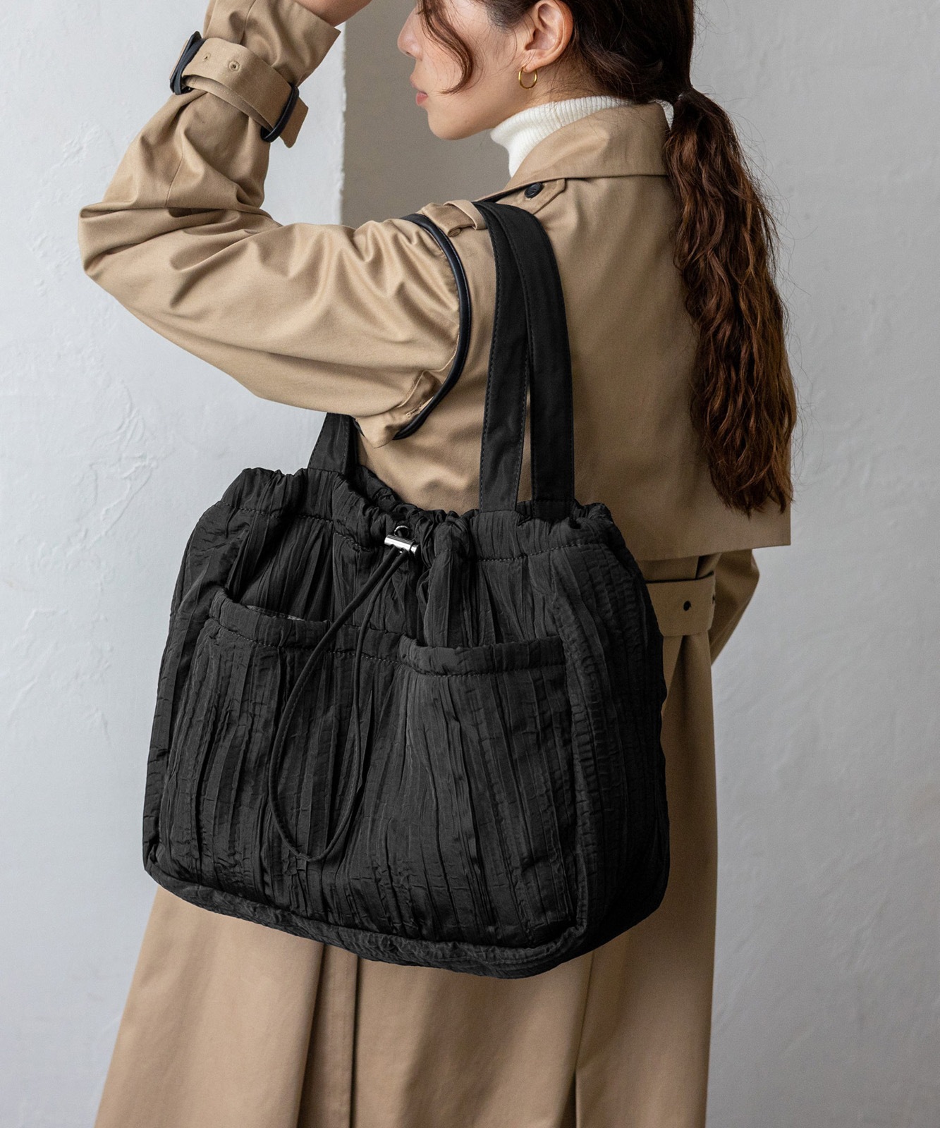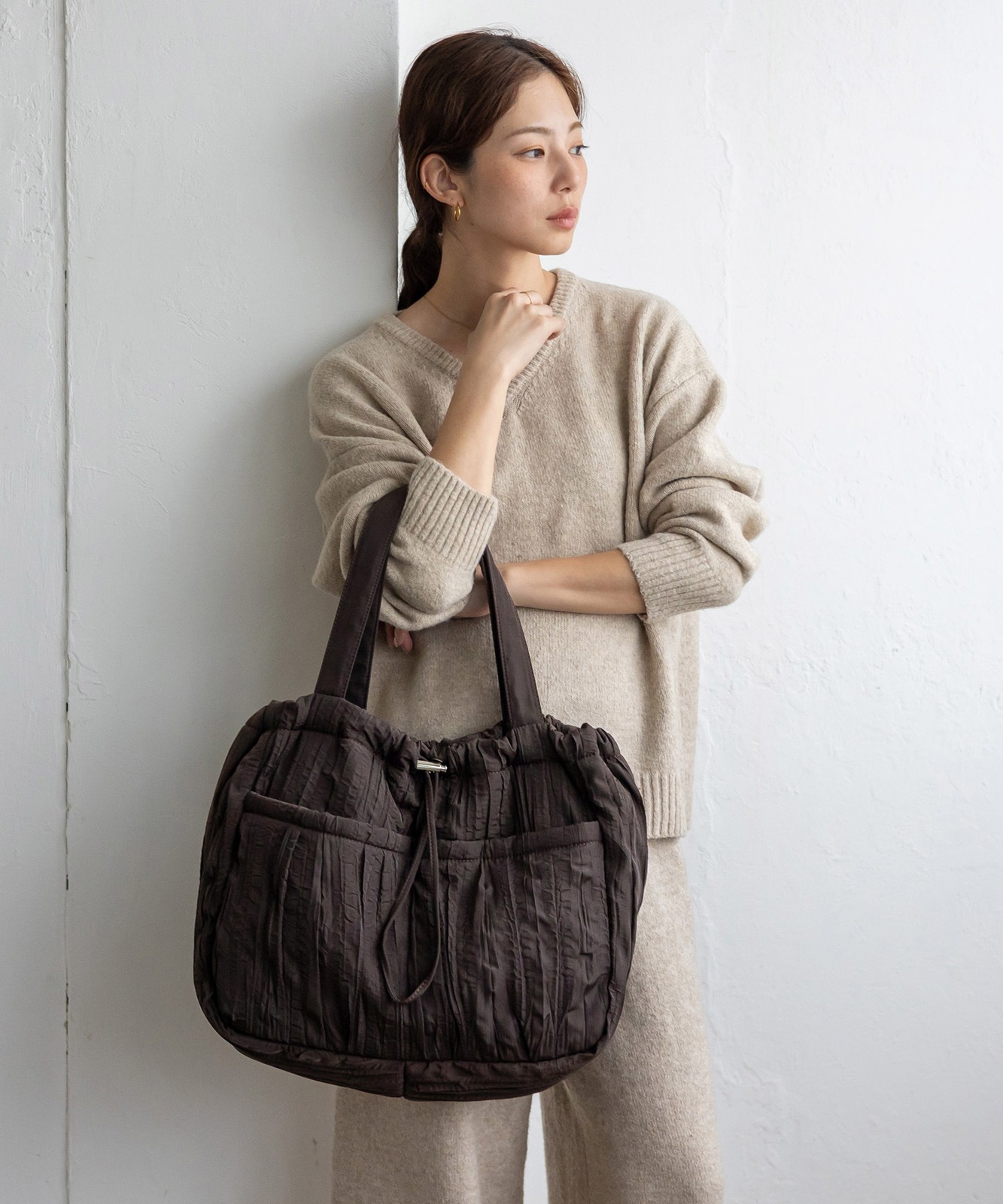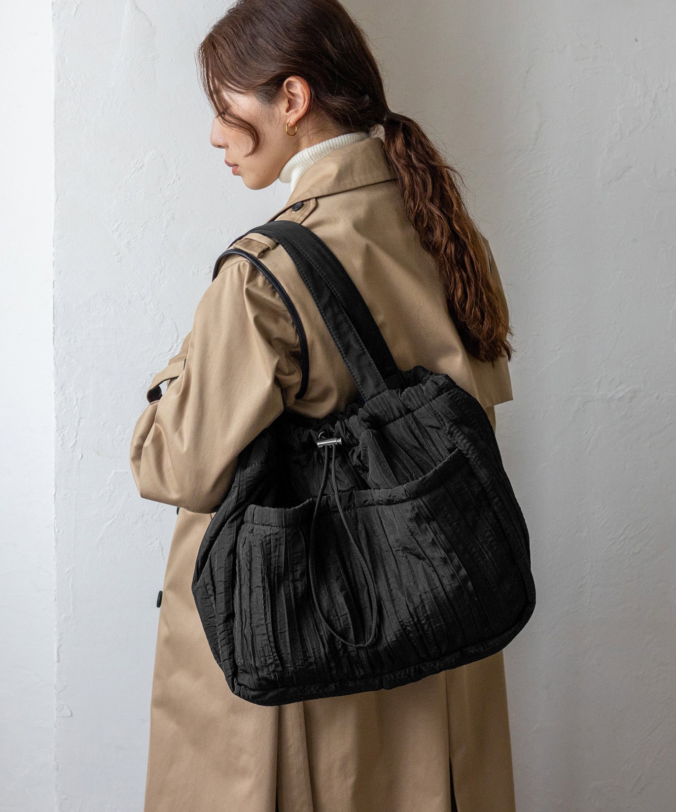 機能性と可愛さが備わった大口巾着トートバッグ。