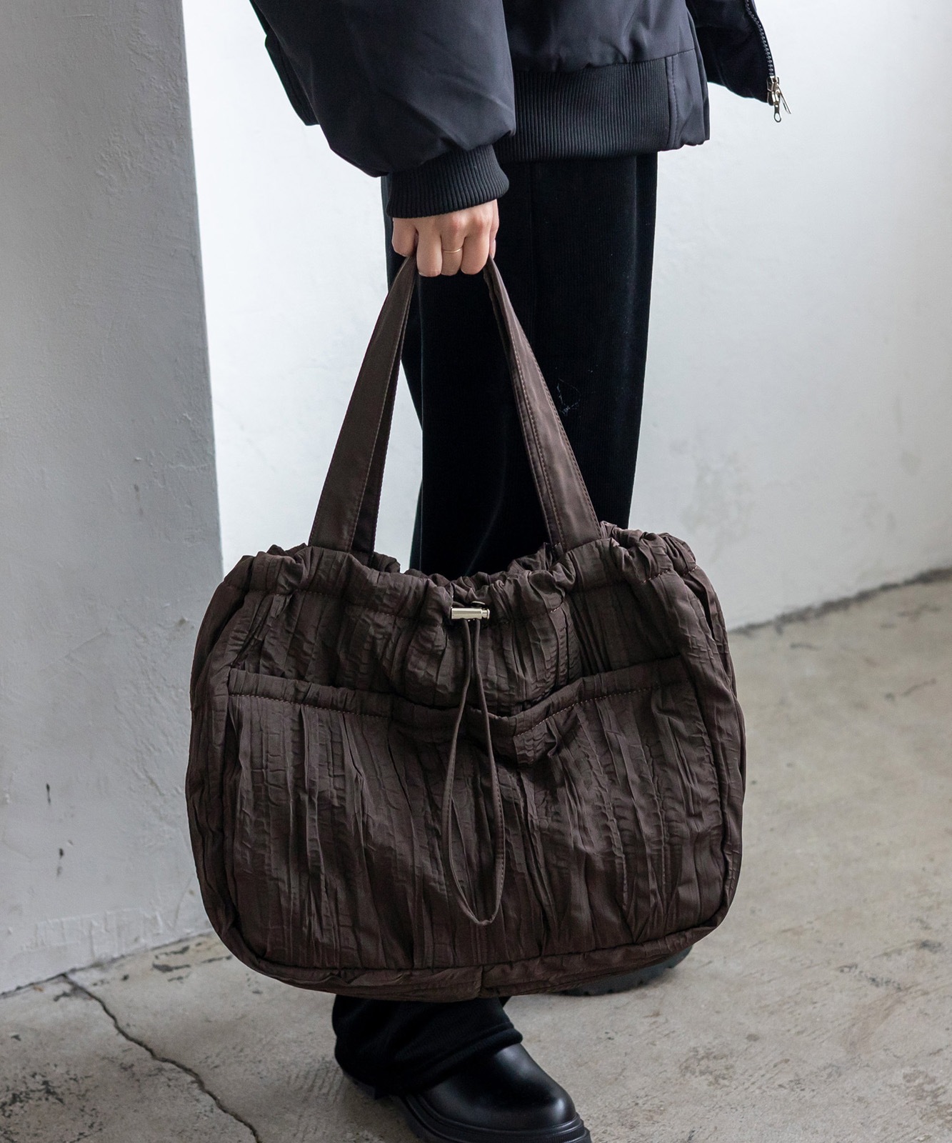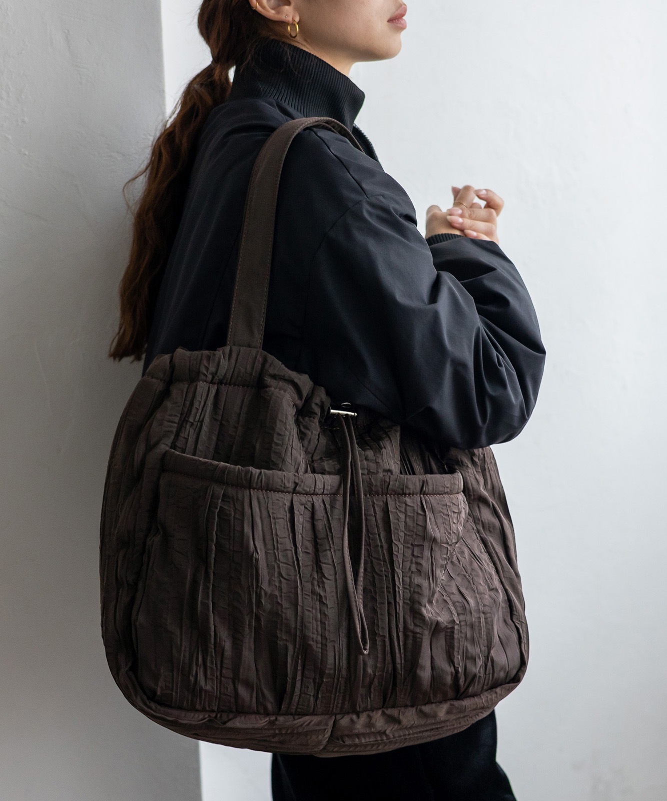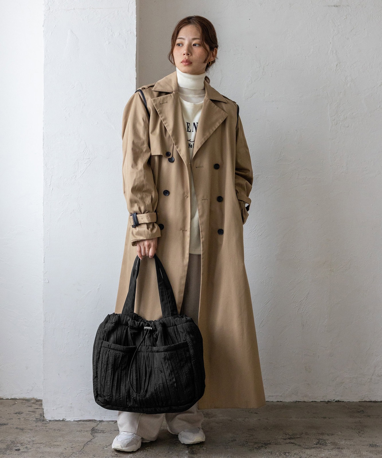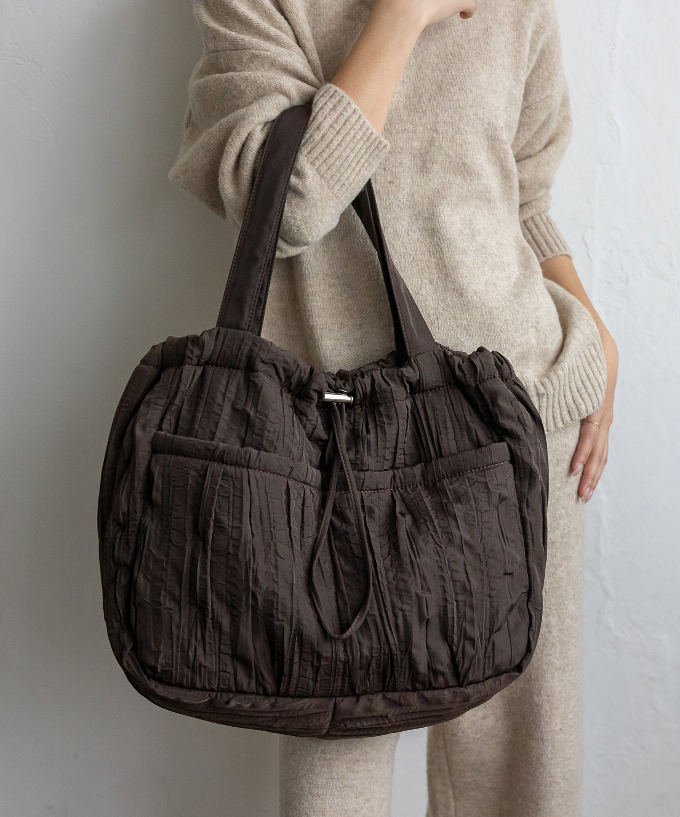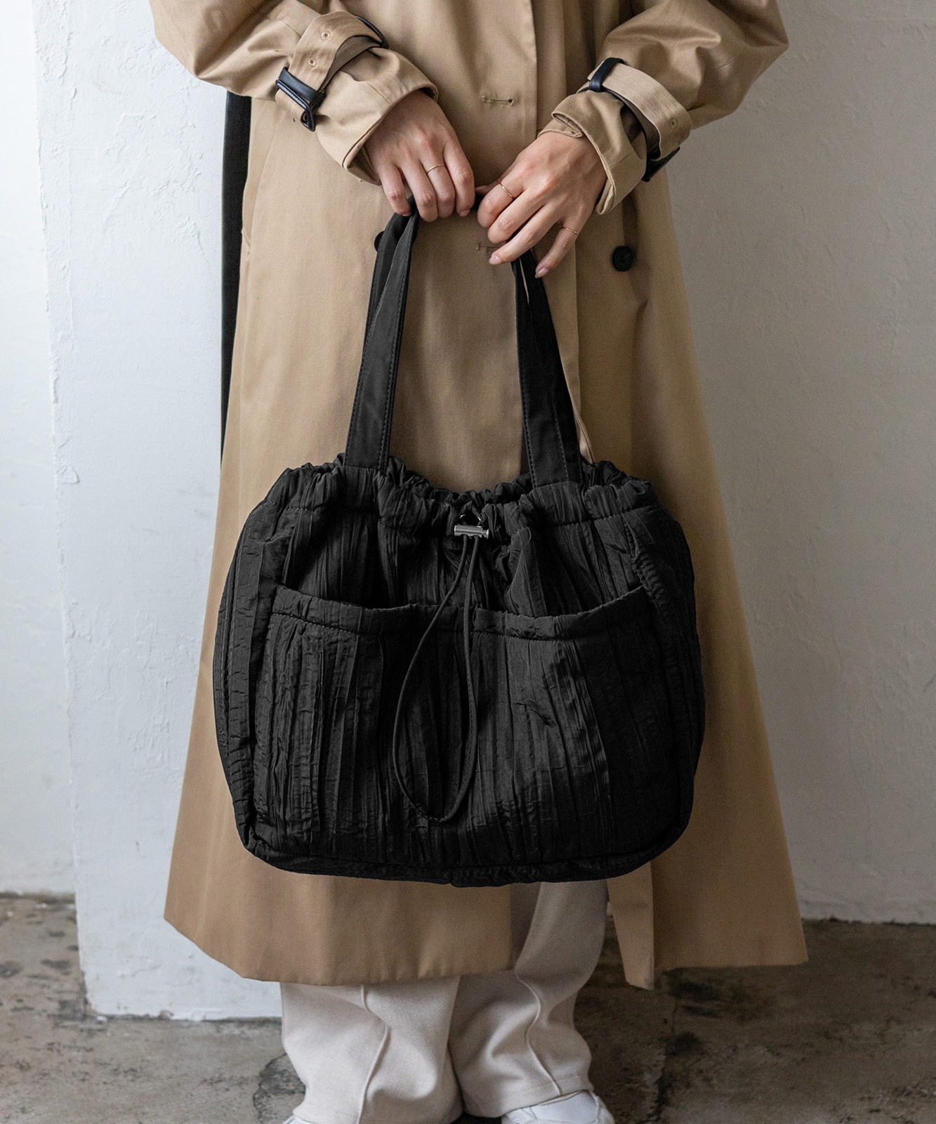 機能性と可愛さが備わった大口巾着トートバッグ。