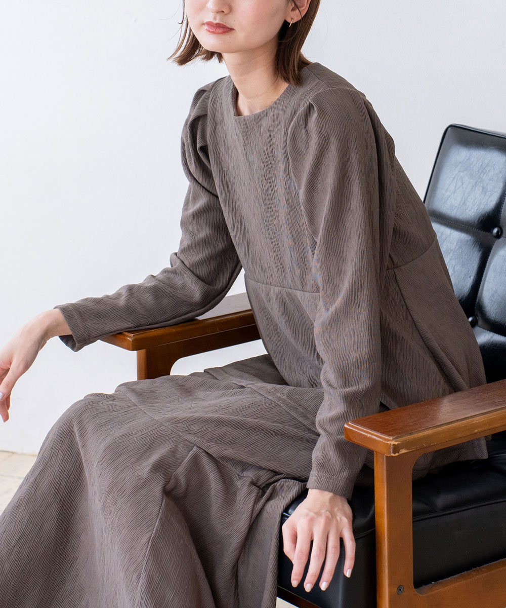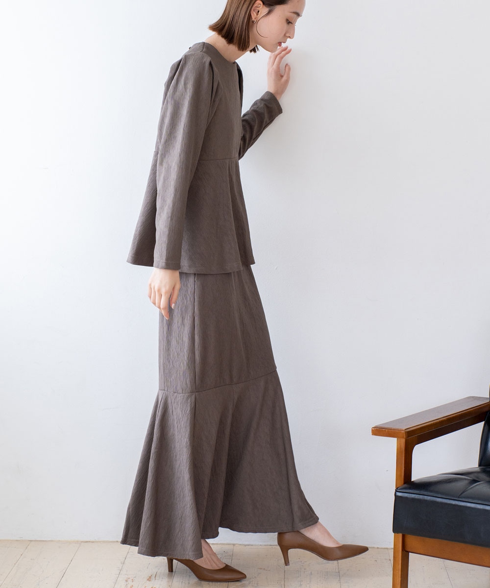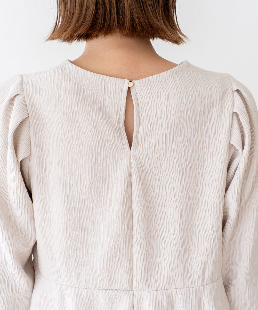 切替部分にタックを入れ、自然に広がるペプラムシルエットに