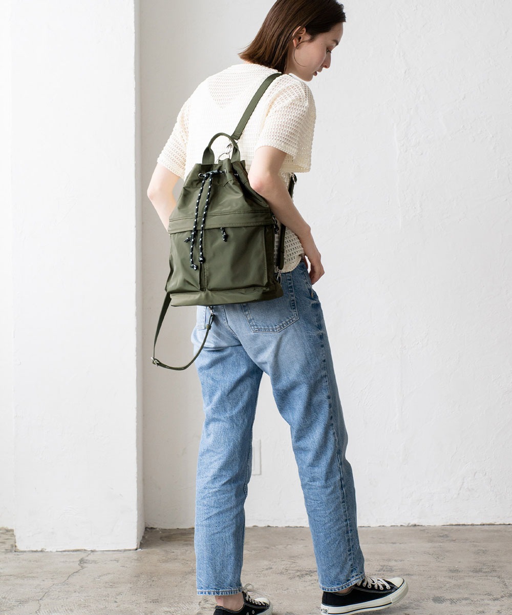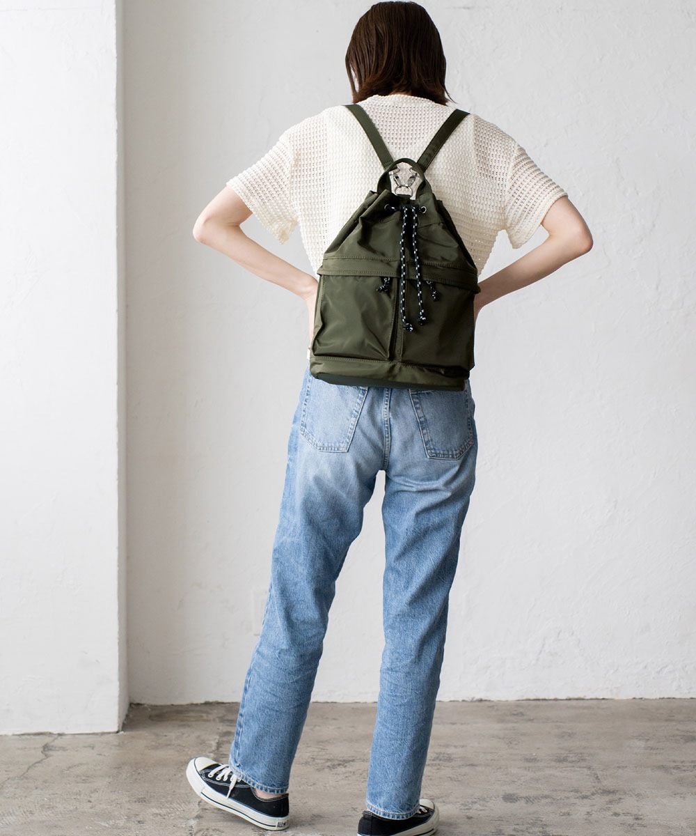 | 仕様 | 2way(ワンショルダー、リュック) ※背面にメイン収納に繋がるファスナー付き |