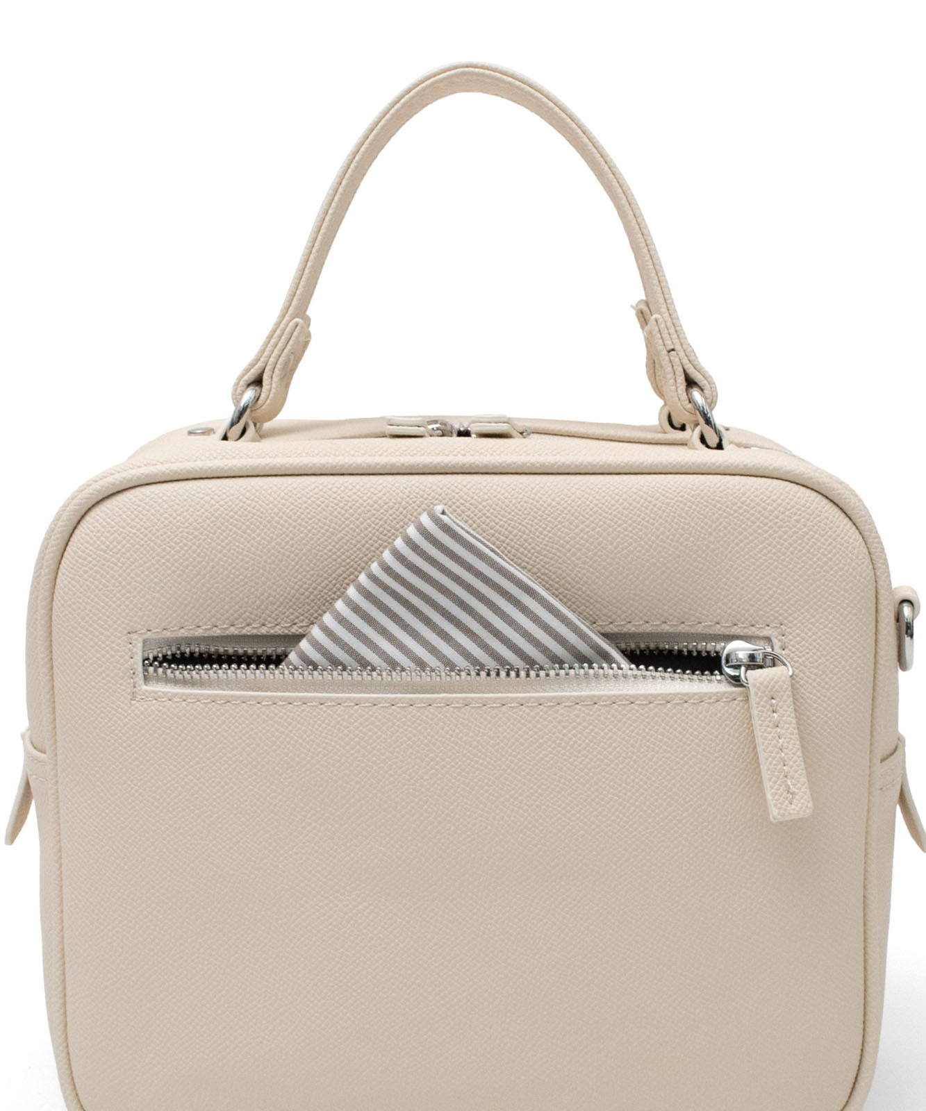 | ポケット | 外側:前面ファスナー付きポケット1、背面マグネット付きポケット1 内側:オープンポケット1、ファスナー付きポケット1 |
