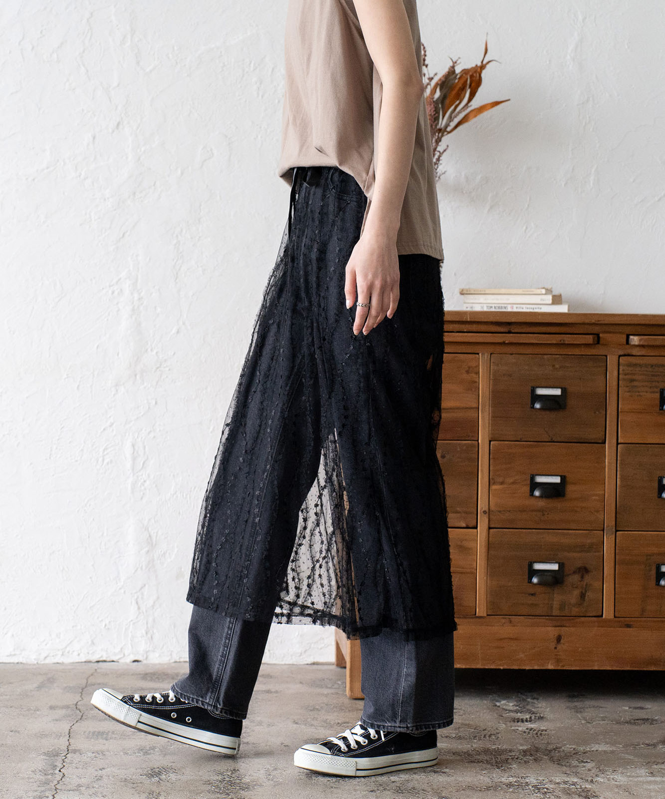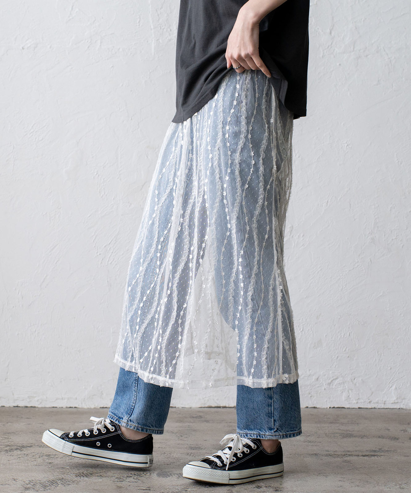 透け感のあるシアー素材でレイヤードコーデにぴったりなシアースカート。