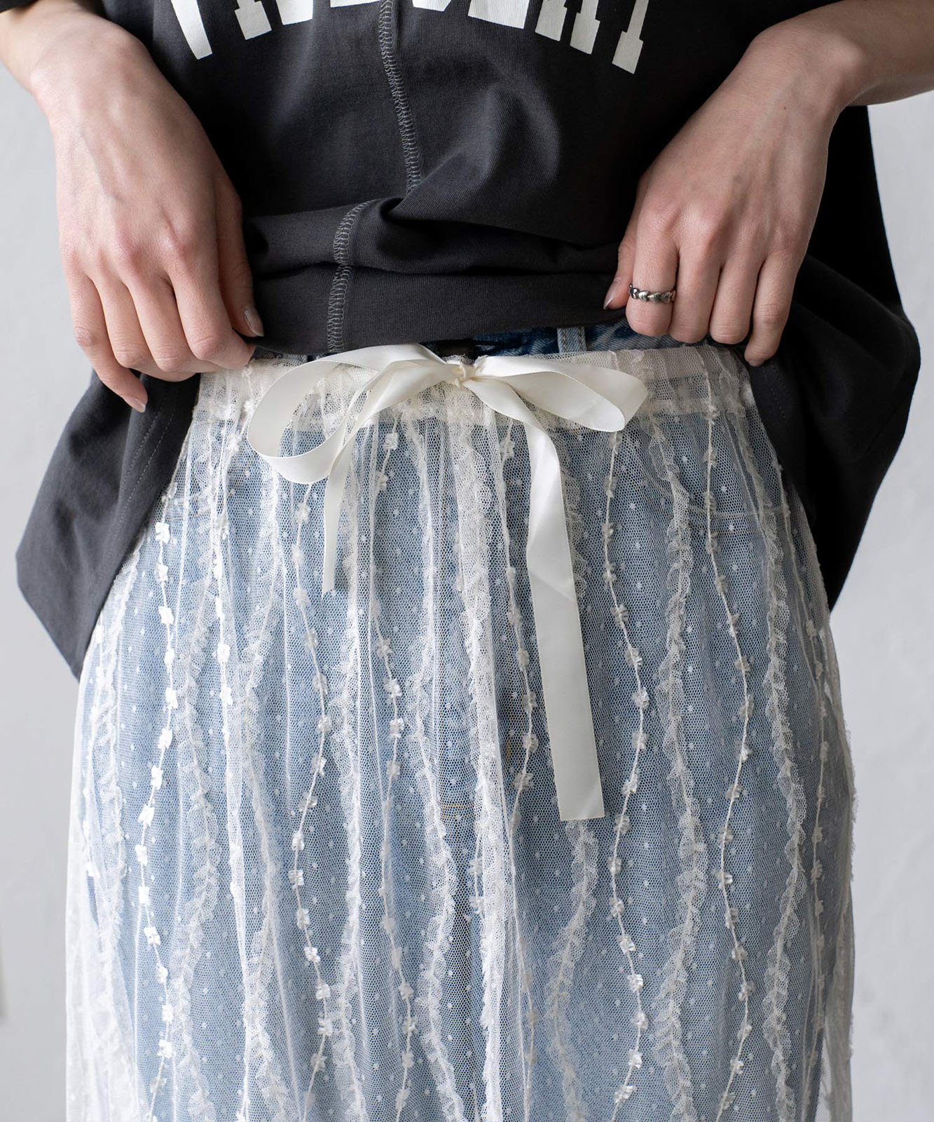 チュール特有の透け感のあるシアー素材なので、軽やかに可愛らしく着用できます。