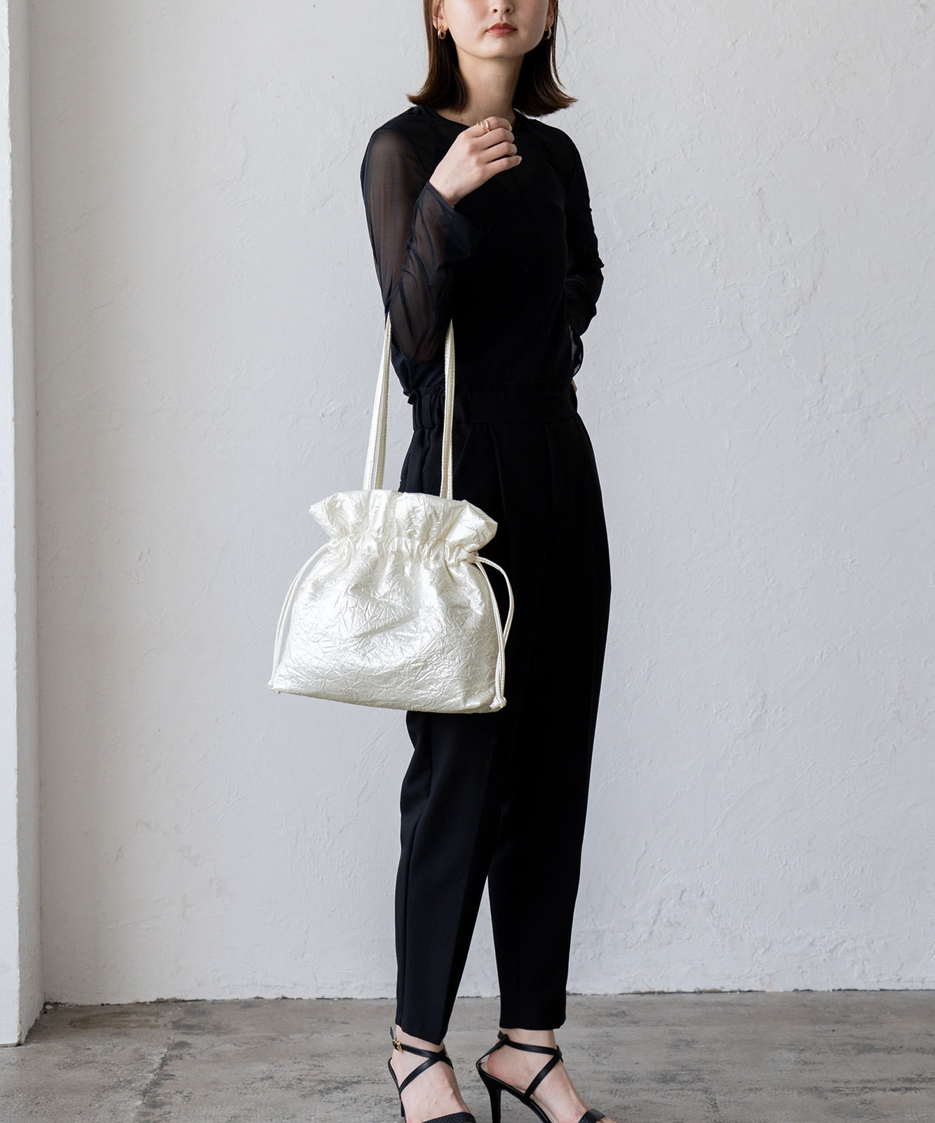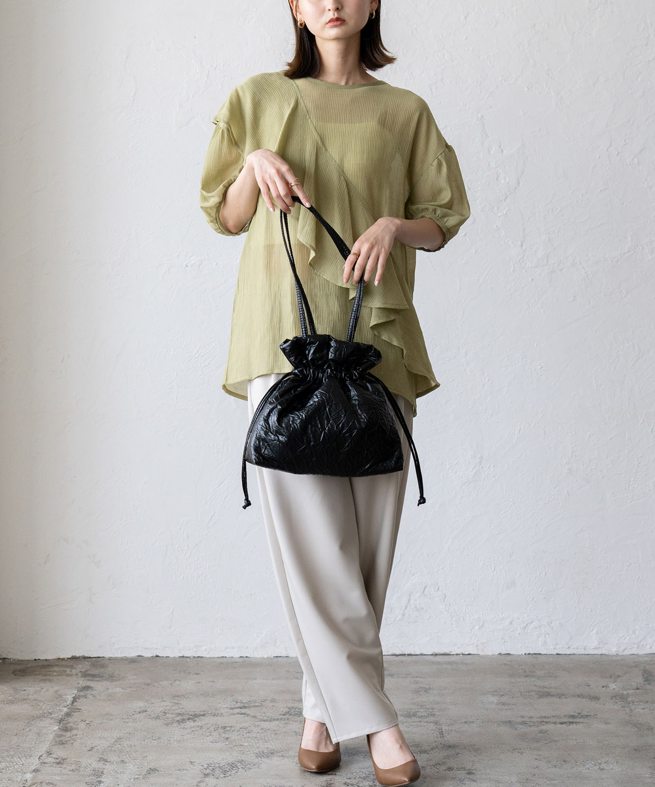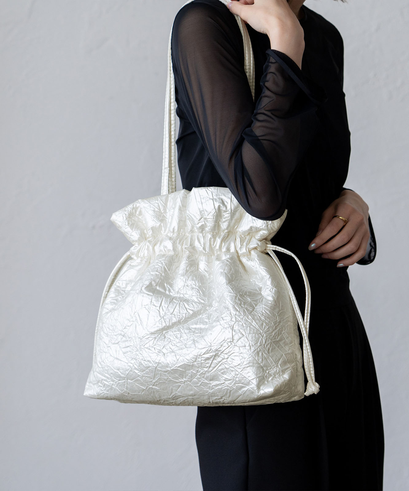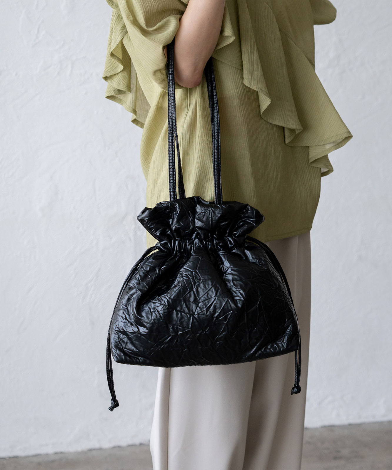 シワ加工を施した生地を使用した遊び心溢れるバッグ。