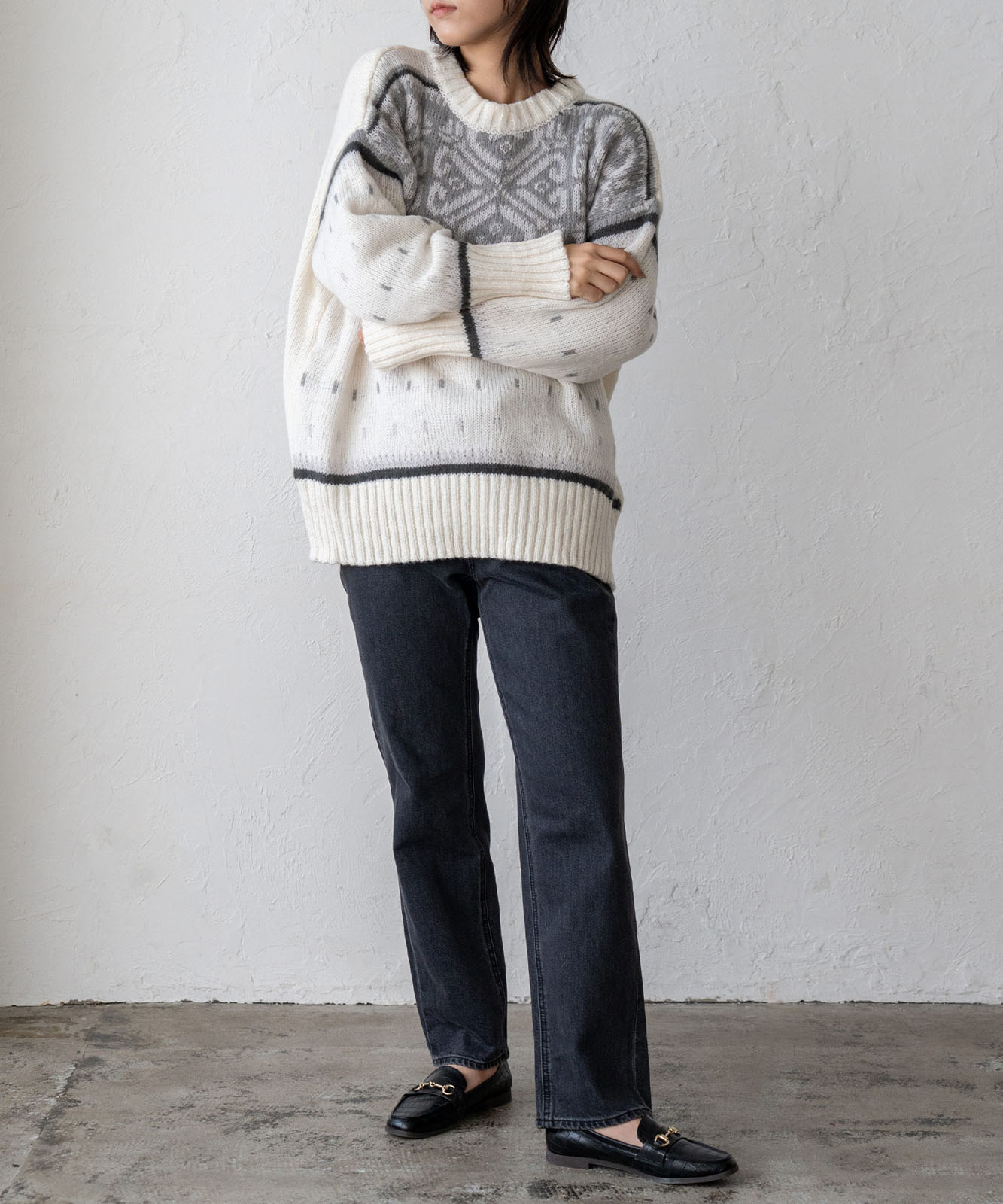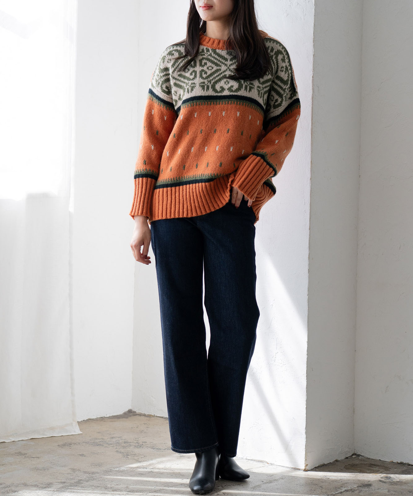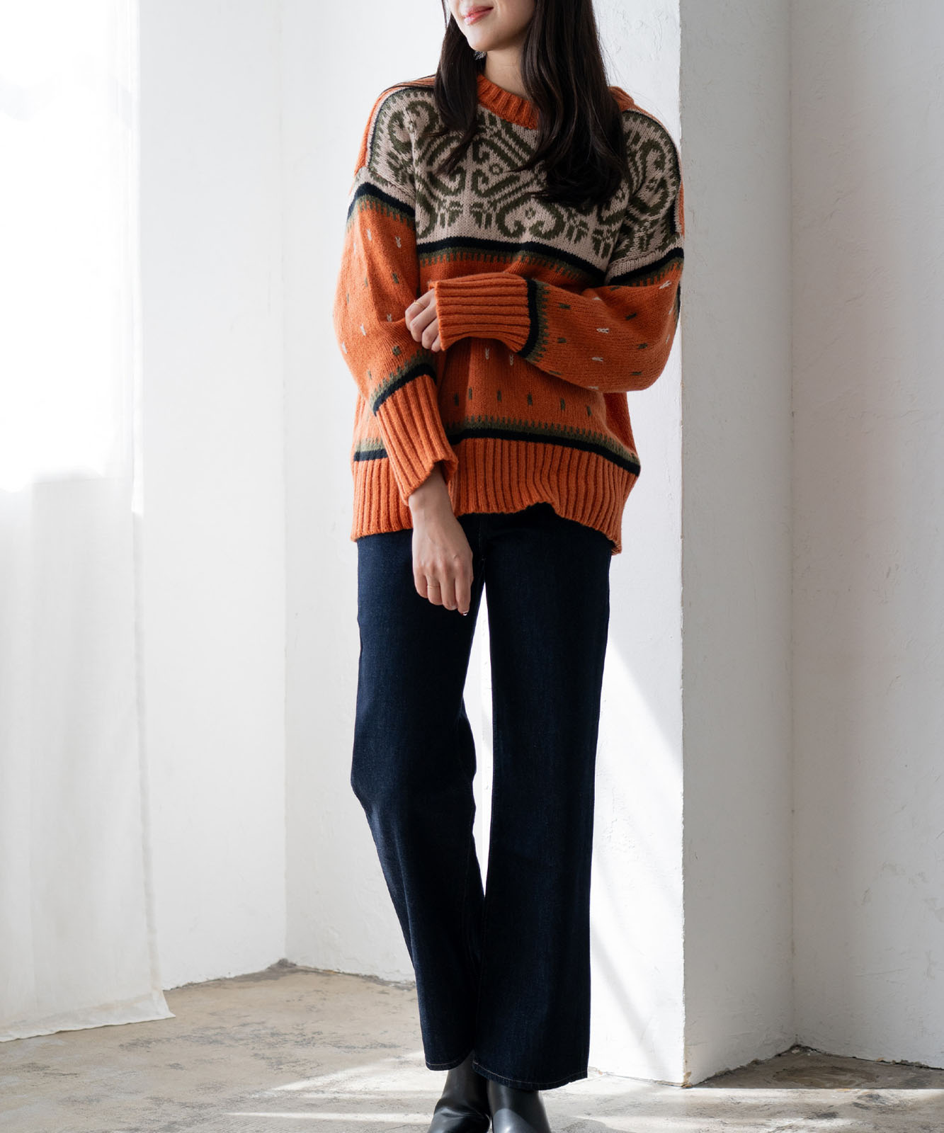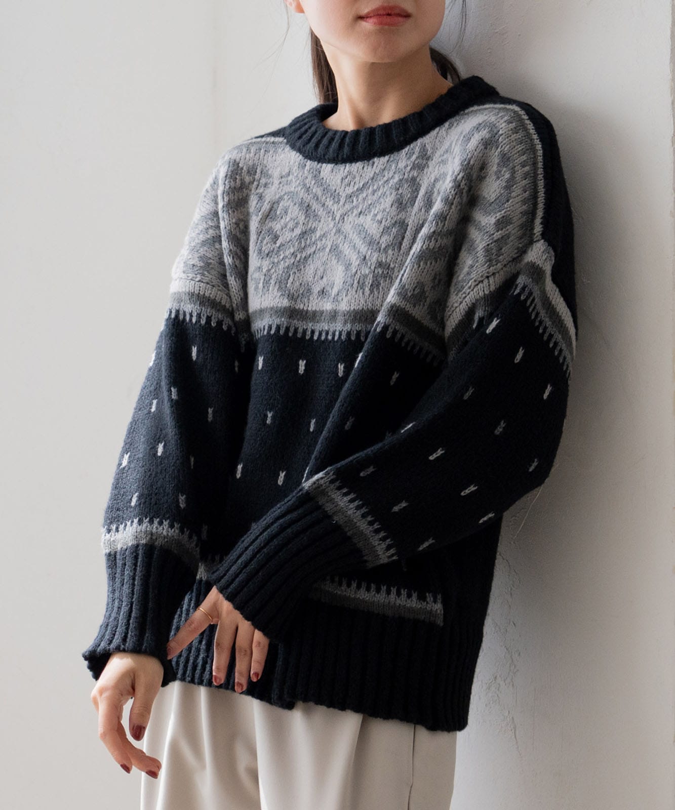 シーズンムードにぴったりのルディック柄で、温かみがあふれる1着。