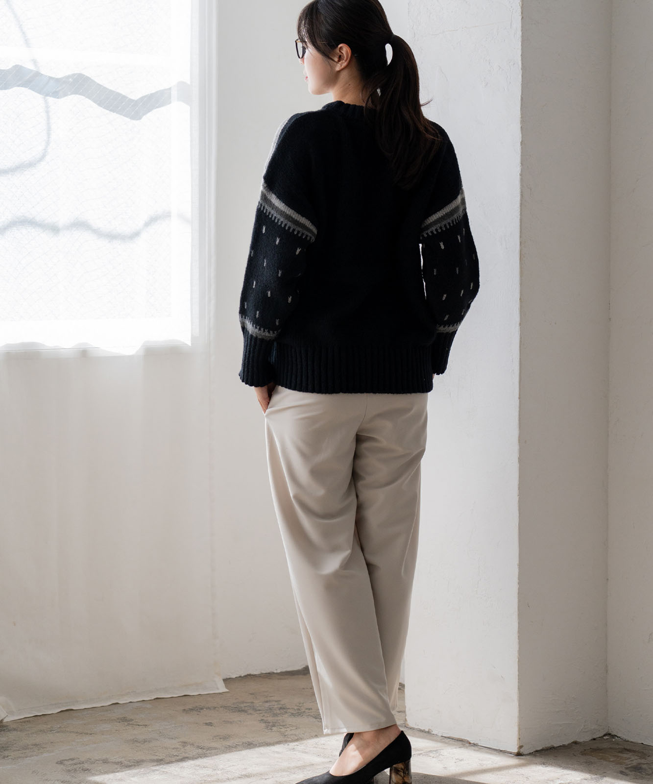 | 特徴 | 伸縮性:あり 裏地:なし 透け感:なし 生地の厚さ:普通 ポケット:なし |