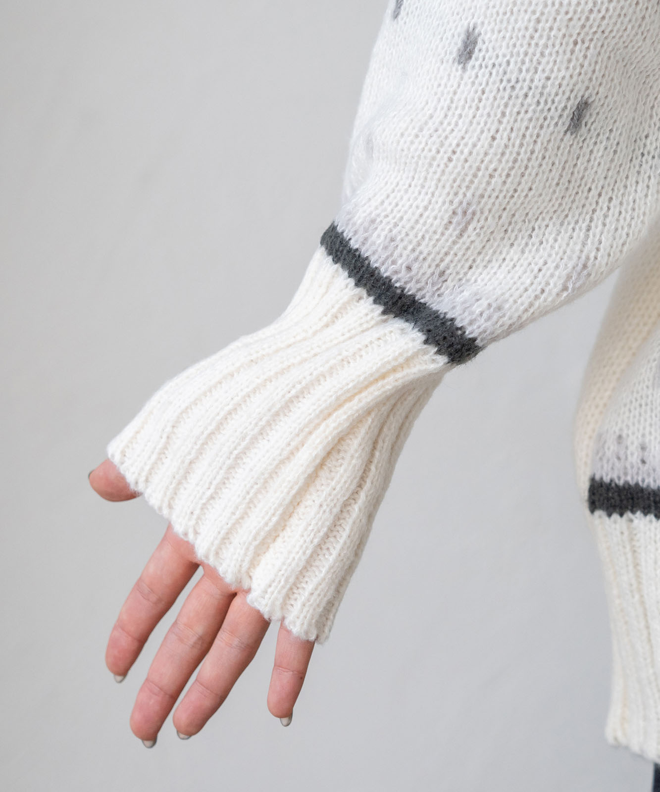 ※糸、編地の性質上着用の際、髪留めや指輪等の装飾品または爪等に引っかかりやすい為、充分ご注意ください。