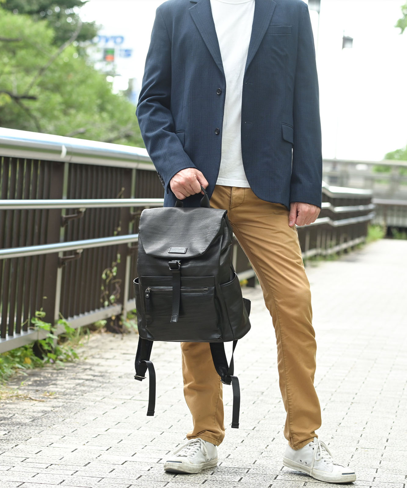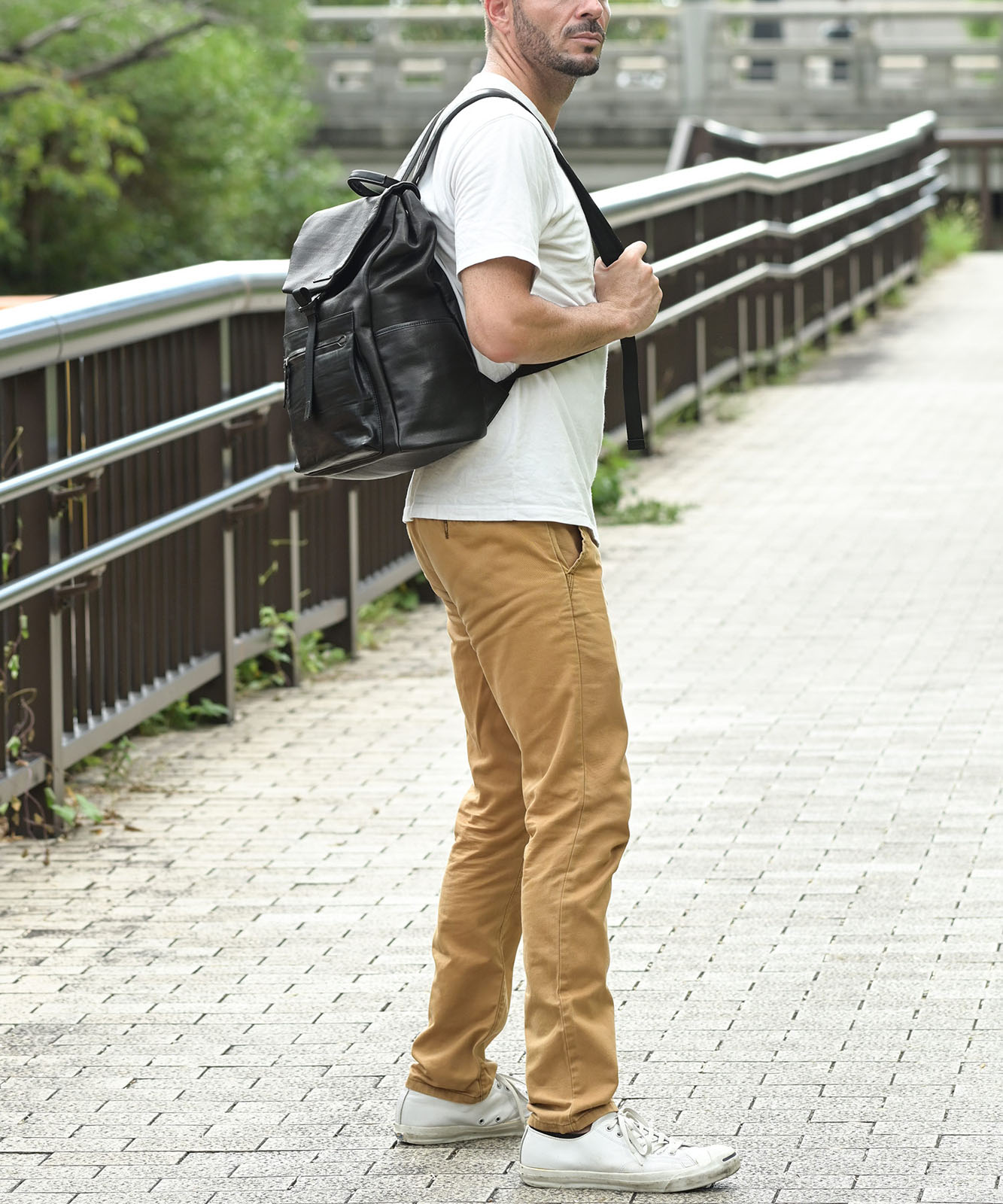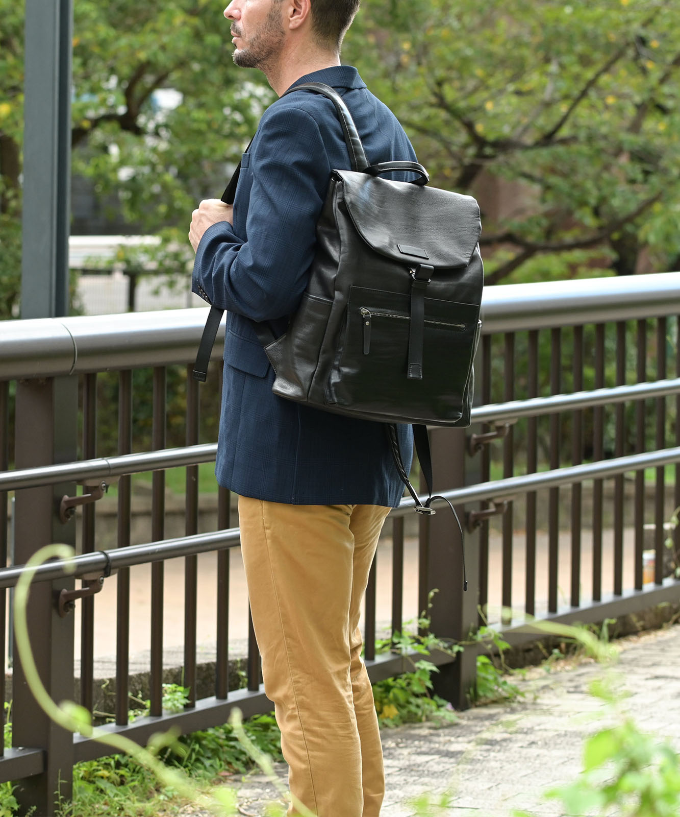 カッコよく持ちたい大人の男性のための、オールレザーリュックです。