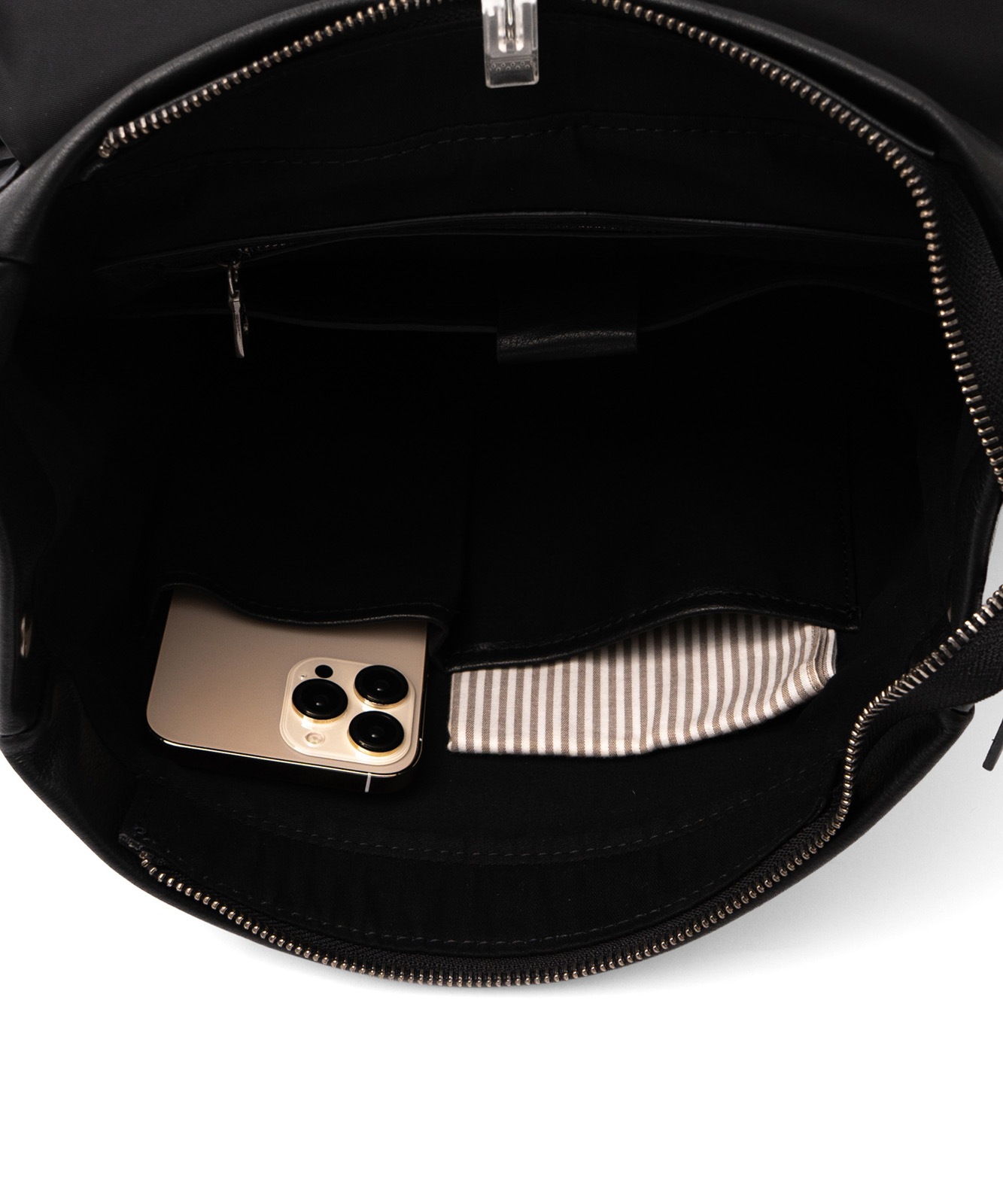 | ポケット | 外側:前面マグネット付きポケット1、前面ファスナー付きポケット1、側面オープンポケット2、背面ファスナー付きポケット1 内側:オープンポケット3、ファスナー付きポケット1 |