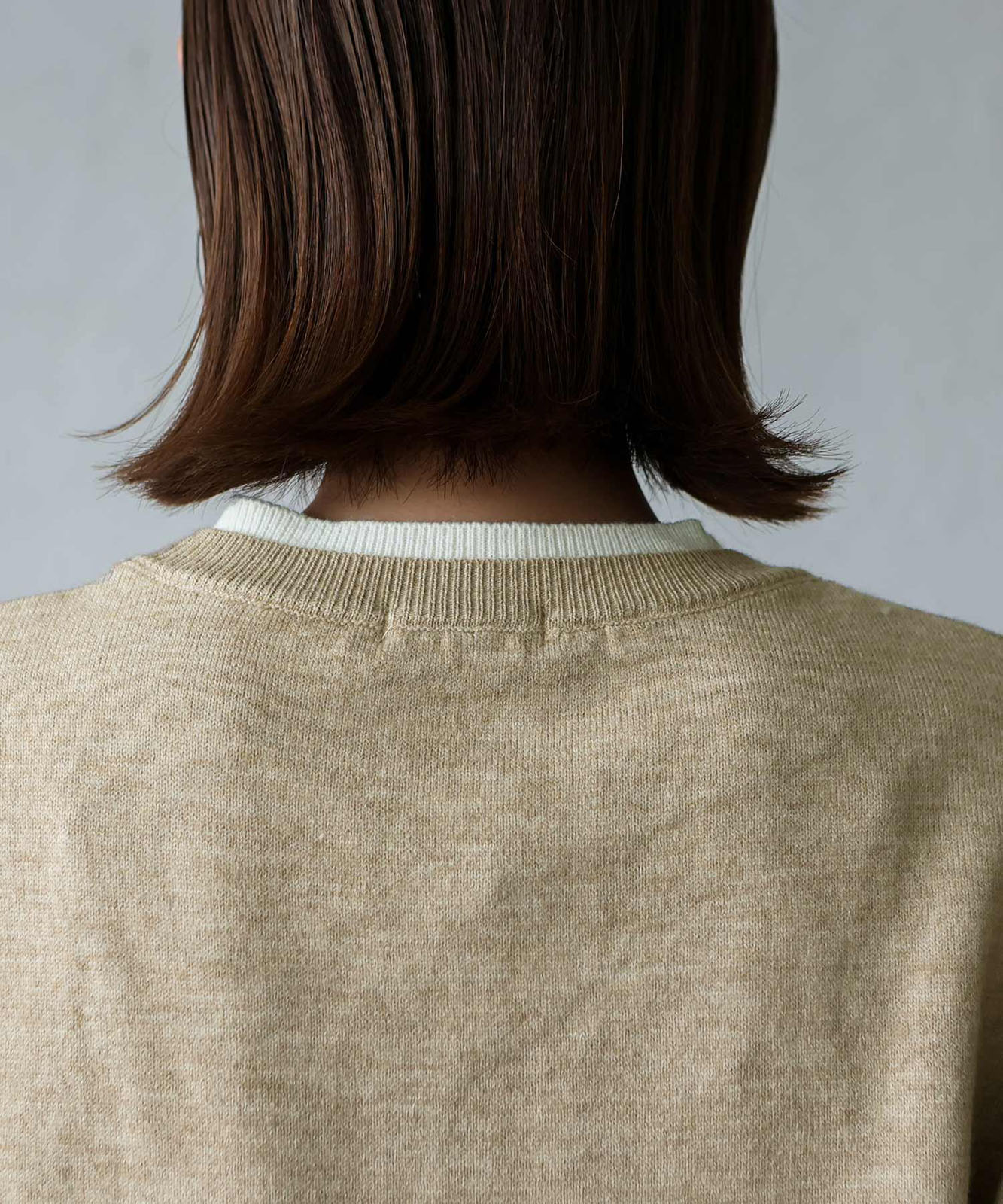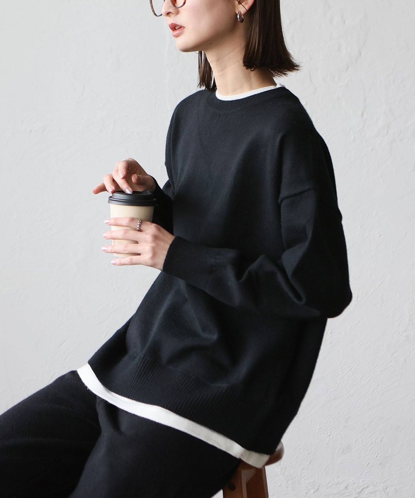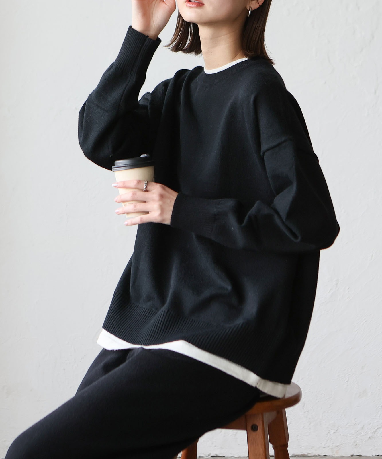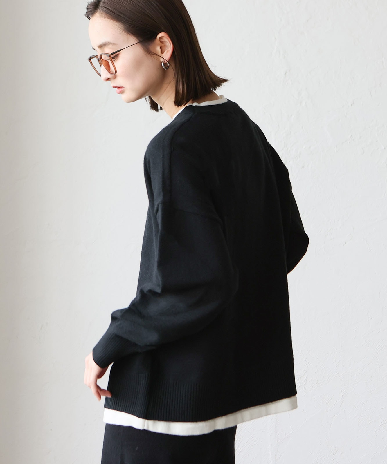 首元と裾部分がレイヤード風のデザインになったトップス、