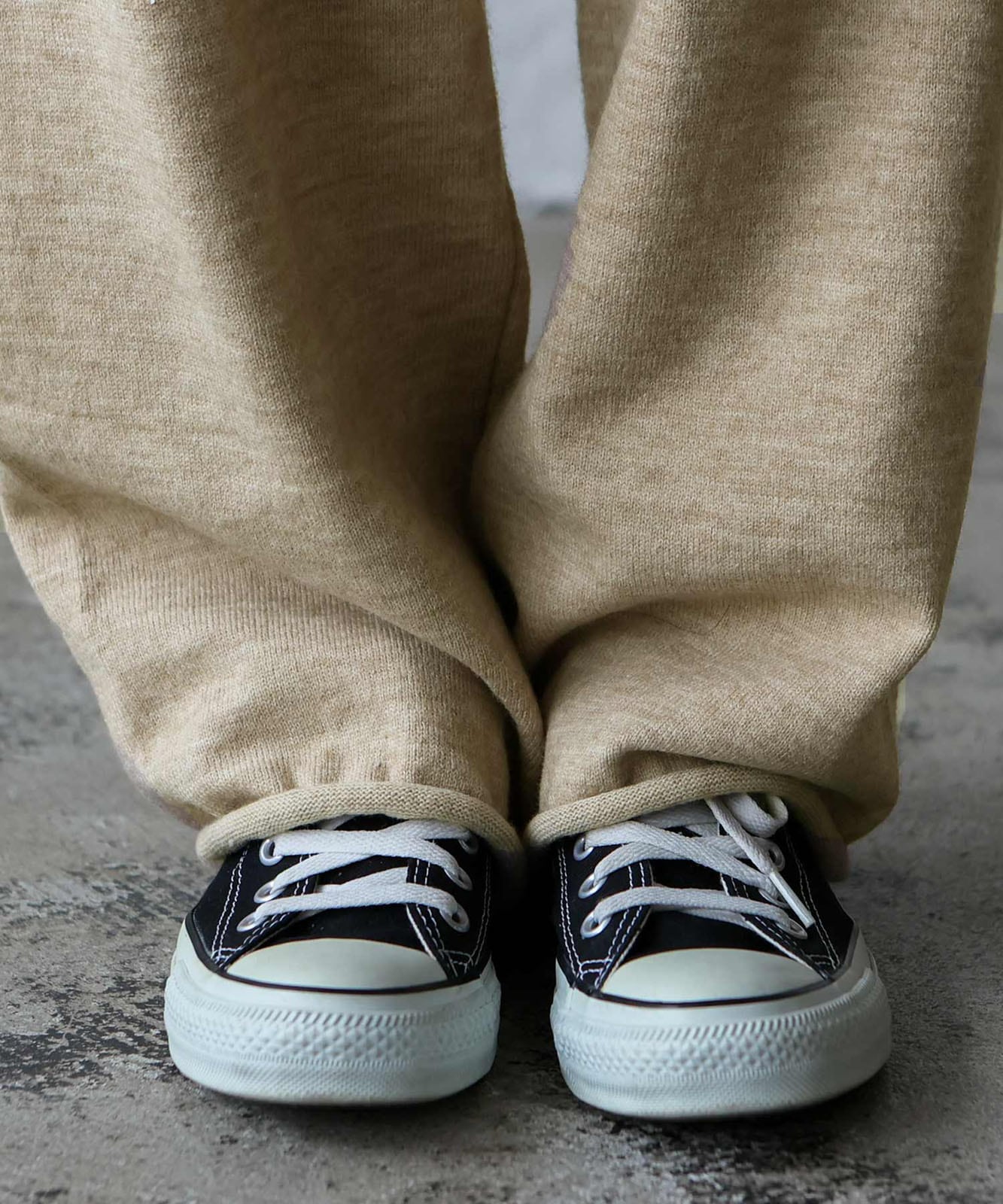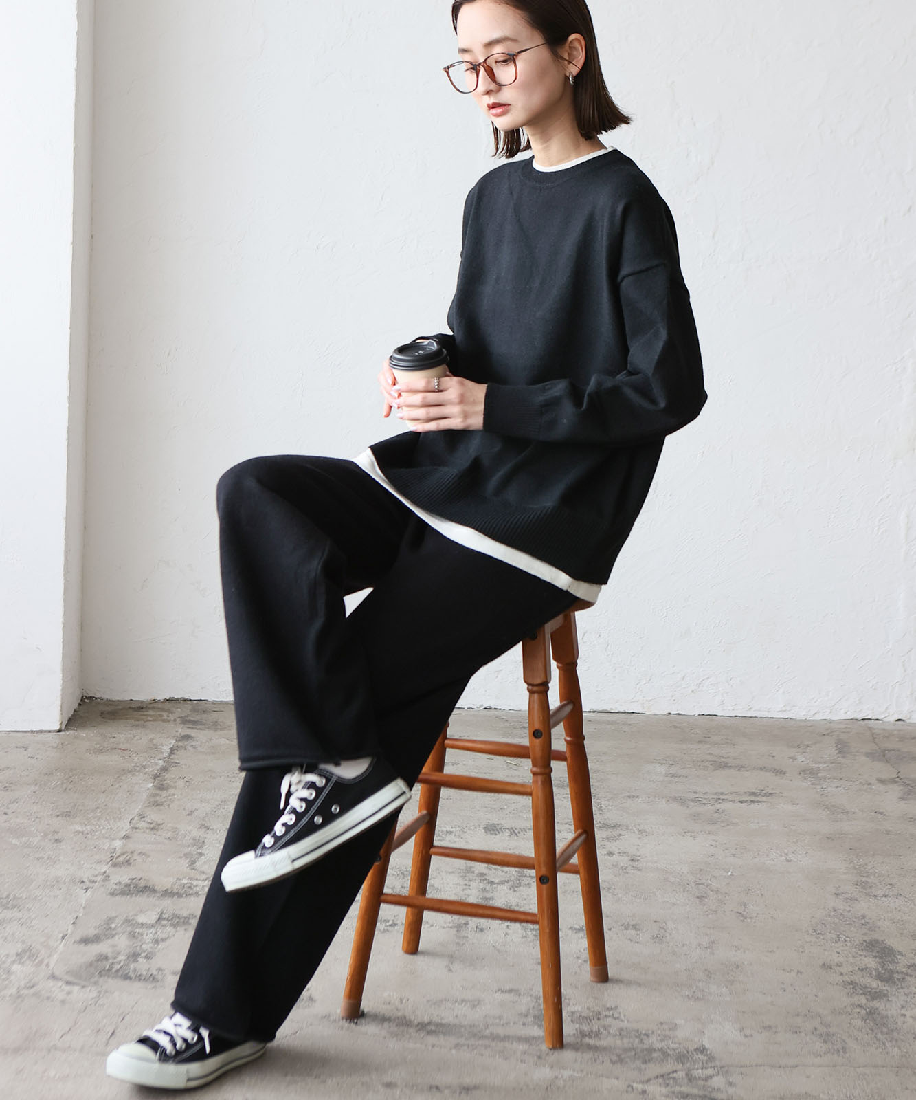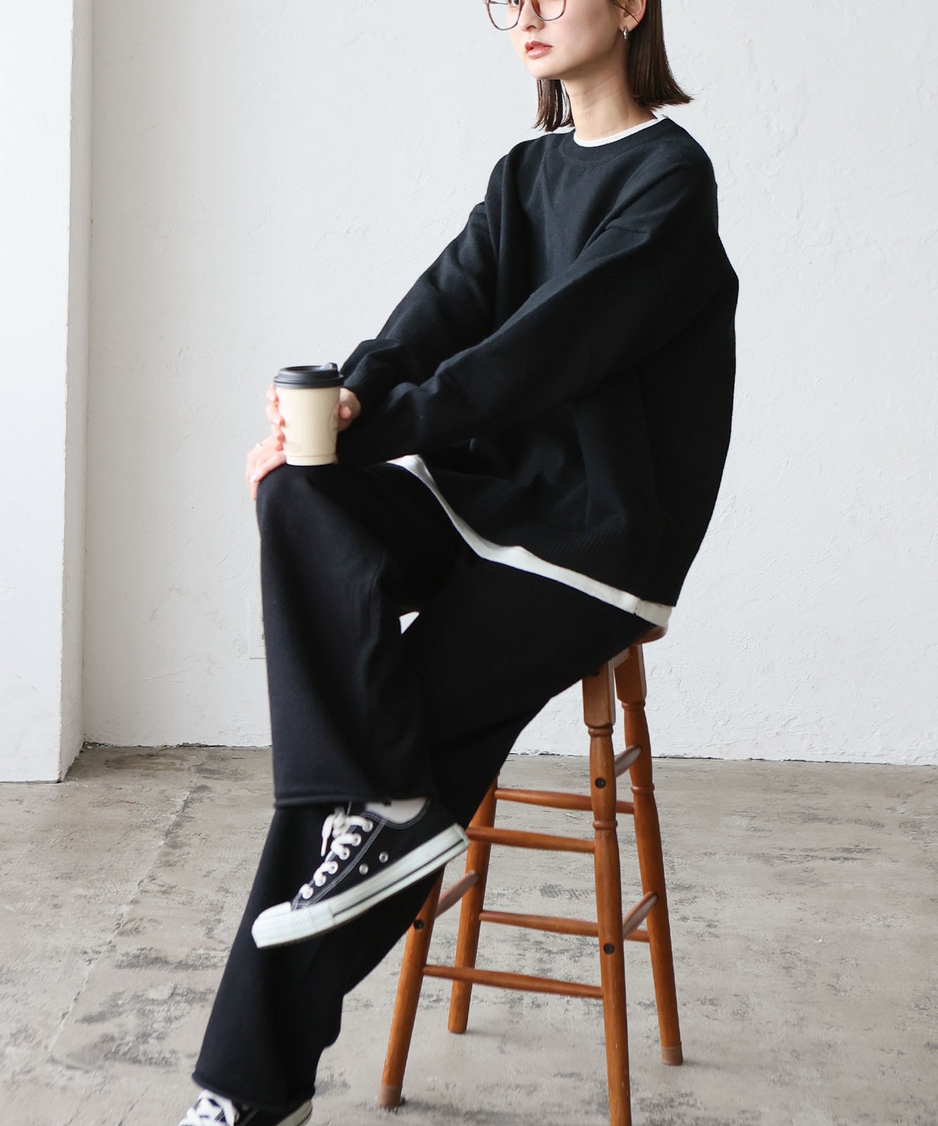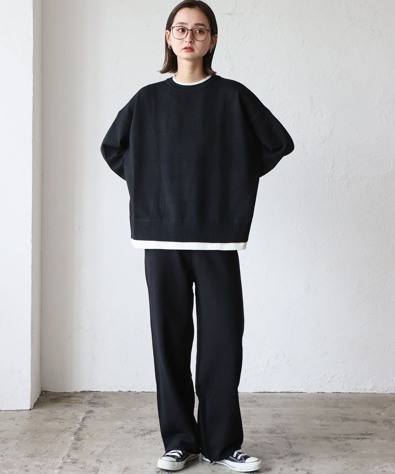 太すぎずゆったり目のワイドシルエットなパンツがこなれ感と抜け感を演出。