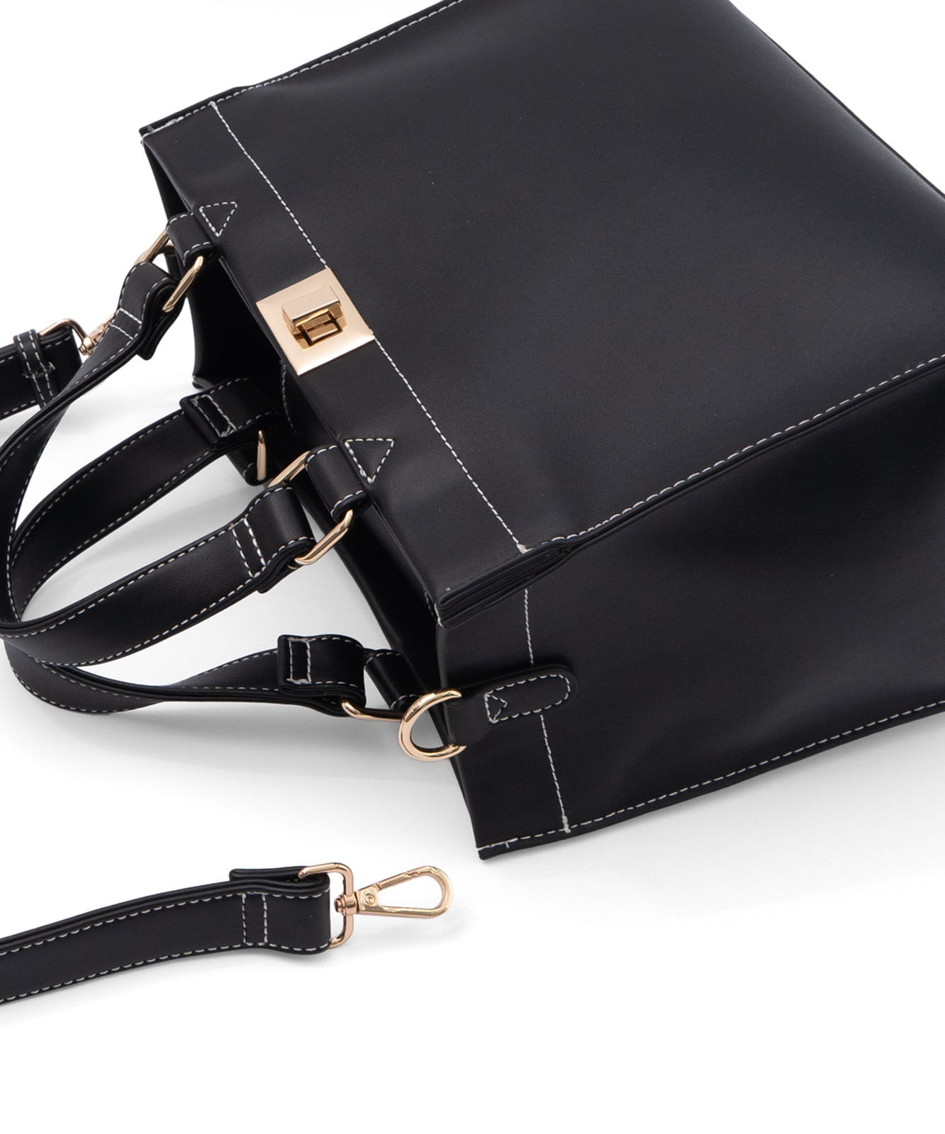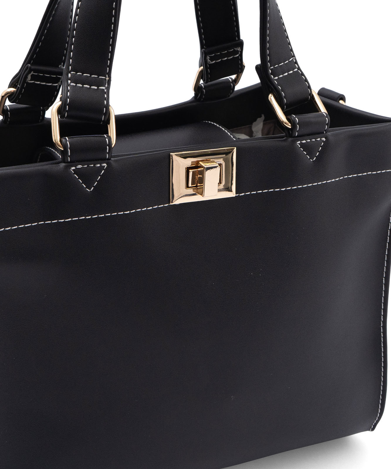 前面の回転金具が上品なアクセントに。キレイめコーデにもカジュアルスタイルにも馴染み、幅広いシーンで活躍します。
