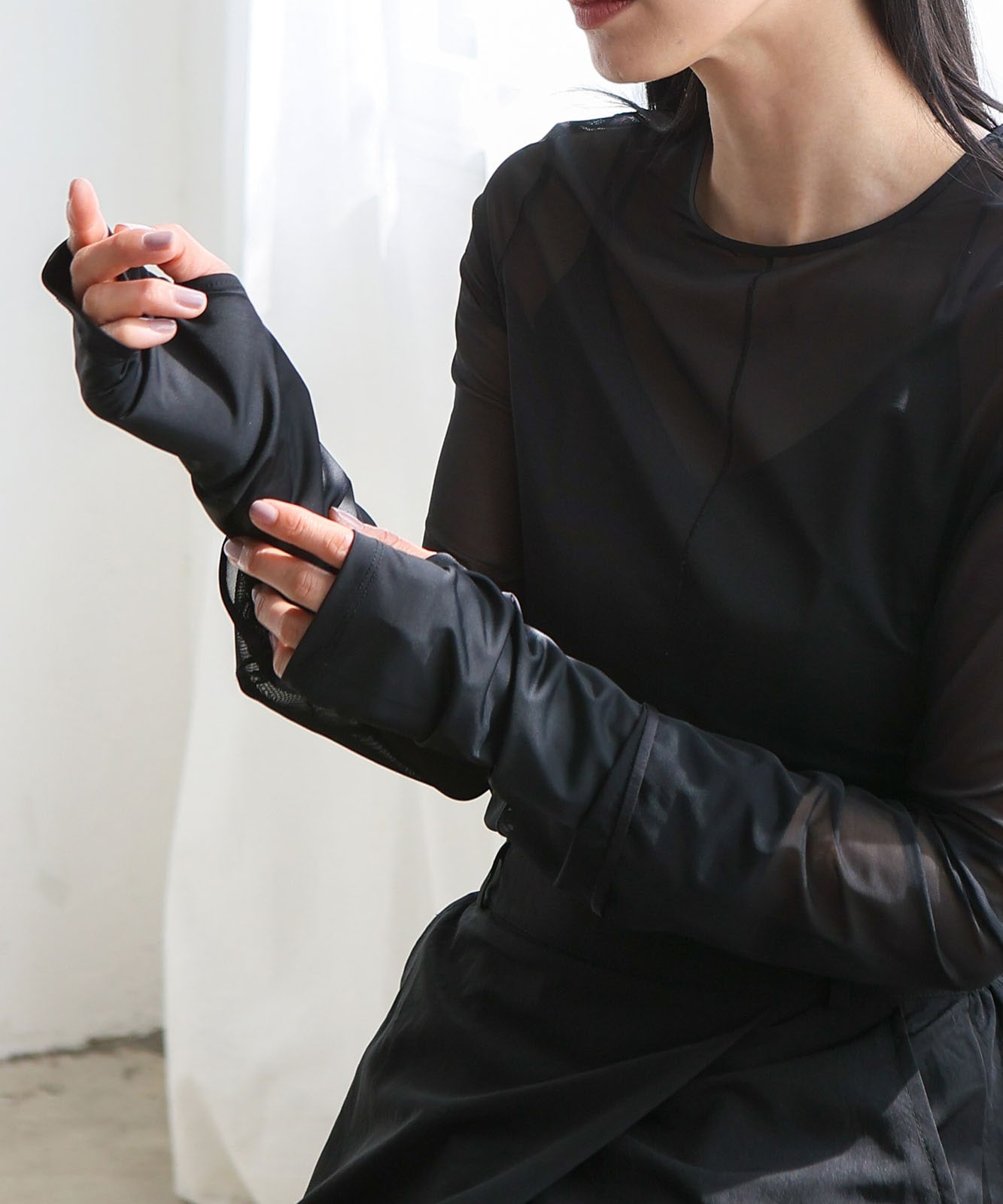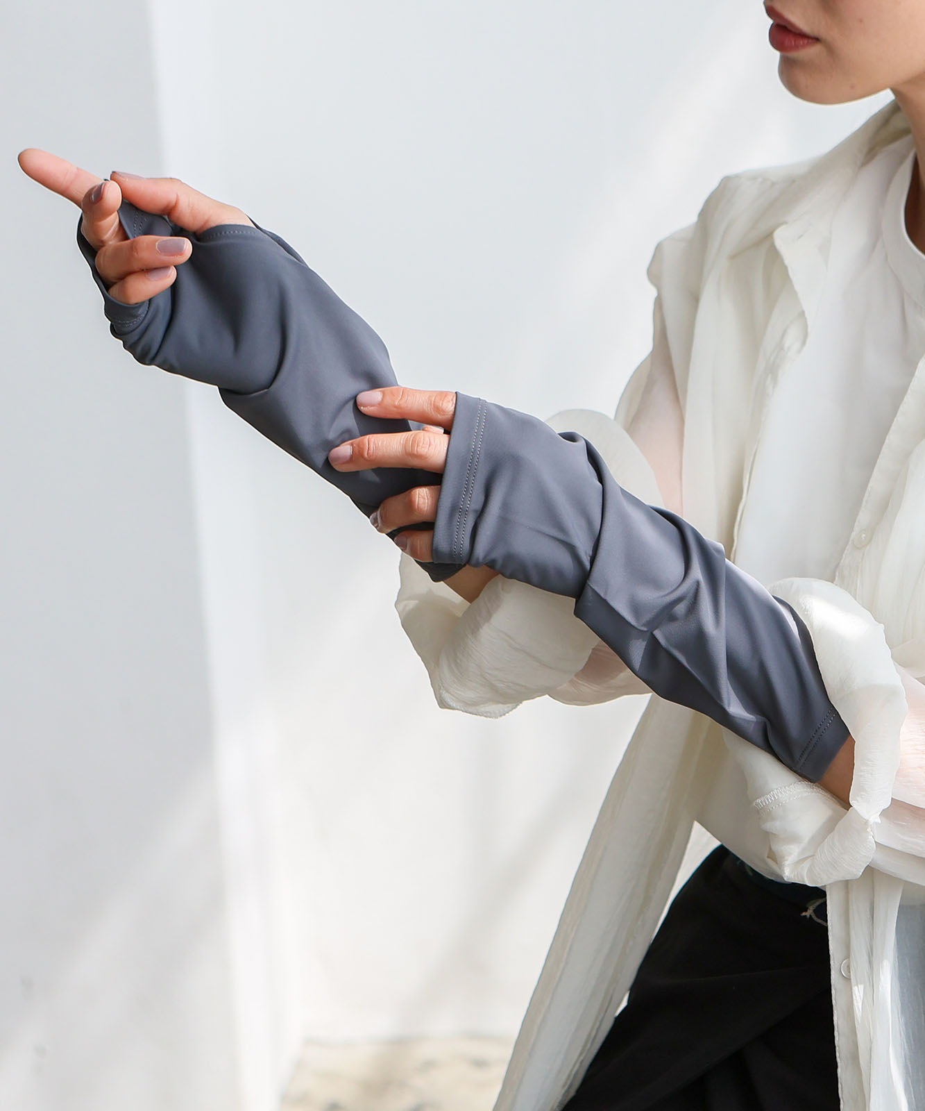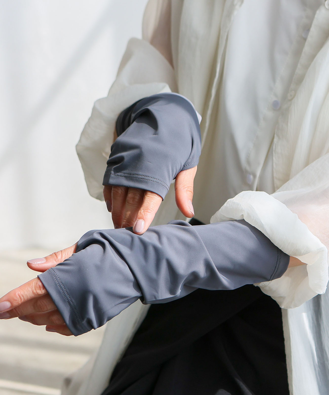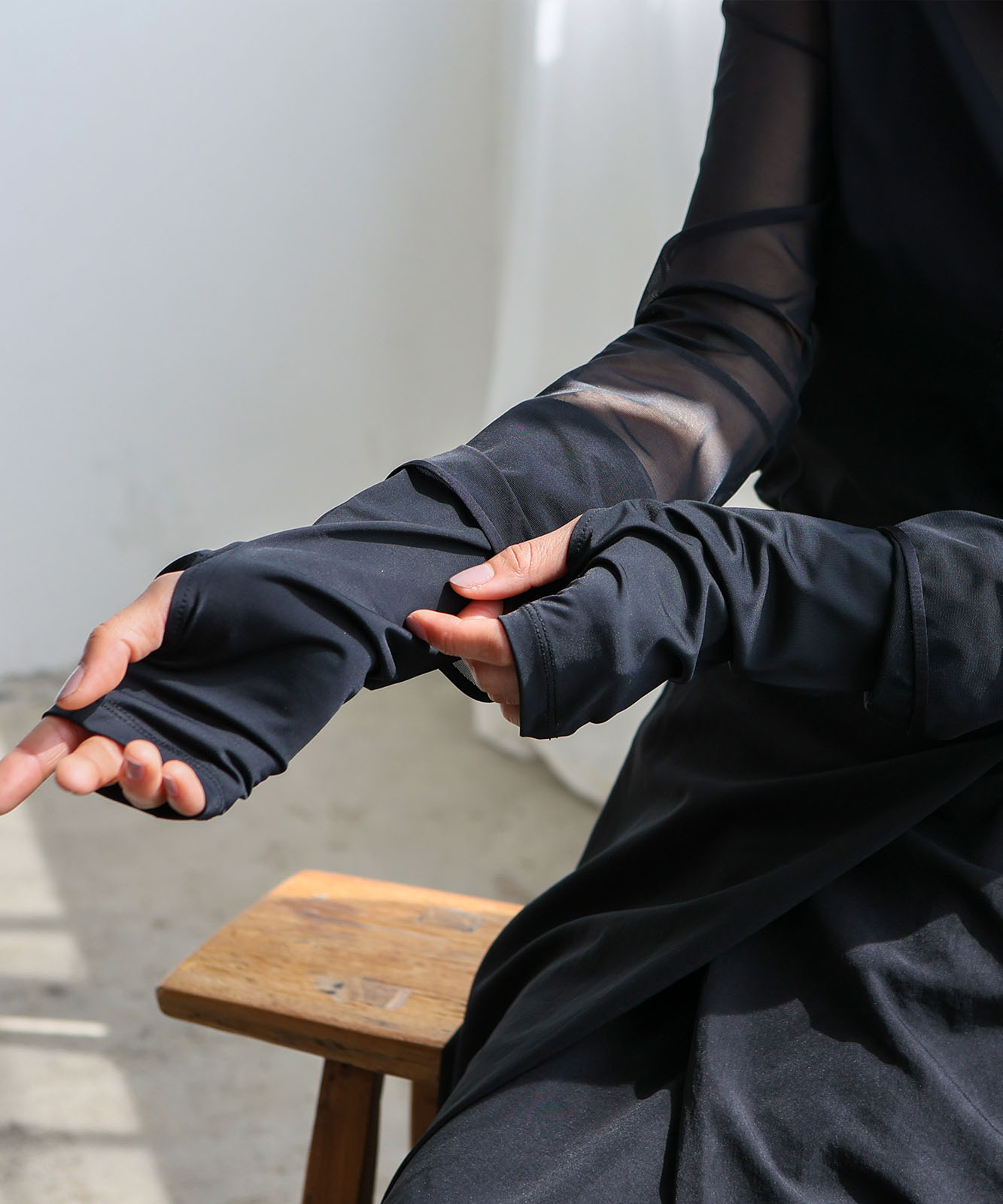手の甲までしっかりカバー。指先が出るデザインで、スマートフォンの操作も◎
