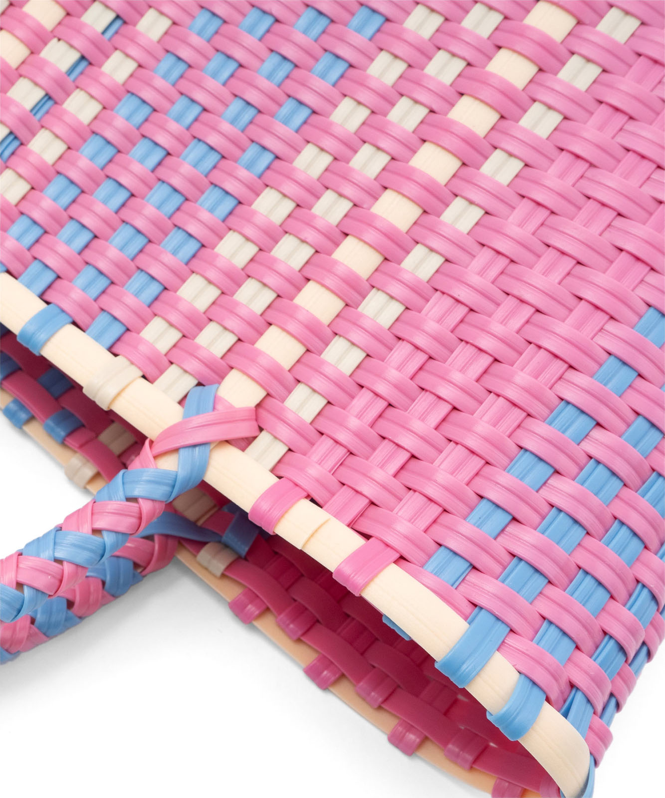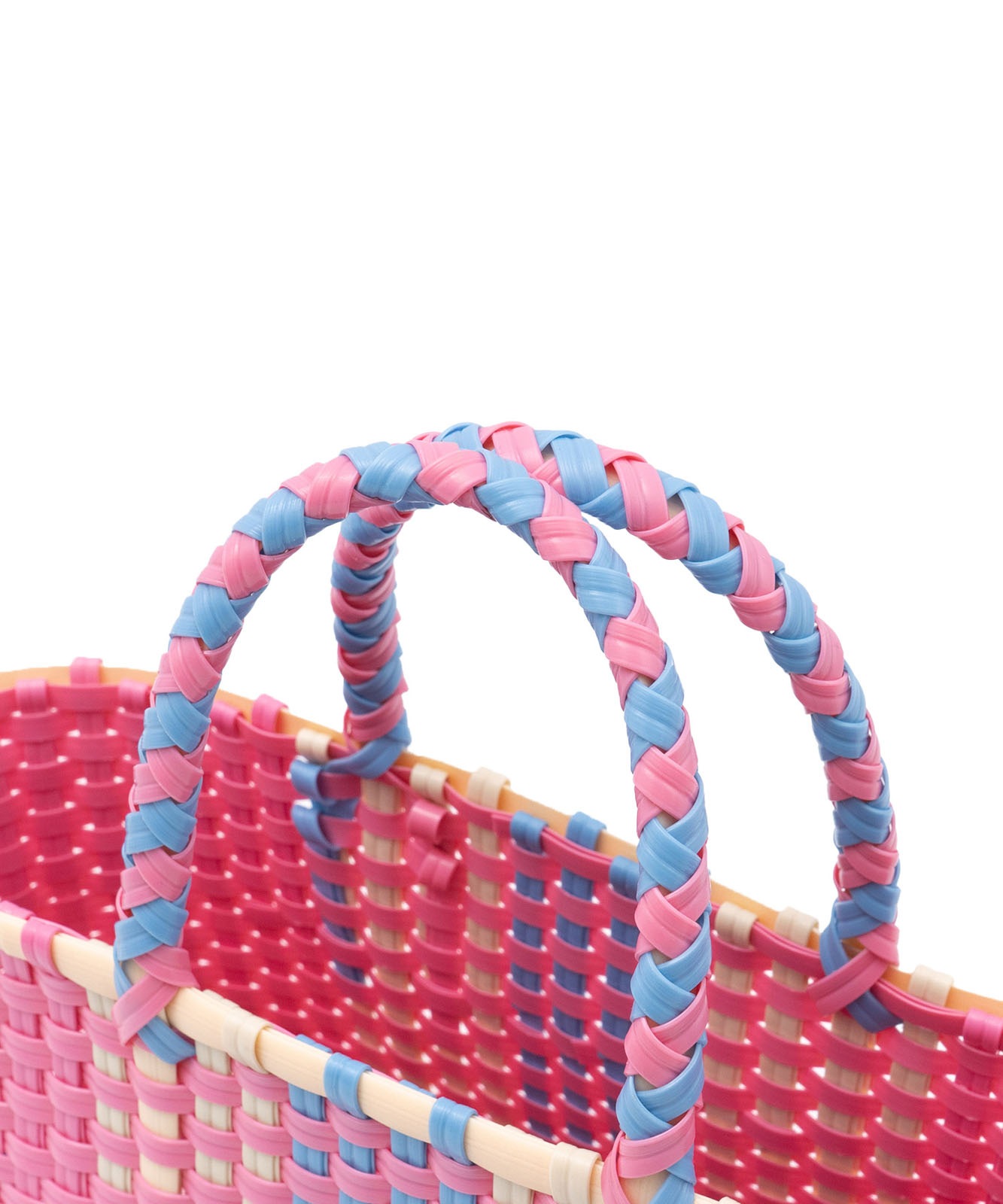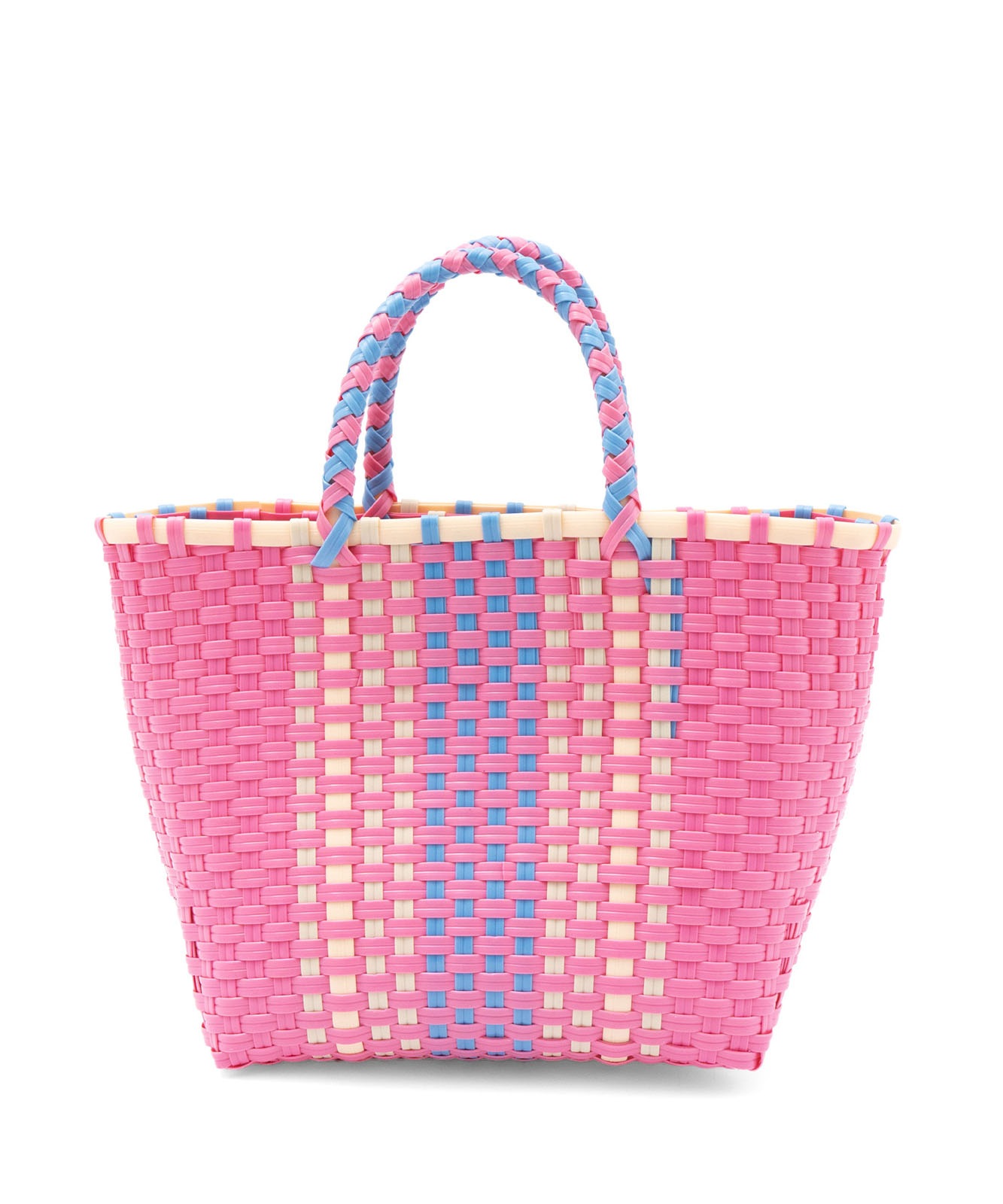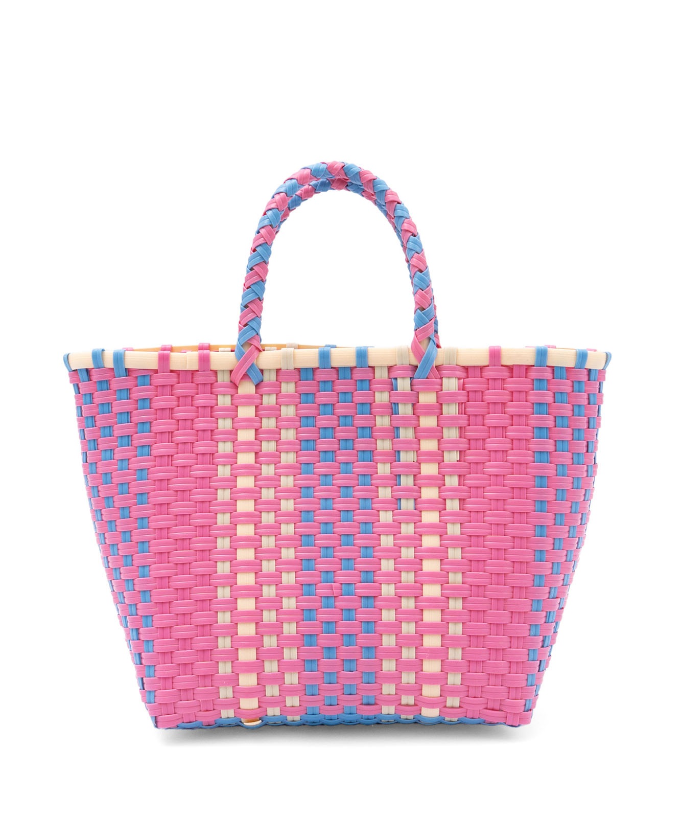 メキシコではマルシェ(お買い物)バッグを意味します。見た目もカラフルで可愛らしく、とても丈夫なのでガシガシ使える万能アイテムです。ポリプロピレン素材のテープを、ひとつひとつ手作りで作られたメキシコの手工芸品の楽しさ、美しさが魅力です。