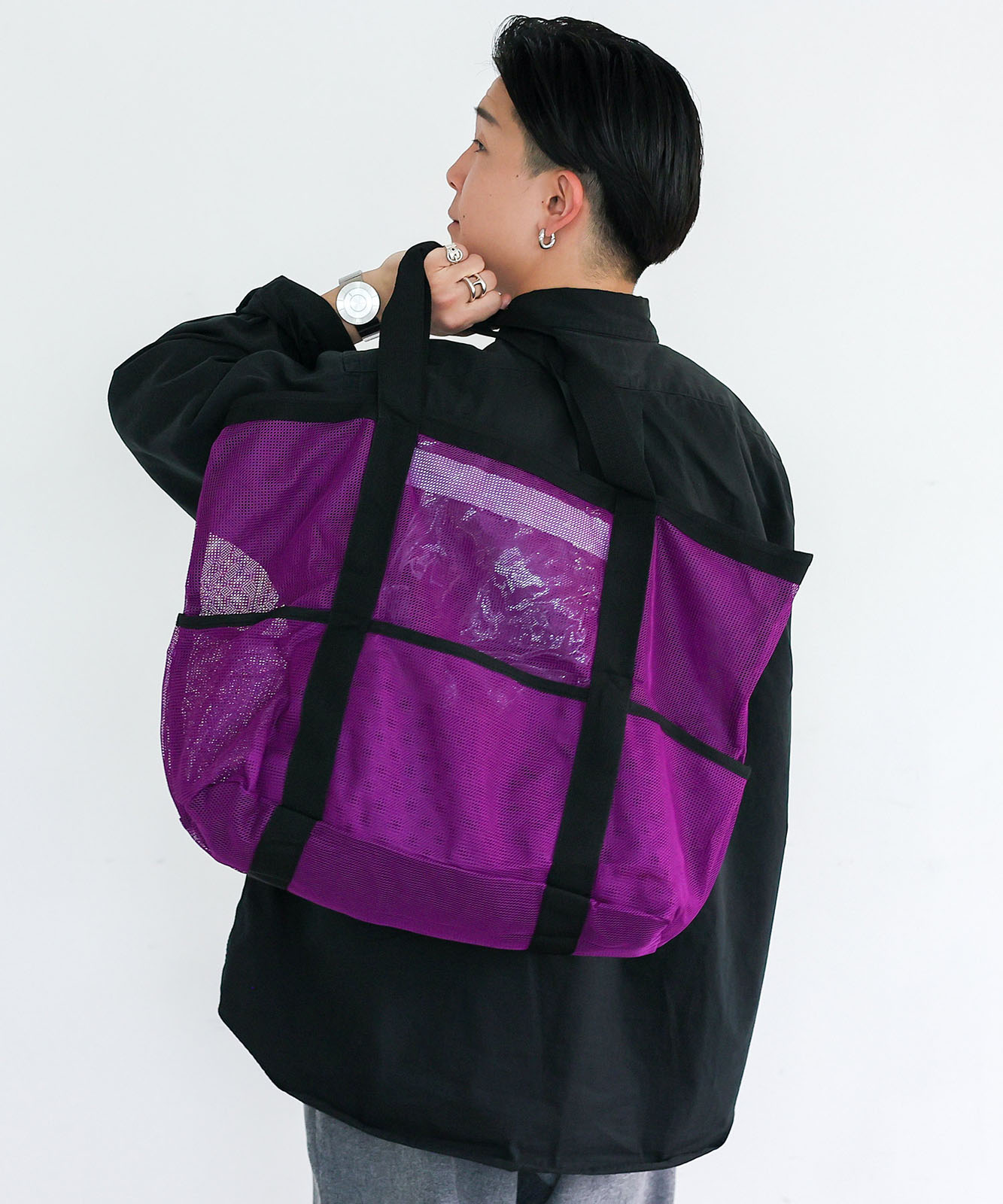 8ポケットメッシュシースルートートバッグ