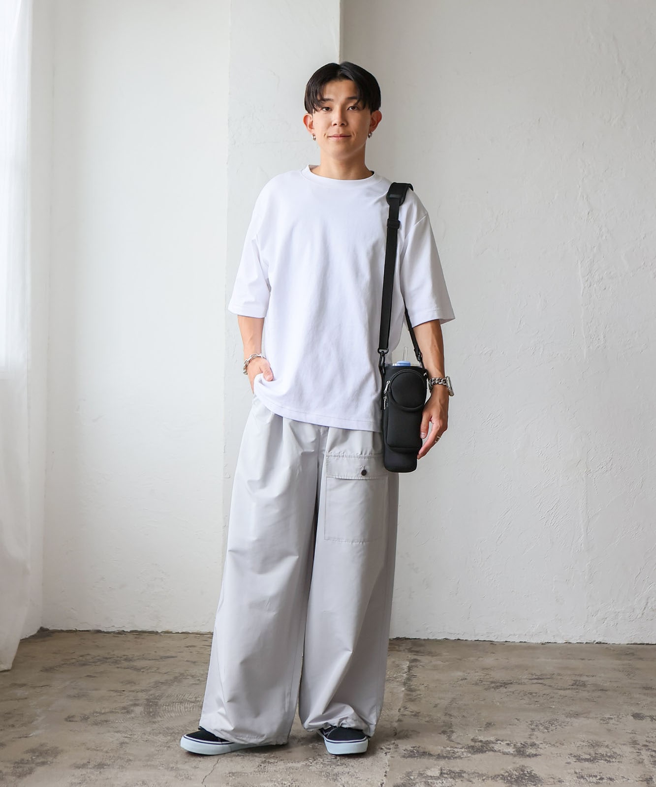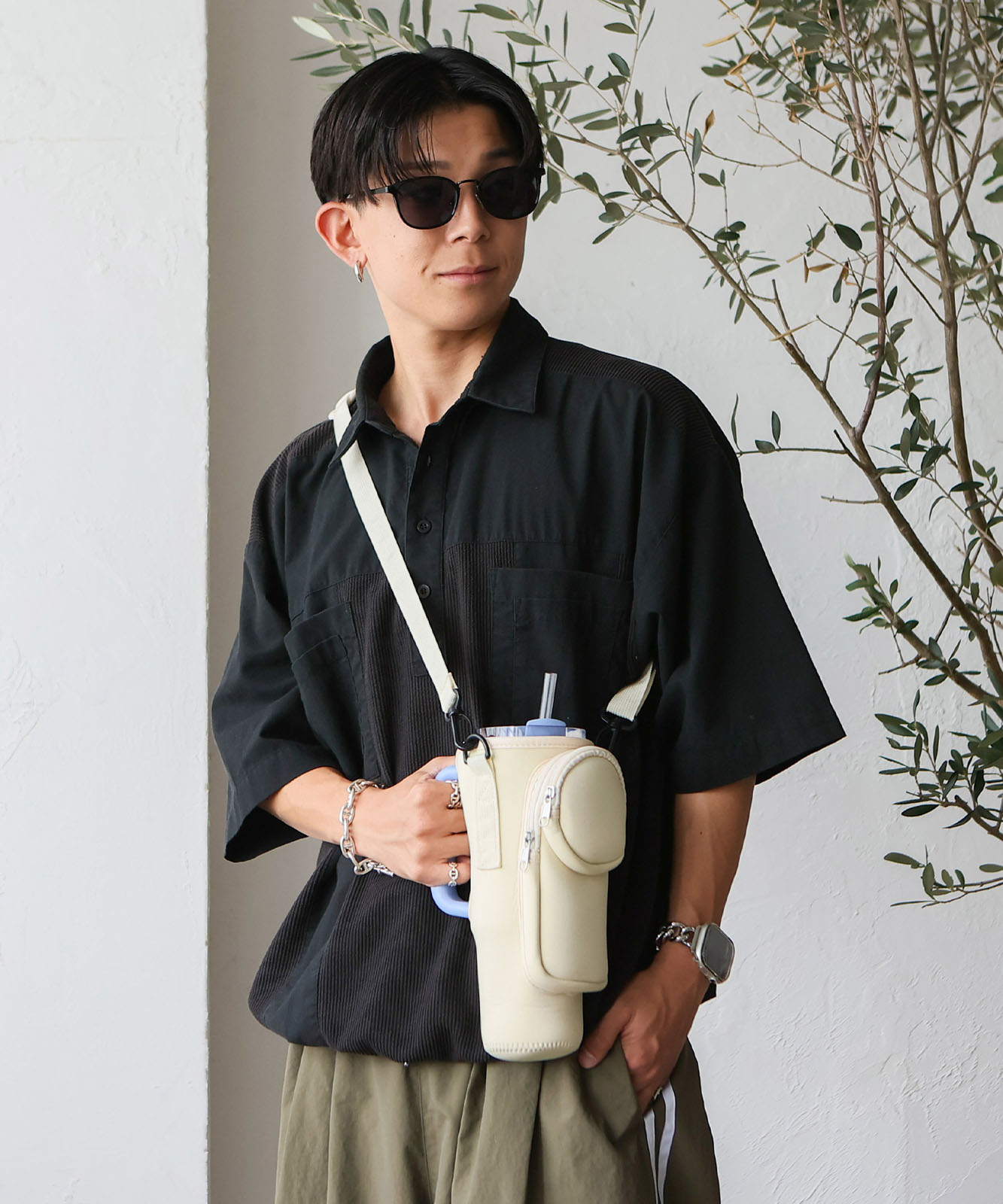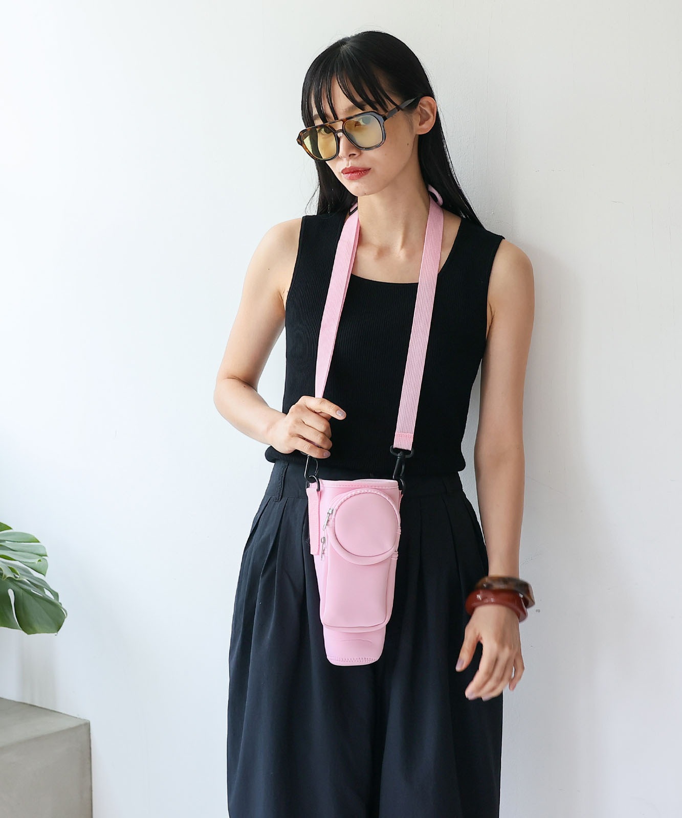 長さ調節可能で、肩掛け・斜め掛けスタイルに対応。取り外しも可能なので、散歩やフェス、旅行などアクティブなシーンにぴったり。