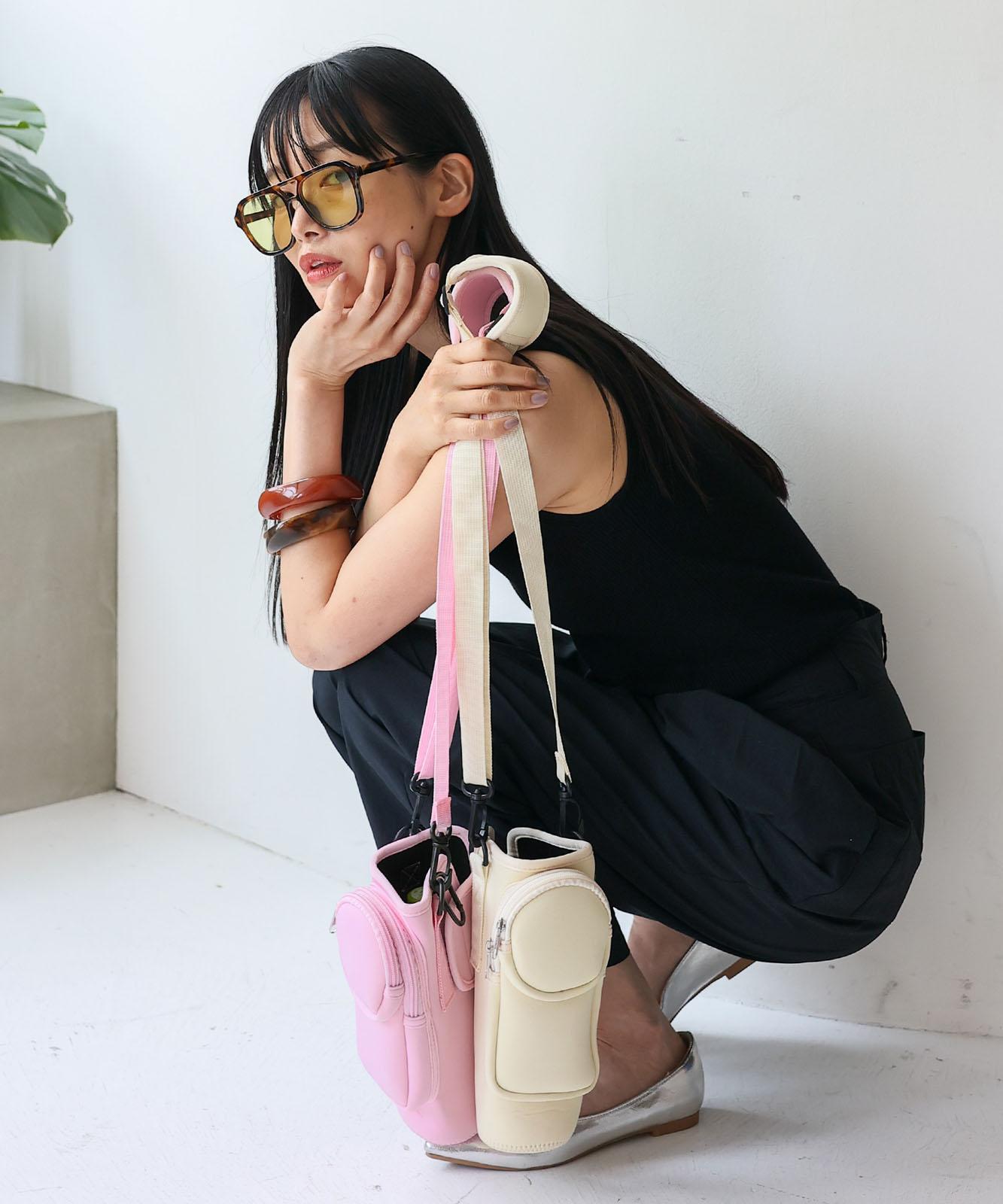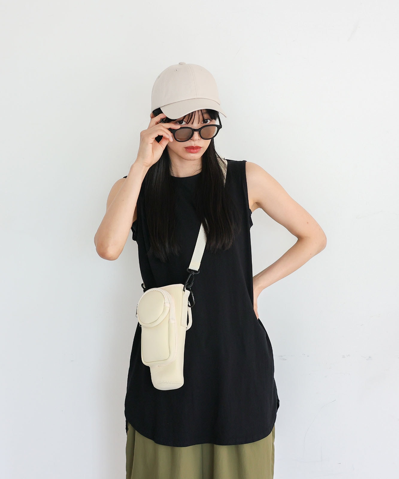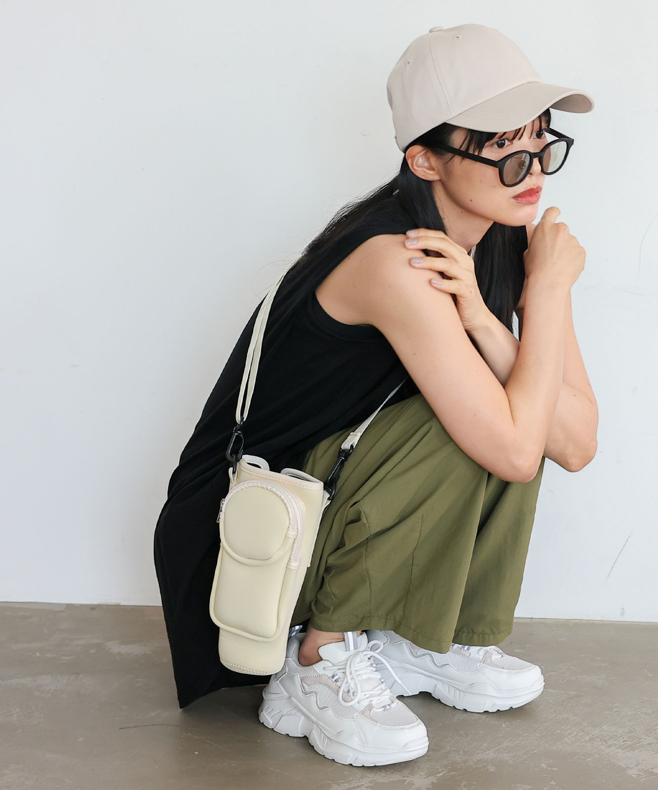 長さ調節可能で、肩掛け・斜め掛けスタイルに対応。取り外しも可能なので、散歩やフェス、旅行などアクティブなシーンにぴったり。