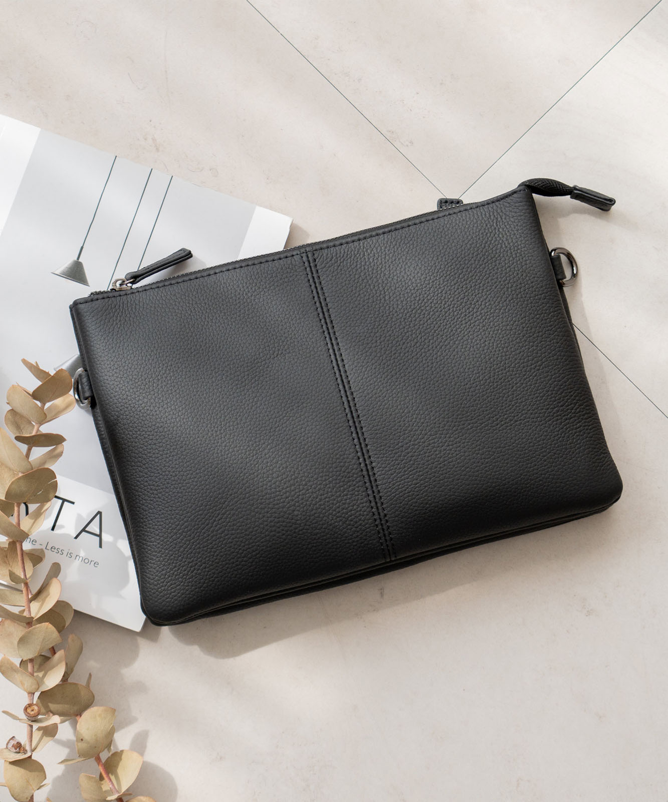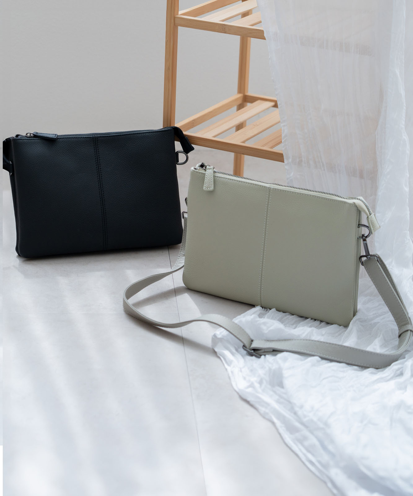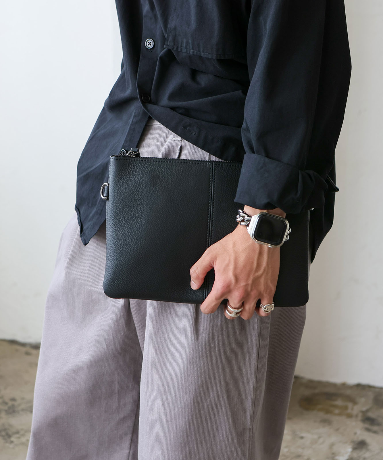 取り外し可能なショルダーベルト付きで、ショルダーバッグ・クラッチバッグの2通りで使用可能。スタイルやシーンに合わせて柔軟に対応できます。