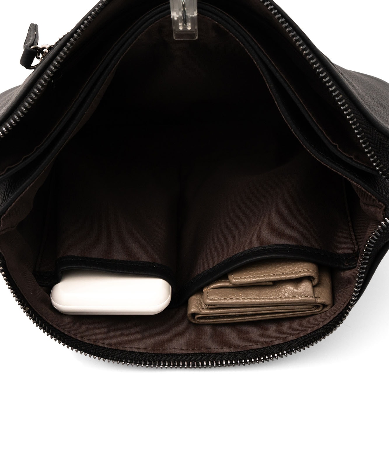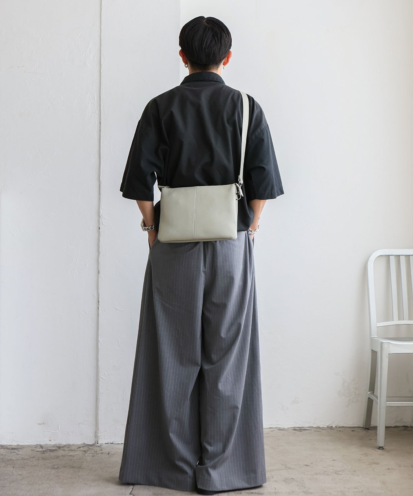 独立した2収納仕様に加え、中央の縫い合わせ部分にもポケットを配置。必要な物をすっきり整理でき、コンパクトながら機能性抜群です。