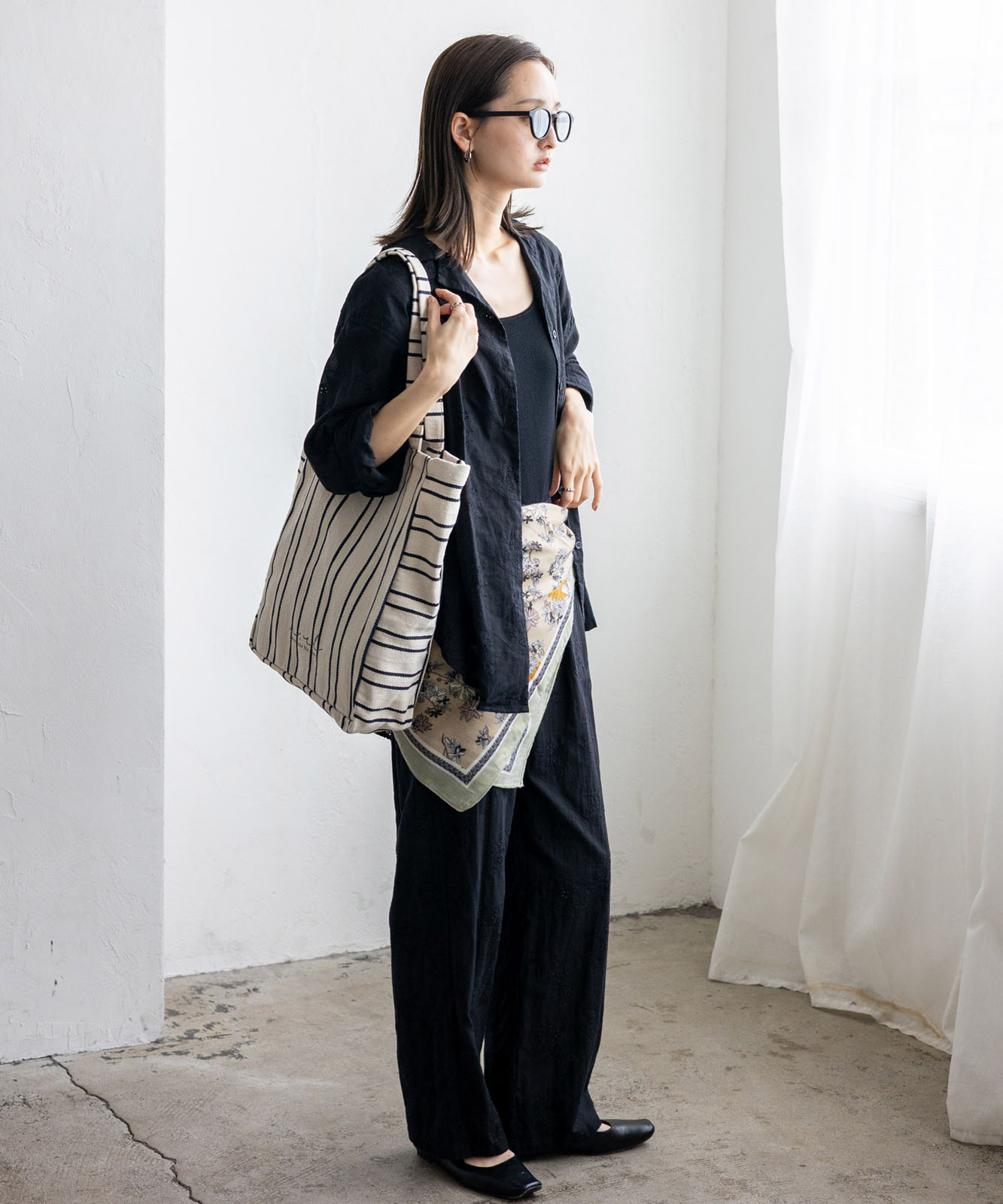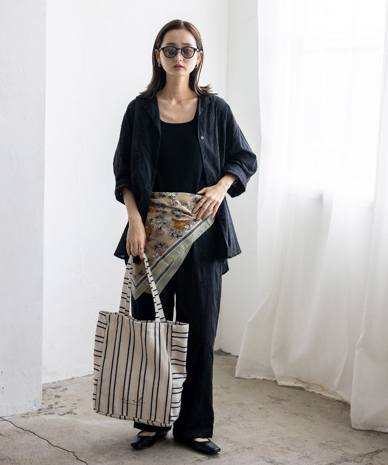 立体感のあるヘリンボーン織りとストライプ柄を掛け合わせ、シンプルながらも奥行きのある表情に。