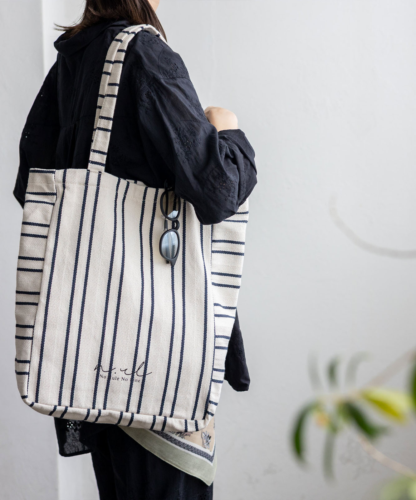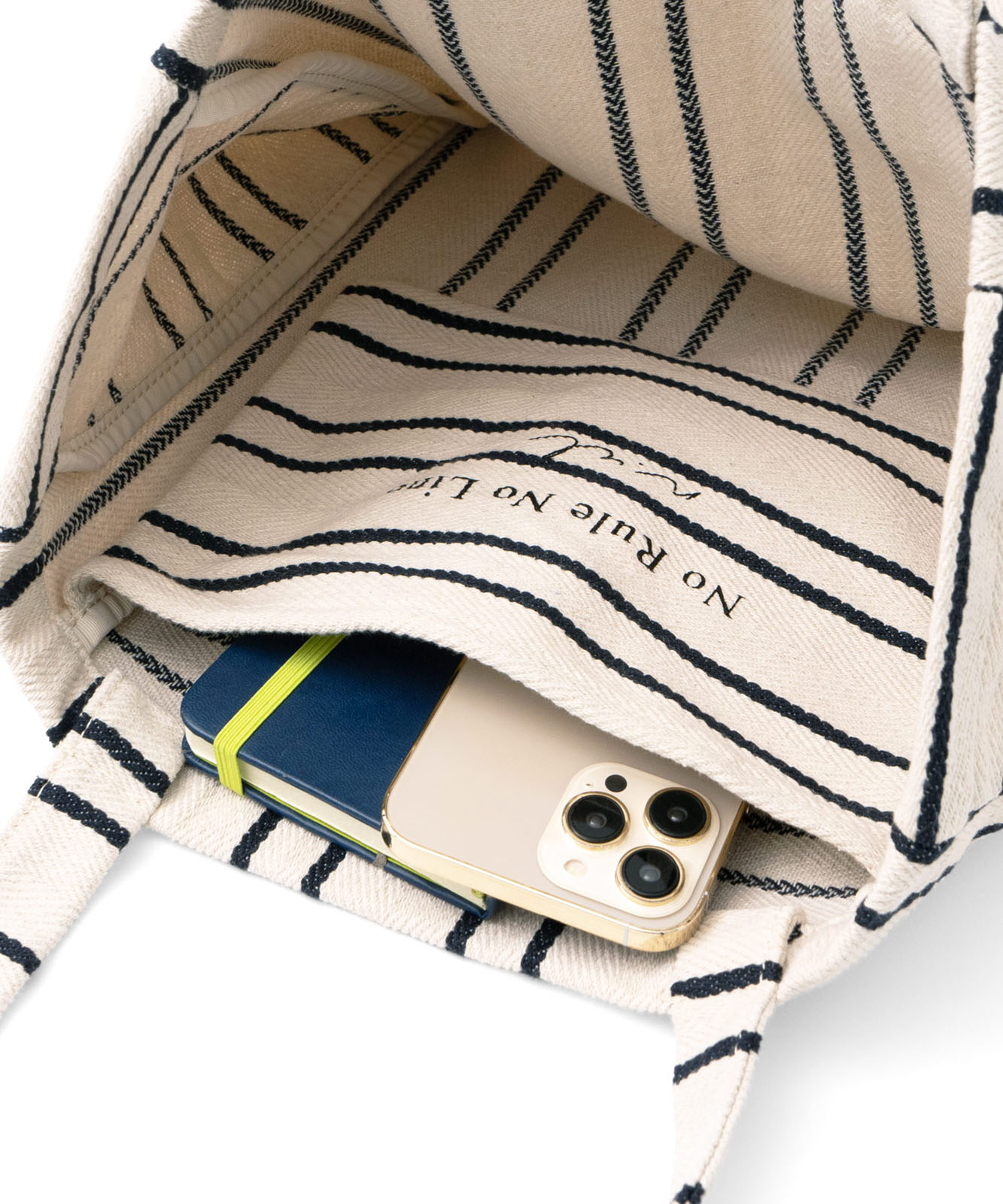 フロントの【No Rule No Line】ロゴがさりげなく存在感を放ち、洗練された印象を演出します。