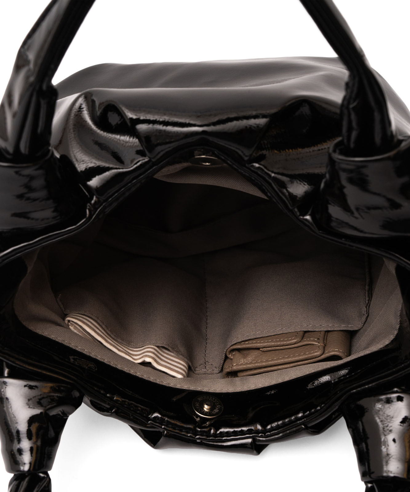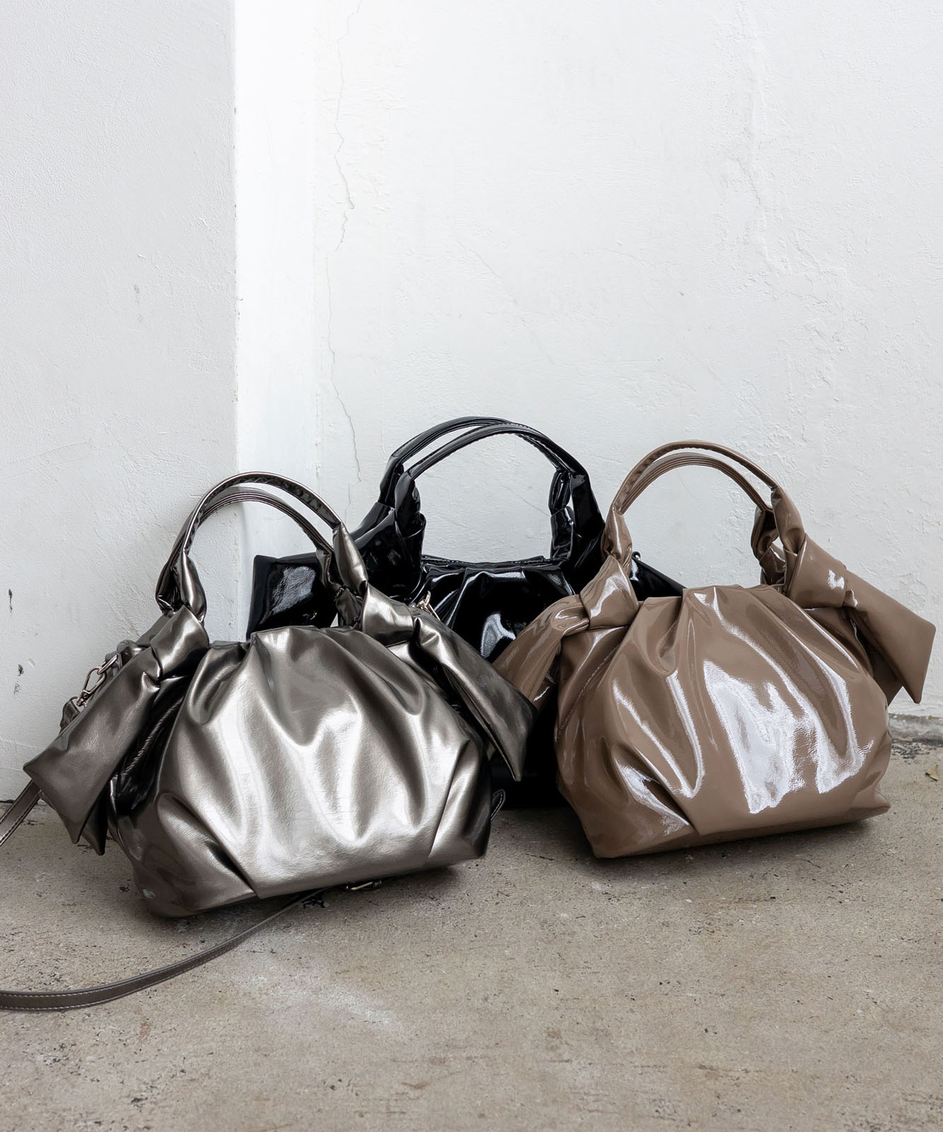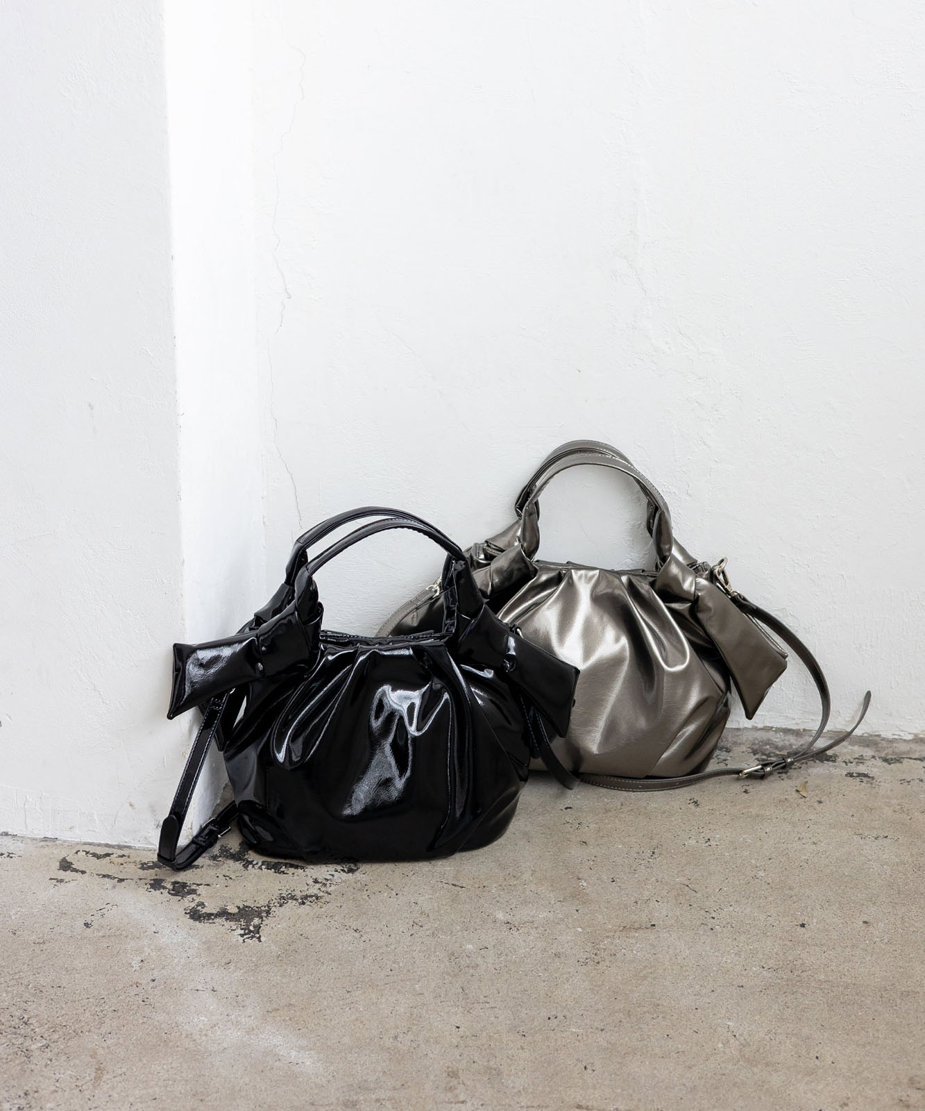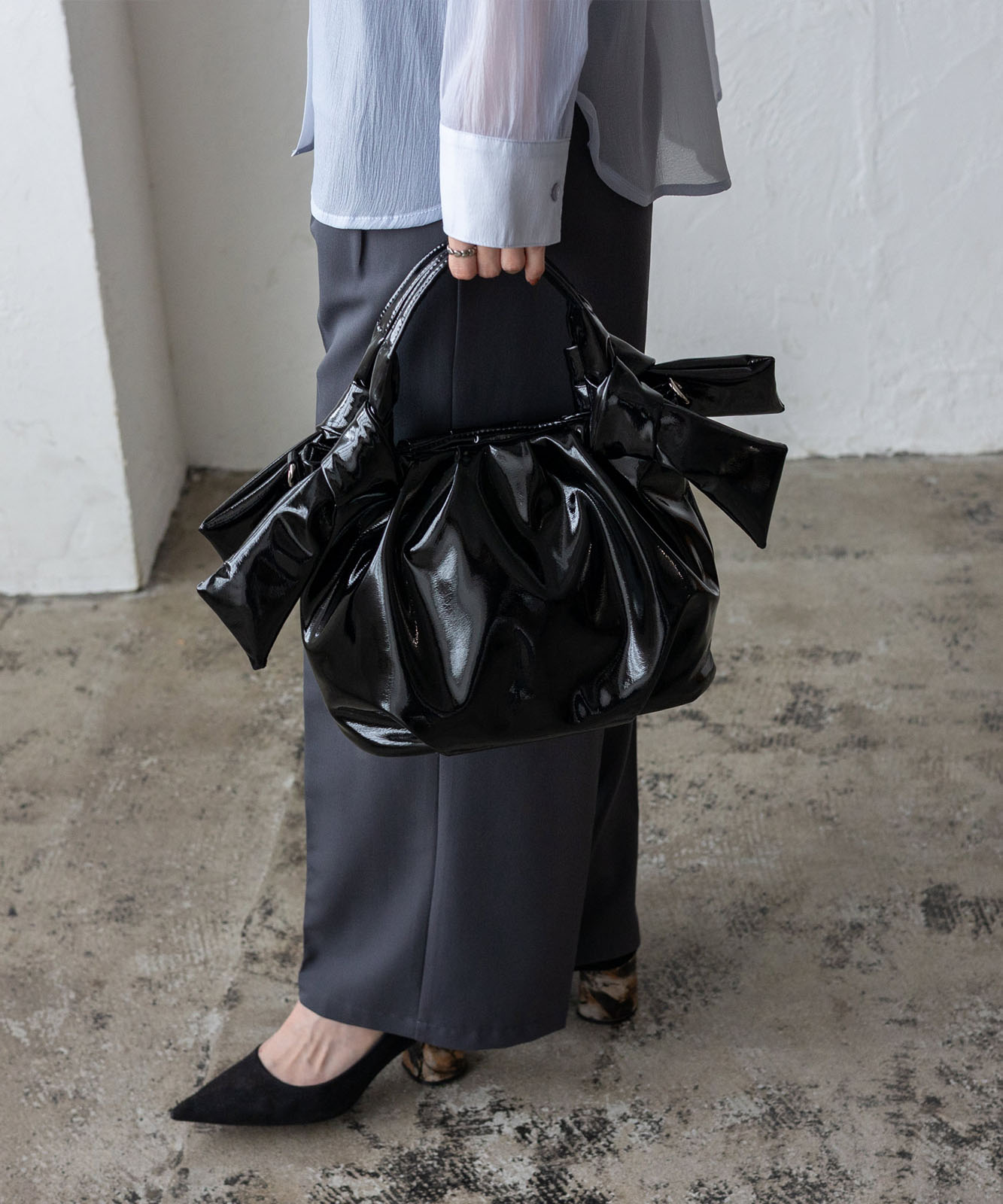 光沢のある柔らかなエナメル生地を使用。艶やかな質感ながら手触りが良く、
