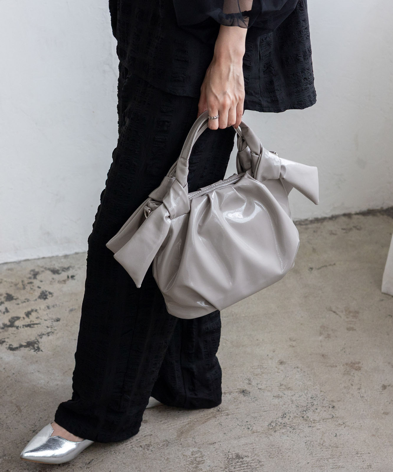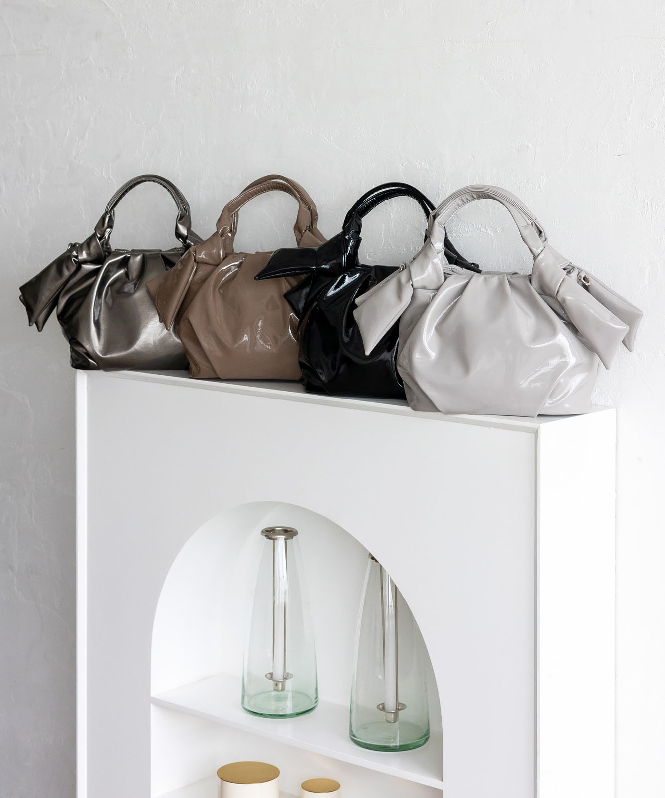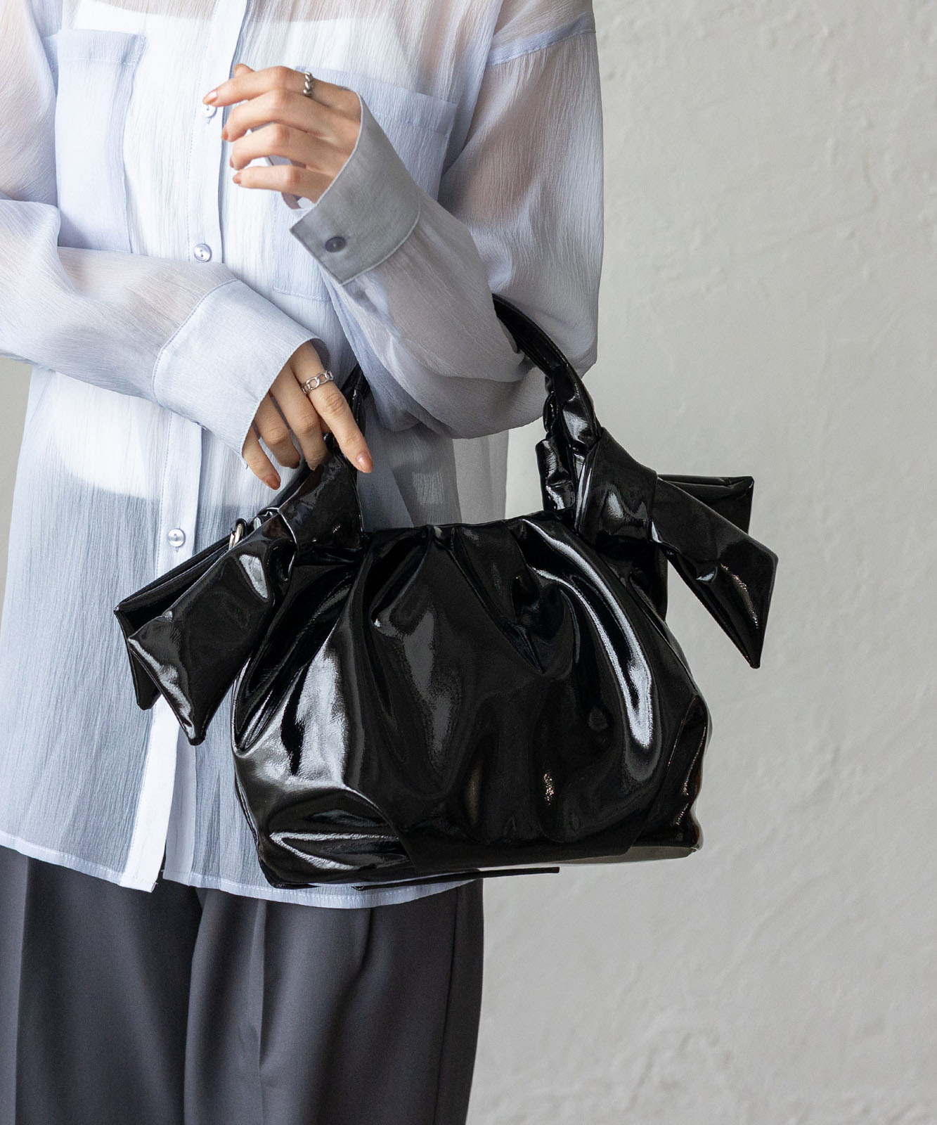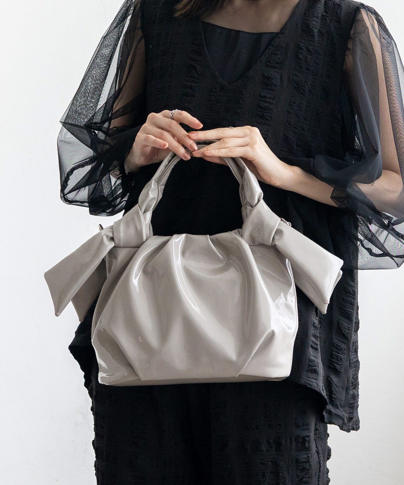 ハンドル先を結んでリボンのように見えるデザインがフェミニンなポイント。