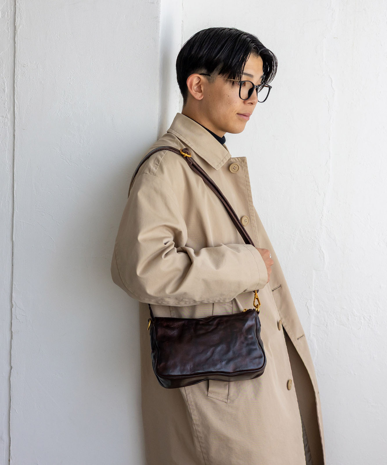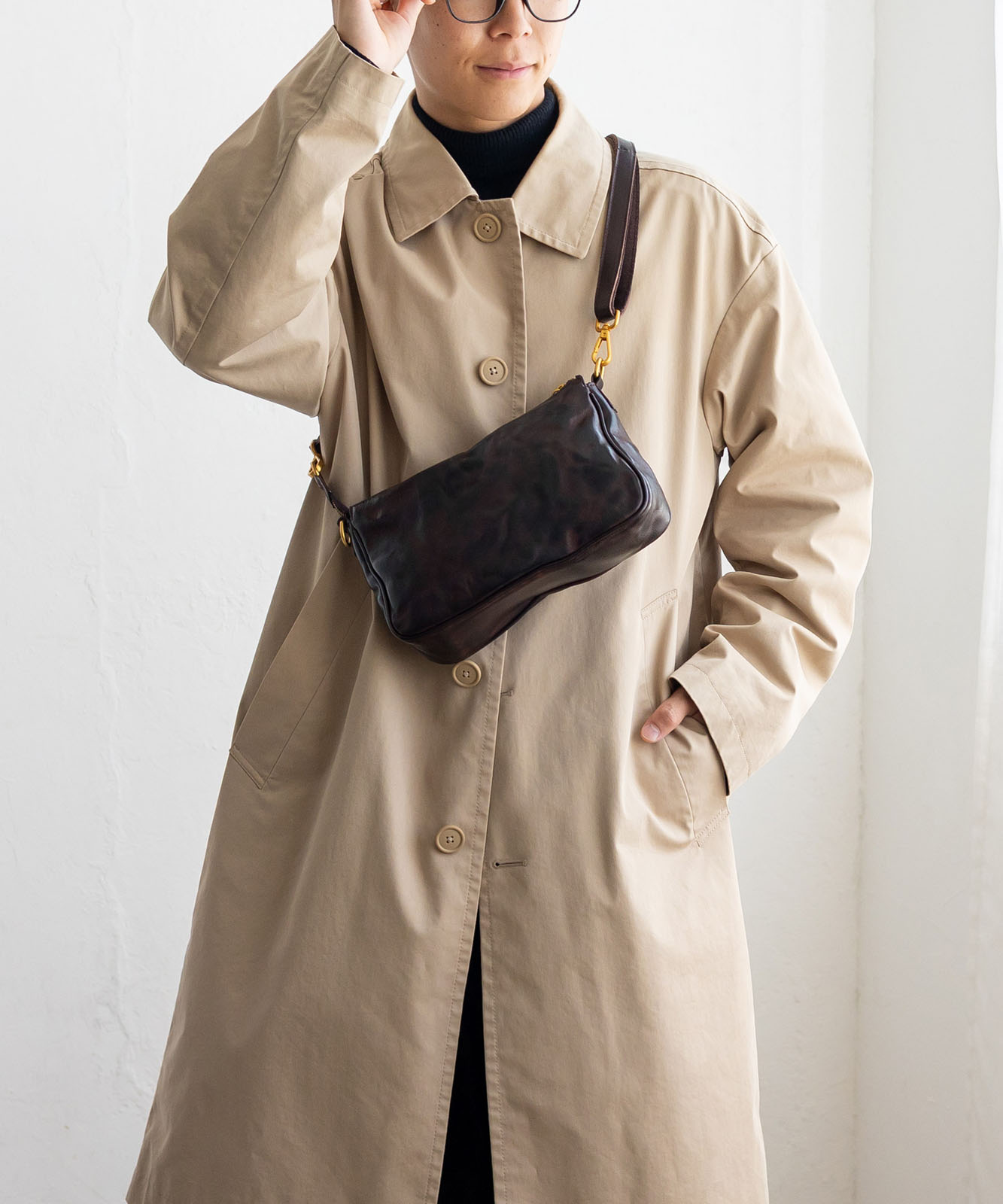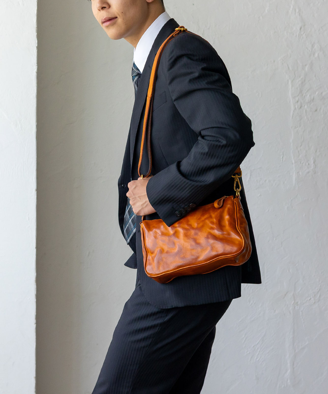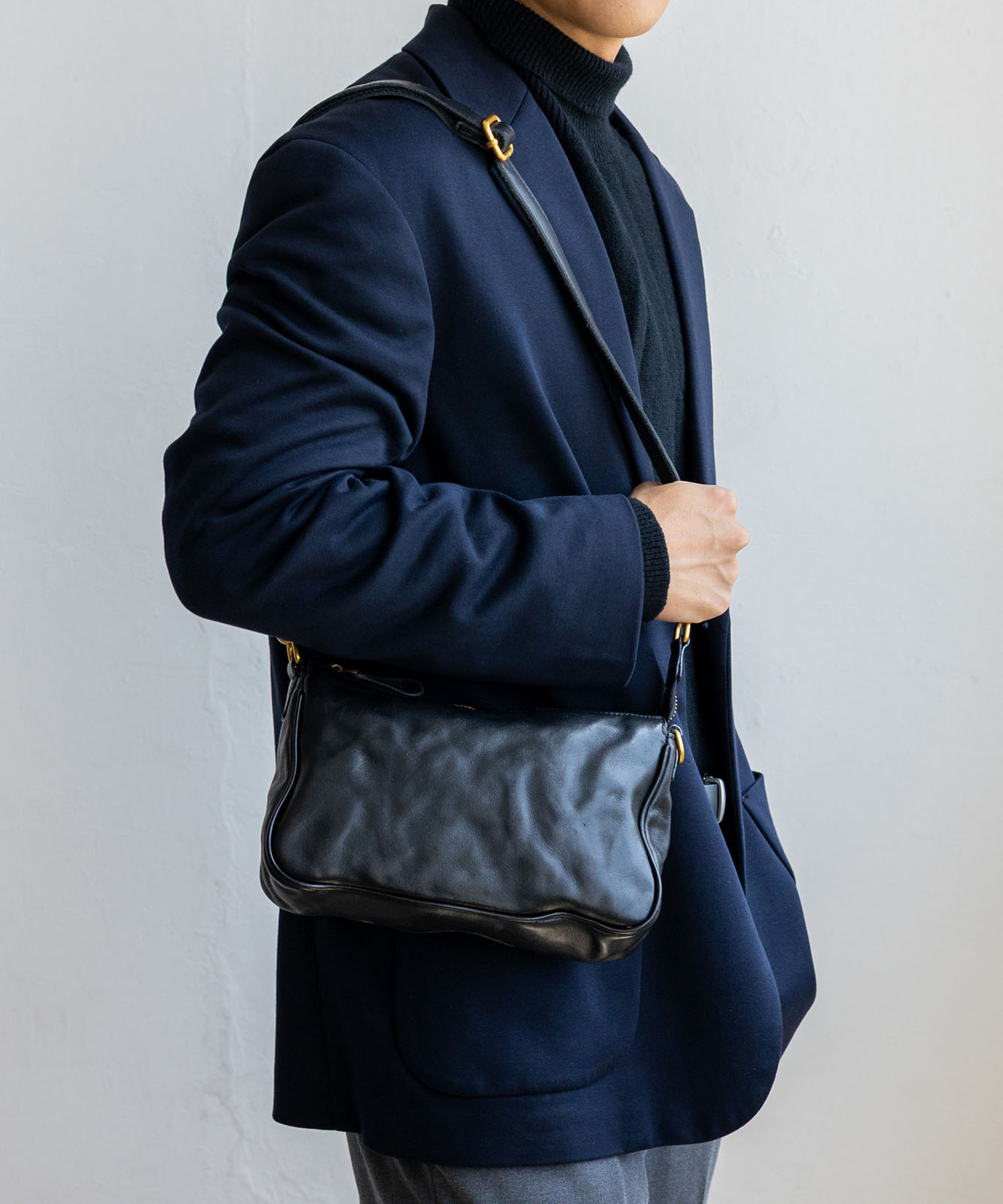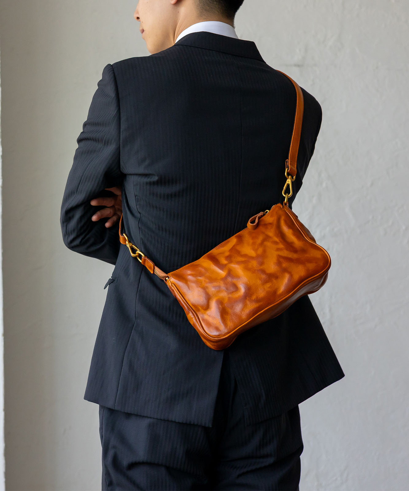 上質な本革を使用したコンパクトバッグ。