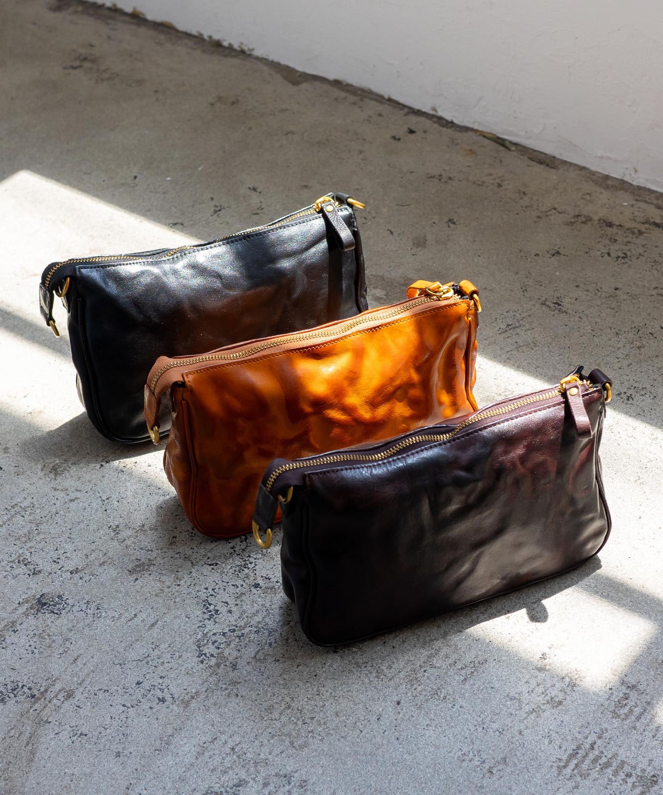 ●本革×シワ加工の個性ある風合い